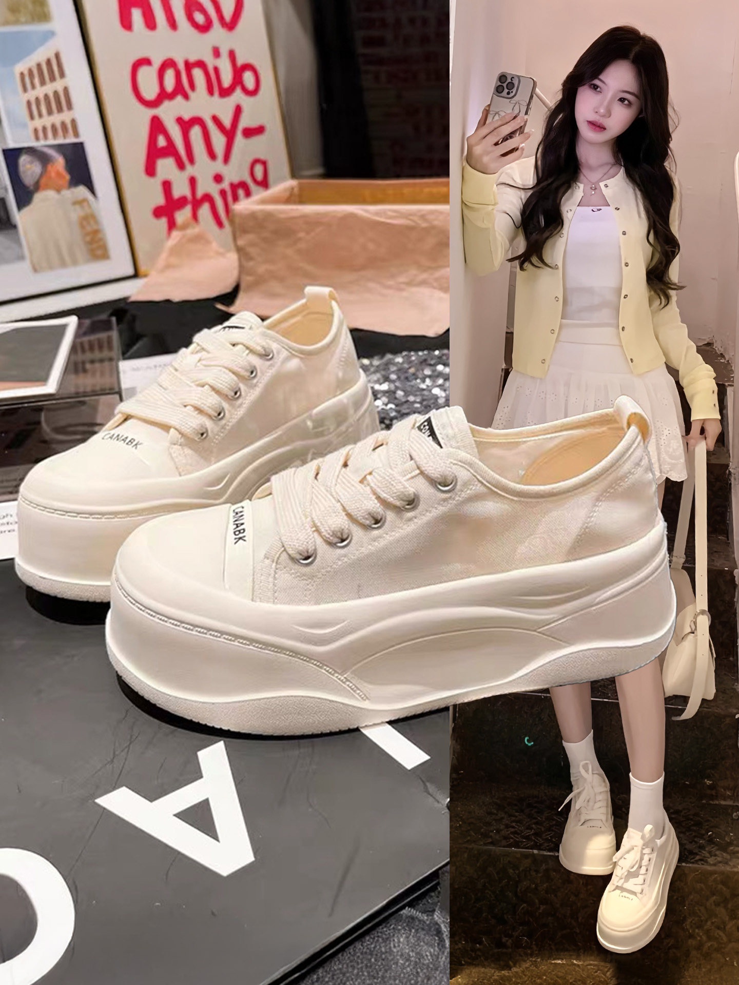 Hong Kong Mesh Breathable Platform Casual Sneakers for Women 2025 Summer New Versatile Small Size Thick-Soled Height-Increasing White Shoes