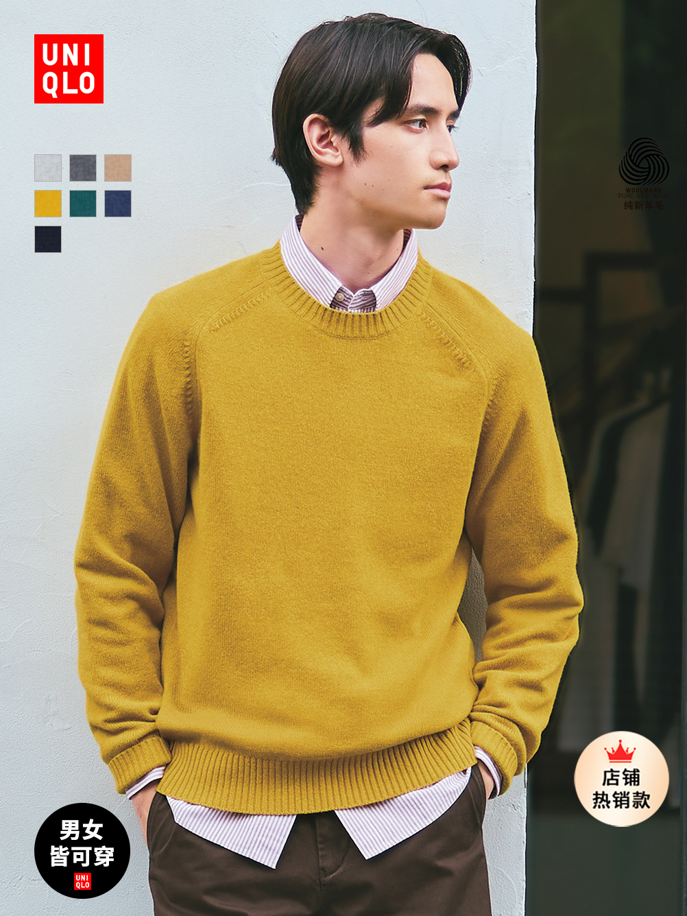 Uniqlo Men's and Women's Soft Sheep Wool Crew Neck Knitwear/Long-Sleeved Sweater 25 New Styles 478541