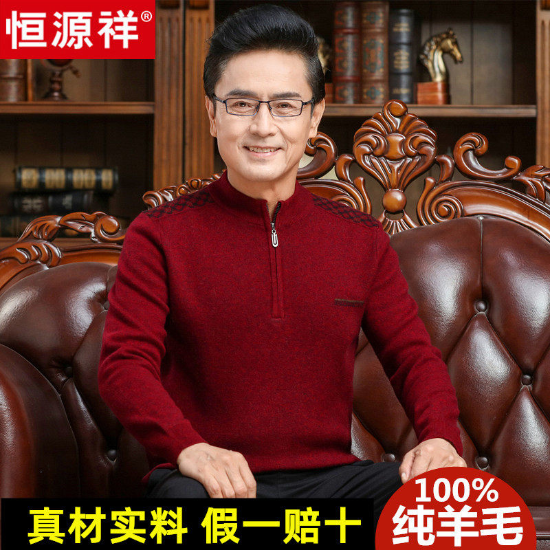 Hengyuanxiang Wool Sweater for Men, Middle-Aged and Elderly, 26Th Year of the Horse, Red Zodiac Year Clothing, Thickened and Warm Sweater, Dad's Outfit