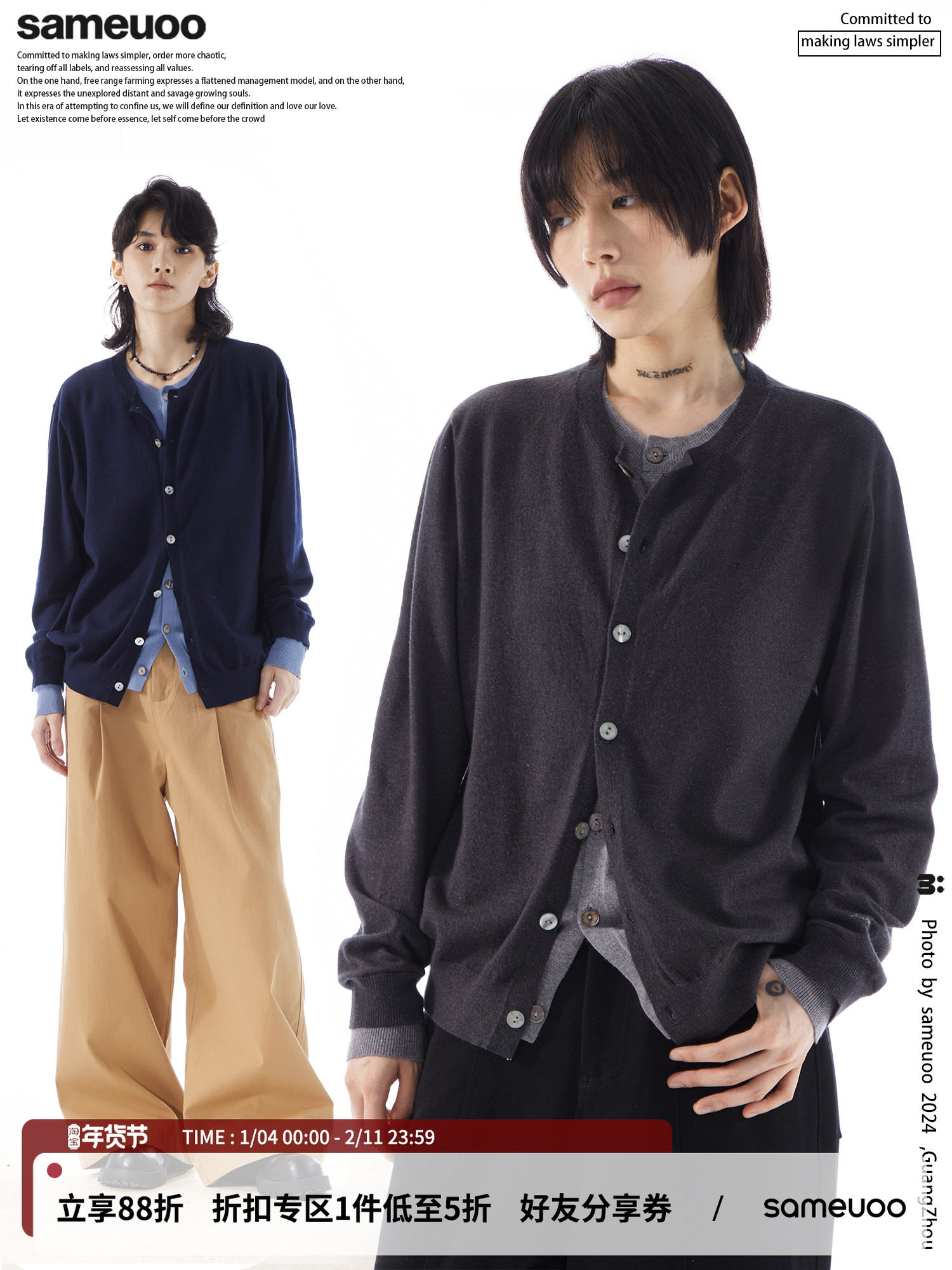 Sameuoo Free-Spirited Culture Fake Two-Piece Gray Sweater Cardigan for Women, Unisex Knitwear Jacket for Autumn and Winter
