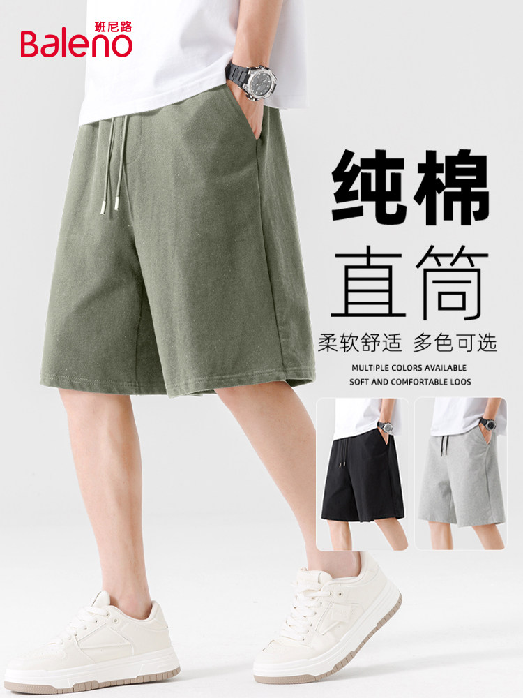 Baleno Summer Men's Pure Cotton Shorts, Japanese Style Elastic Waist Home Casual Pants, Men's Sports Five-Point Shorts a