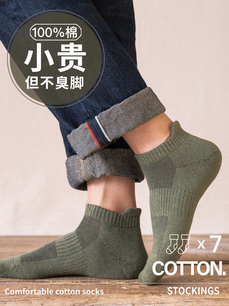 Pure Cotton Short Socks for Men, Autumn and Winter Style, Sports, Thickened, Fleece-Lined, Sweat-Absorbent, Odor-Resistant, 7A Antibacterial, Full Cotton Towel Bottom, Short Tube