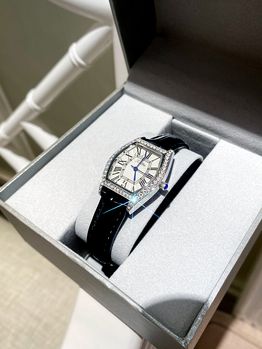 Watch Women's Niche Accessible Luxury Retro Barrel-Shaped Women's Watch High-End Diamond-Encrusted Waterproof Watch Genuine 2024 New Style
