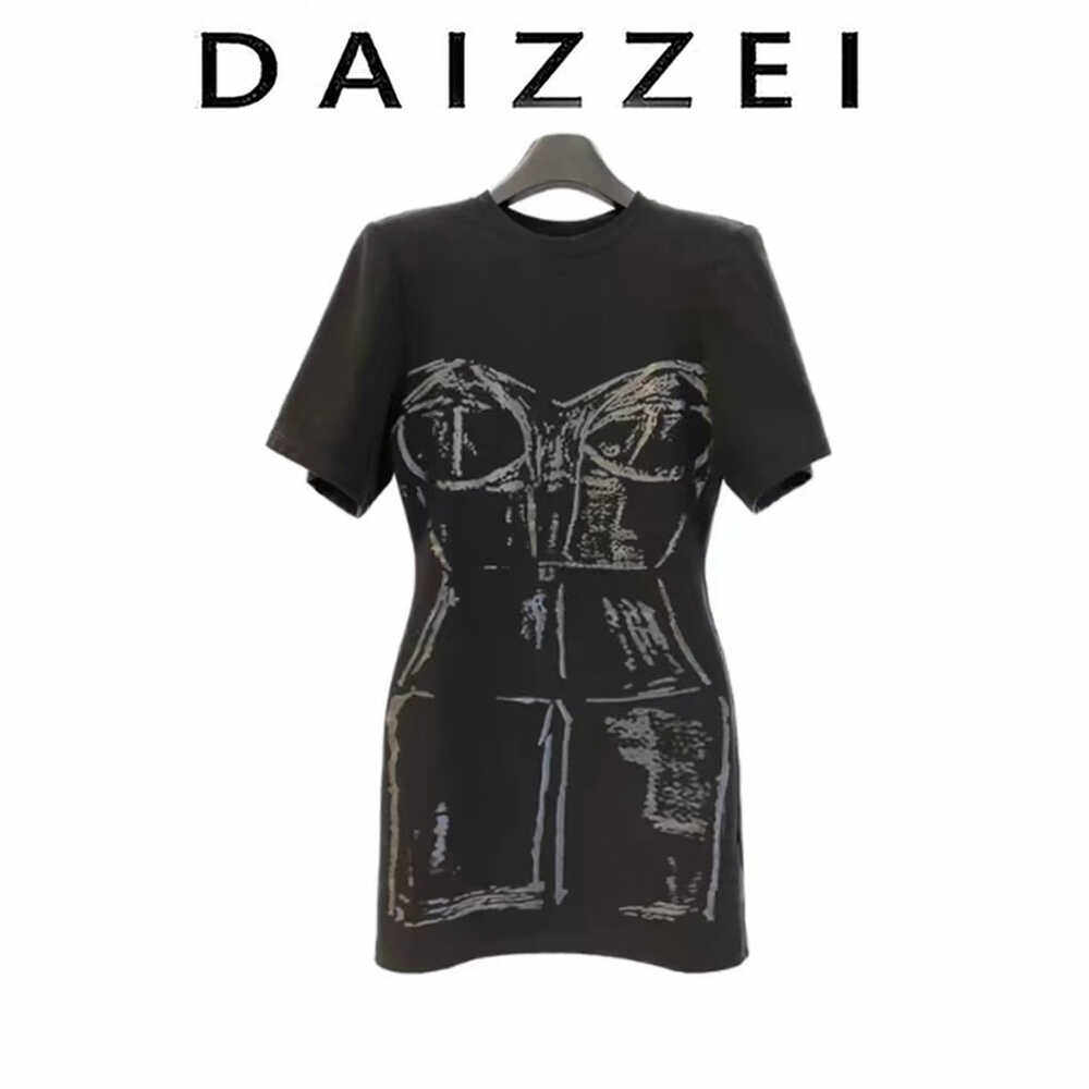 Daizzei~French-Style Design Printed Slim-Fit Flattering Short-Sleeve Dress, New Summer Waist-Cinching Little Black Dress