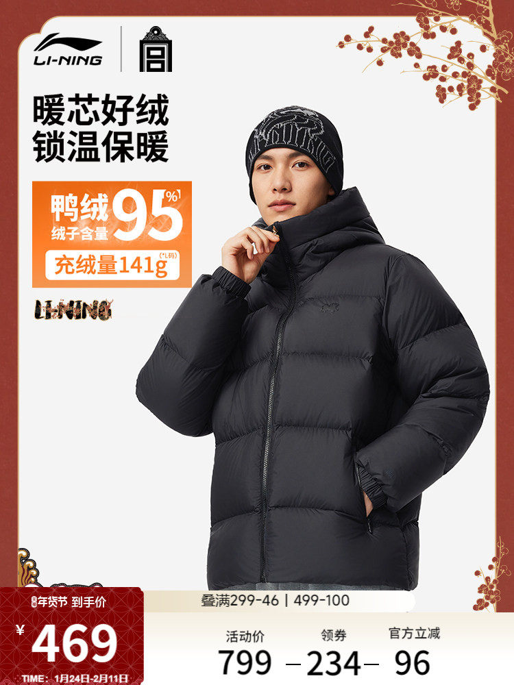 Li-Ning Chinese Culture Series Forbidden City Collaboration Short down Jacket Men's Official New Winter Duck down Sportswear