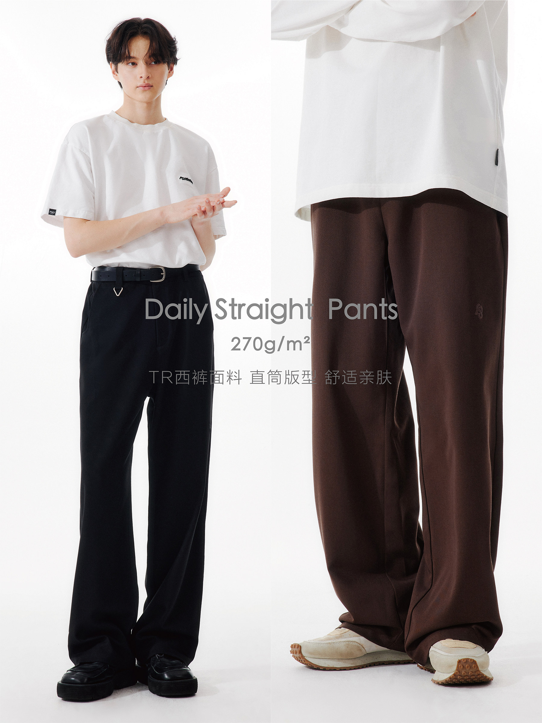 Pso Brand Men's and Women's Loose Straight-Leg Pants, Spring and Autumn Drapey Wide-Leg Pants, Casual Couple American-Style Dress Pants