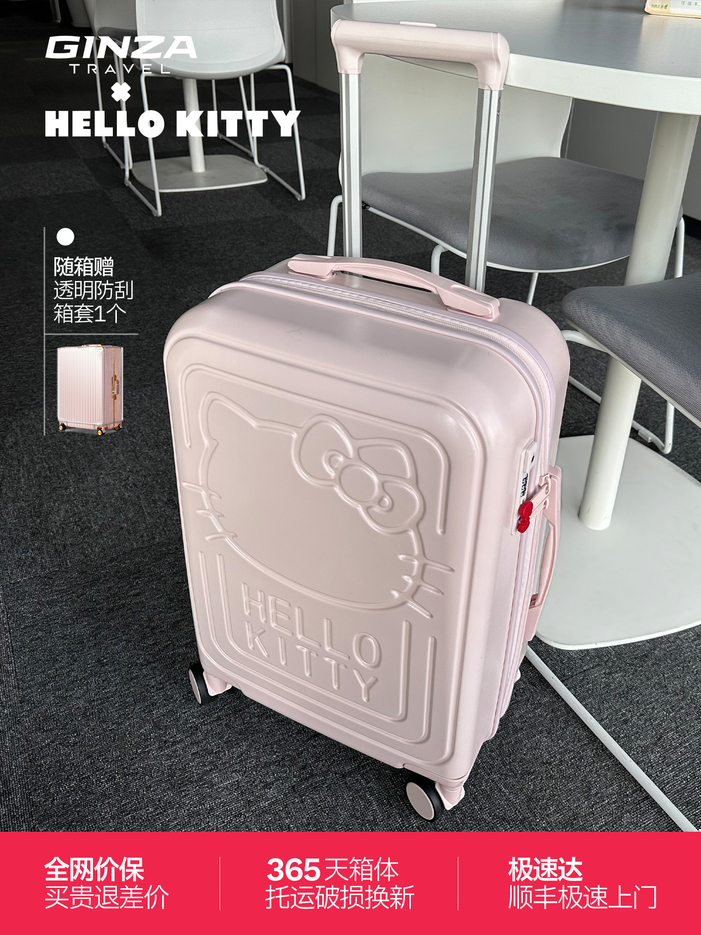 Ginza X Hello Kitty Official Collaboration Suitcase for Female Students, Cute Pink Trolley Case, Kt Cat Suitcase