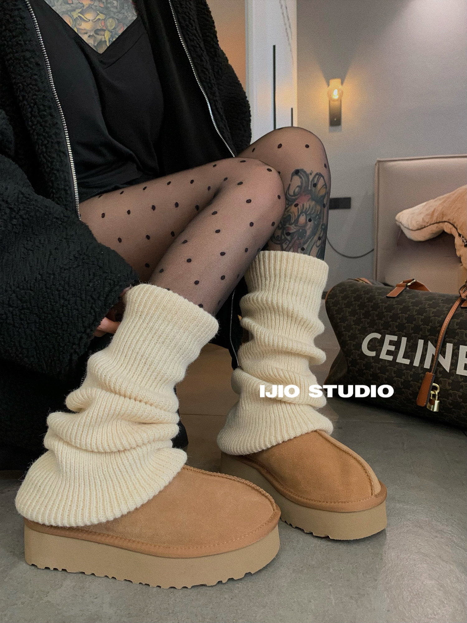 Ijio Micro-Flared Knitted Stacked Socks Retro Simple Snow Boot Leg Warmers Layered Calf Socks Thickened for Warmth