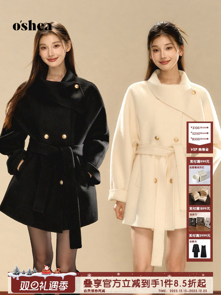 Oshea Korean Women's Coat Multi-Color Wool Cashmere Woolen Coat Women's 2025 New Winter Gold Buckle Double-Sided Woolen Coat