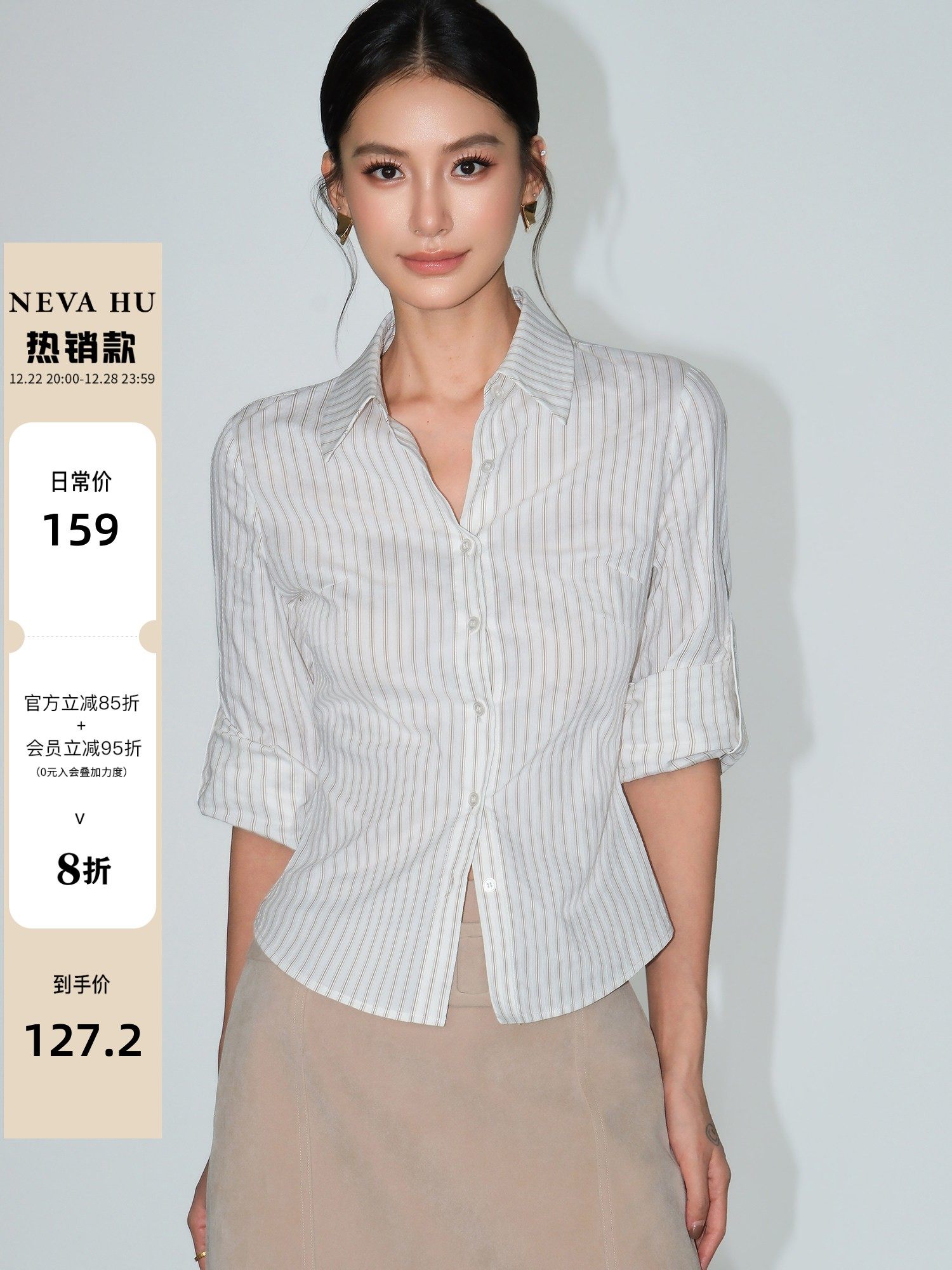Neva Hu Office Siren Commuting Striped Shirt for Women, High-End, Elegant, Slim-Fitting Shirt