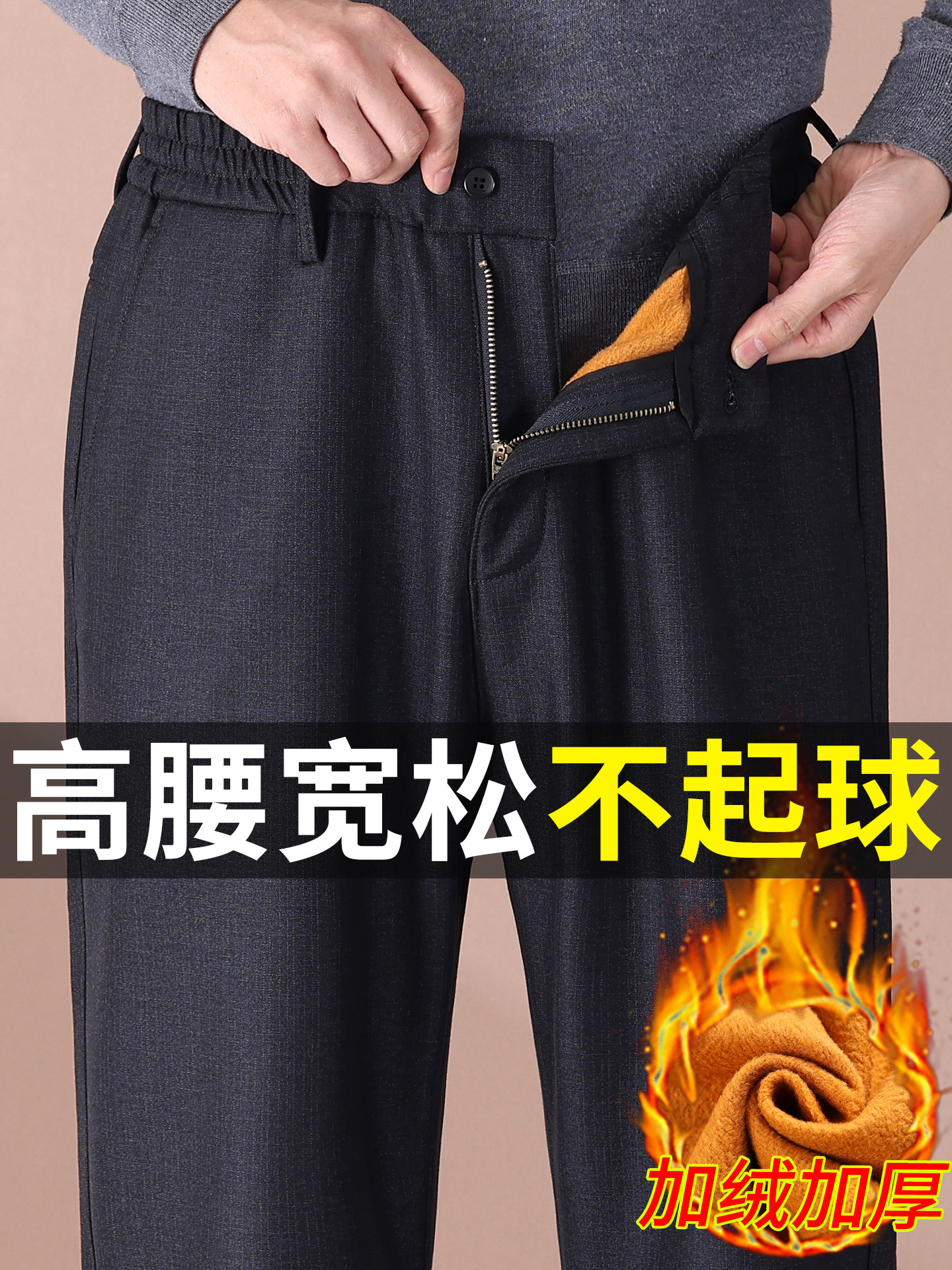 Dad's Pants for Men, Winter High-Waisted Deep-Crotch Casual Pants for Middle-Aged Men, Fleece-Lined and Thickened, Loose-Fitting Pants for Middle-Aged and Elderly Men