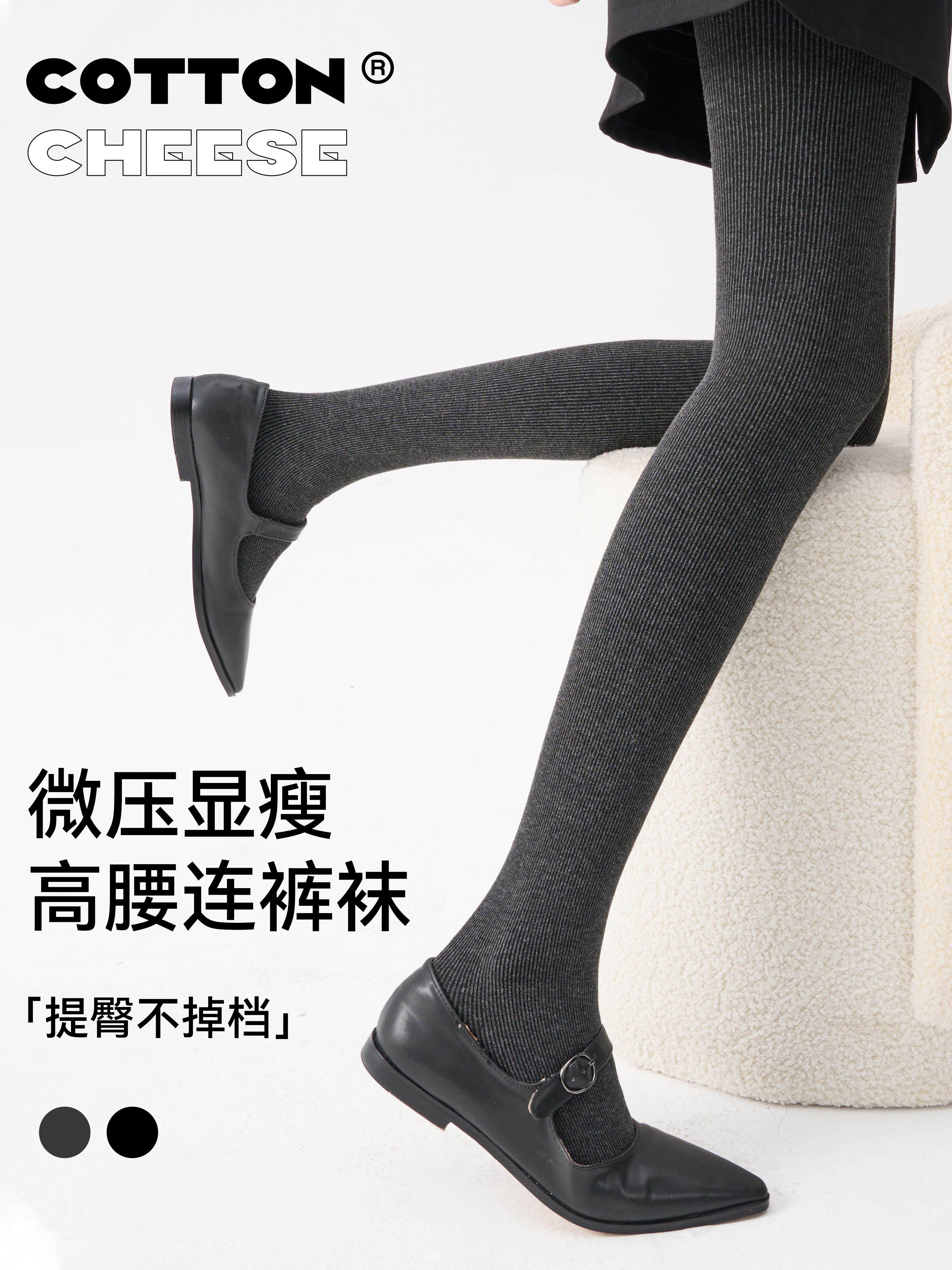 Smoke Gray Pantyhose for Women, Spring and Autumn, Solid Color, Slimming, Vertical Stripe Leggings, Autumn and Winter Thickened Footed Stockings