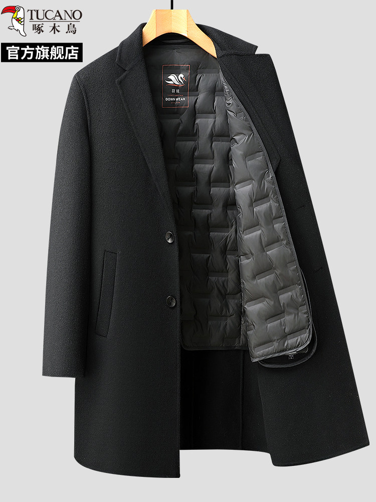 Woodpecker Double-Sided Woolen Coat for Men, Mid-Length, New Winter Trench Coat with Thickened down Lining and Woolen Outerwear