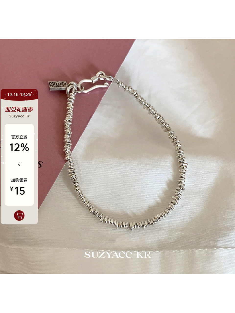 Suzyacc Vintage Handmade Silver Bracelet Coiled Bracelet Light Luxury Niche Exquisite Versatile High-End Jewelry for Women