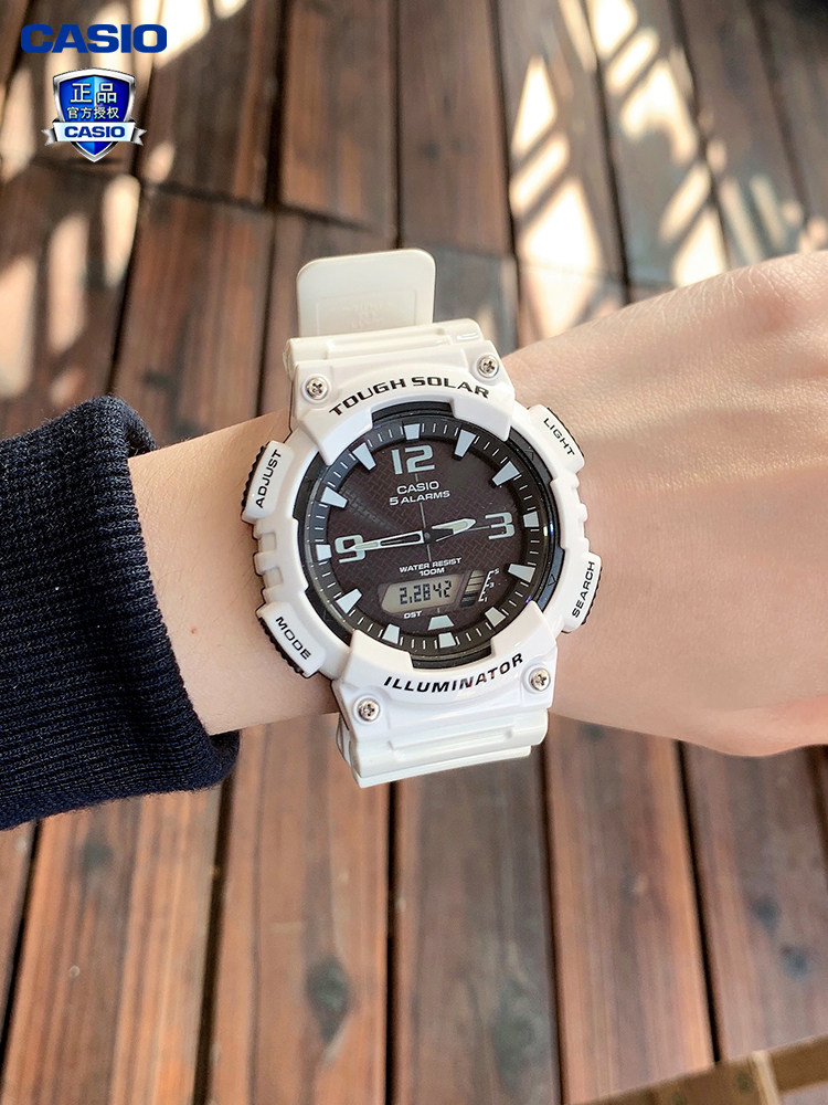Casio Watch for Men and Women, Couples, Students, White, Waterproof, Luminous, Dual Display, Solar Energy, Quartz Aq-S810