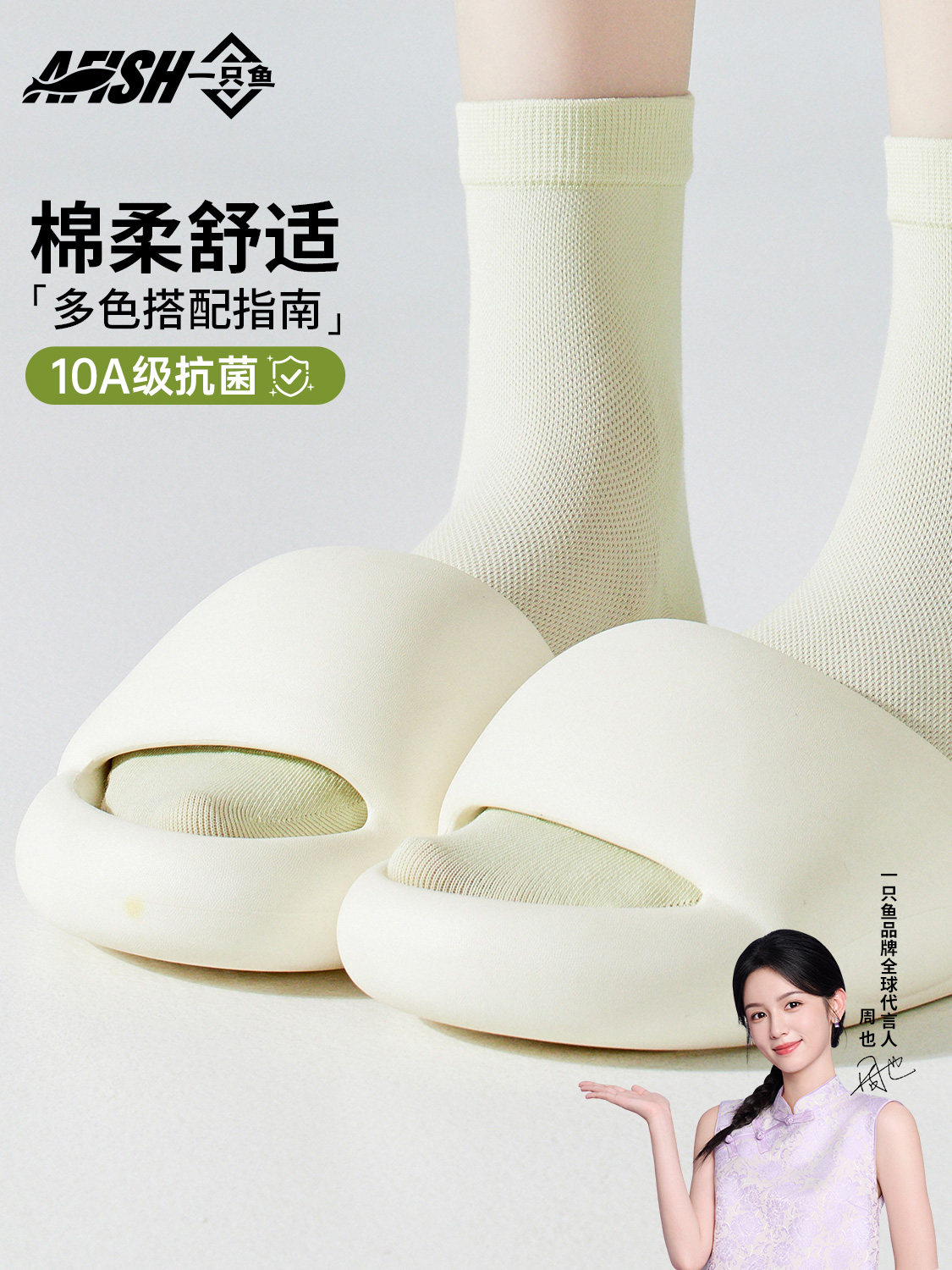 【7A Antibacterial】A Pair of Fish Socks for Women, Spring and Autumn Antibacterial Socks, Anti-Foot Odor, Breathable, Sweat-Absorbent Cotton Mid-Tube Socks