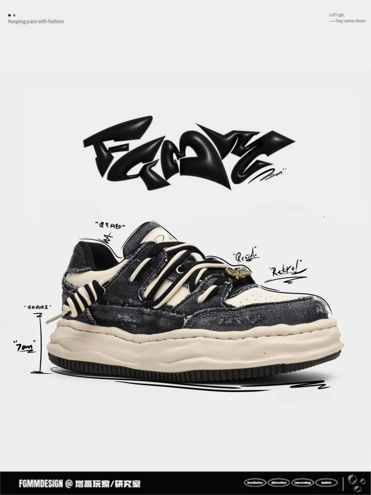 Ueno American-Style Black and White Thick-Soled Sneakers for Women, Breathable Large-Toe Canvas Shoes, Height-Increasing Casual Shoes for Men, Versatile Sports Shoes
