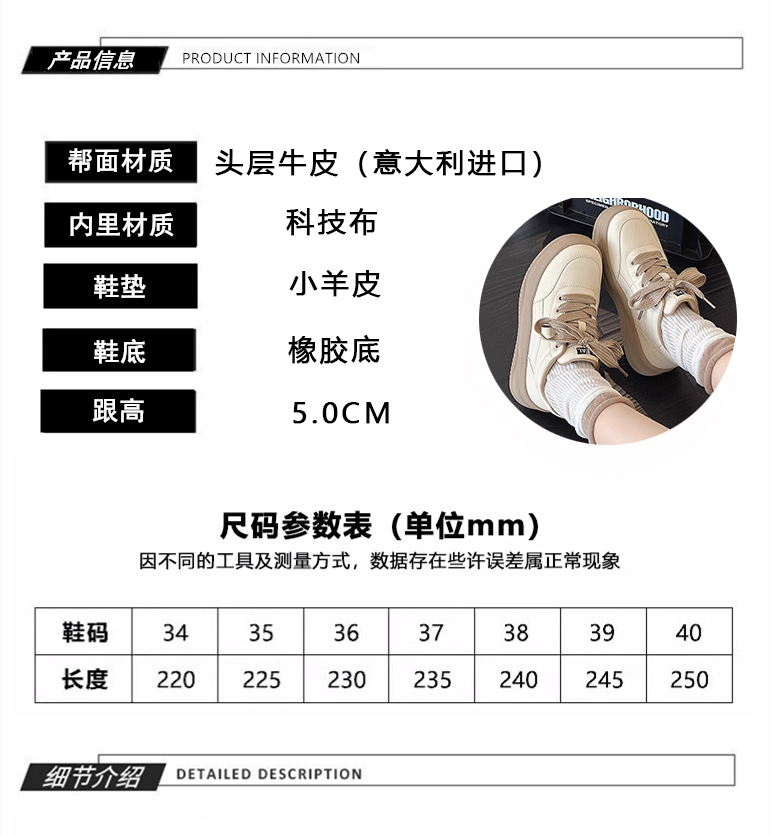 Sanli Genuine Leather High Top White Shoes Women's 2025 New arrival Fashion Versatile Thick-Soled Sneakers Casual Fleece-lined Sports Shoes Trbottom