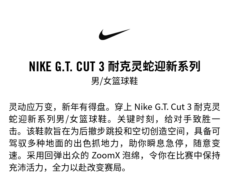 Nike Official Spirit Snake Welcome Series G.T Cut 3 Men's and Women's Basketball Shoes Li Hongquan's Same Style Hv5977