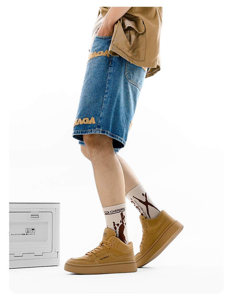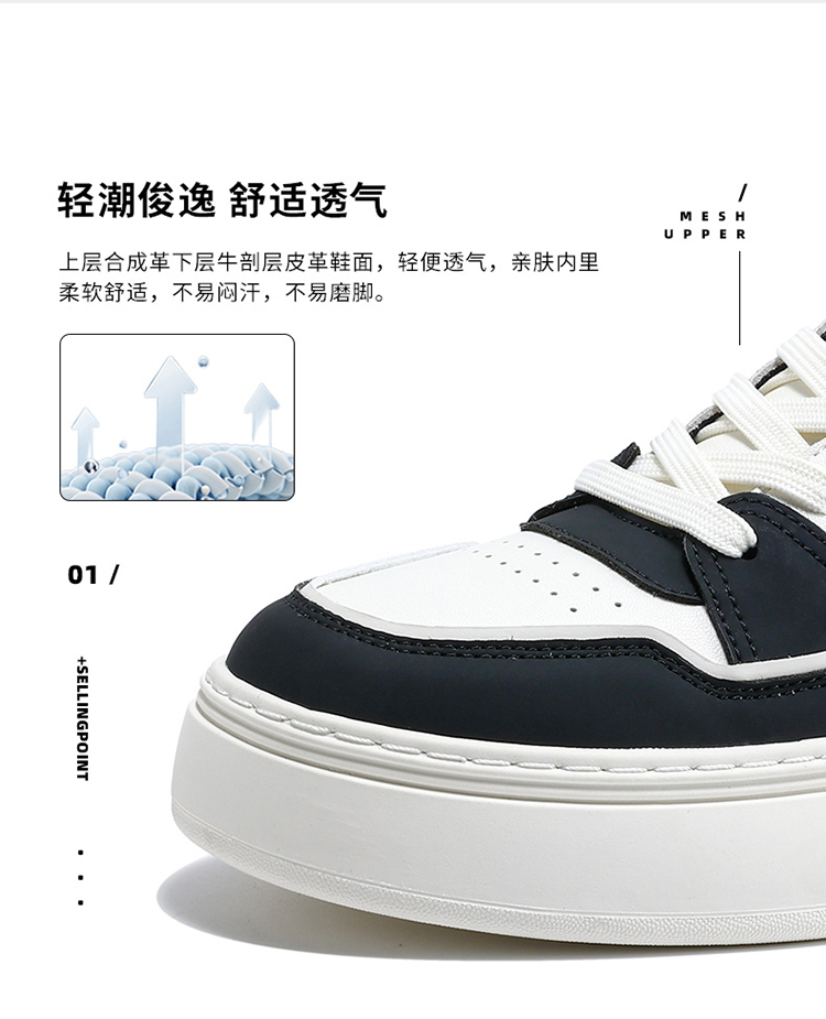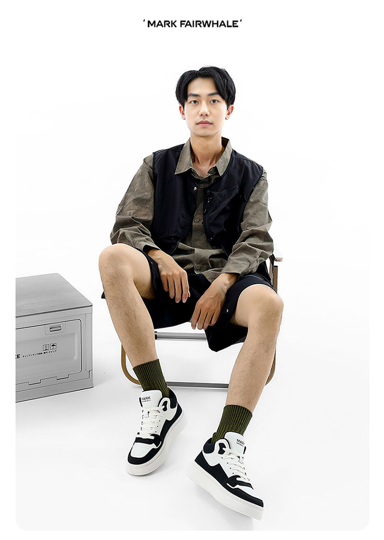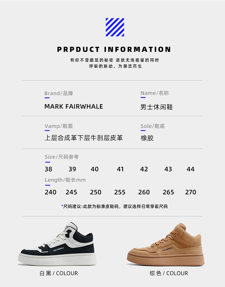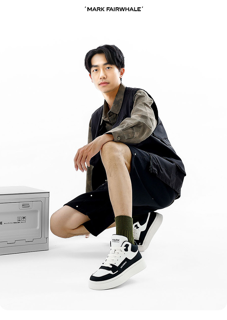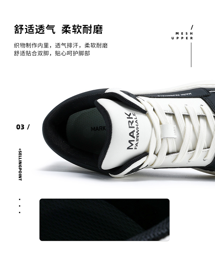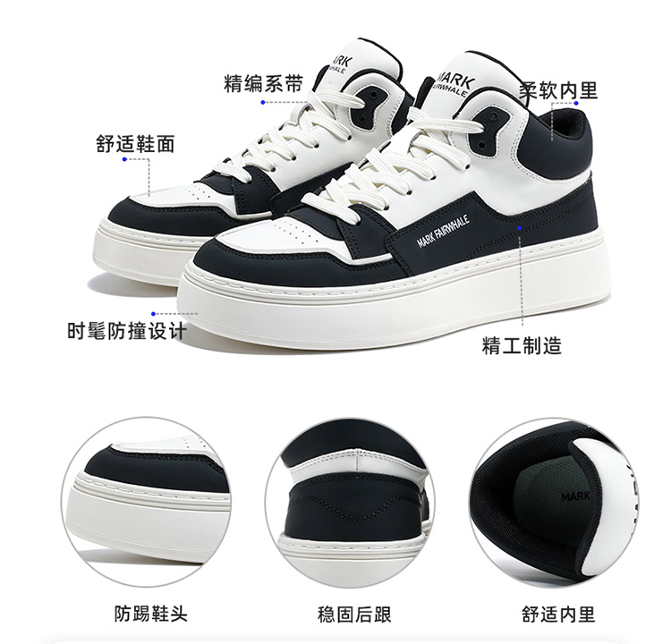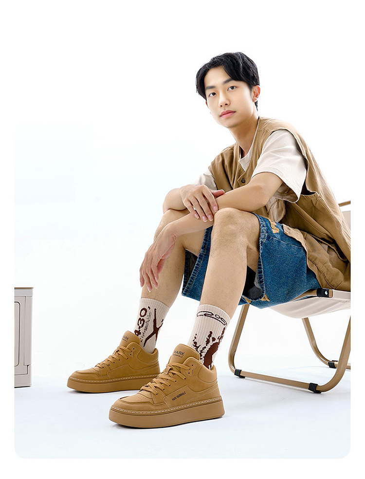 Mark Huafei High-Top Men's Casual Height-Increasing Sneakers 2025 Spring New Genuine Leather Trendy Shoes with Fleece Lining for Warmth