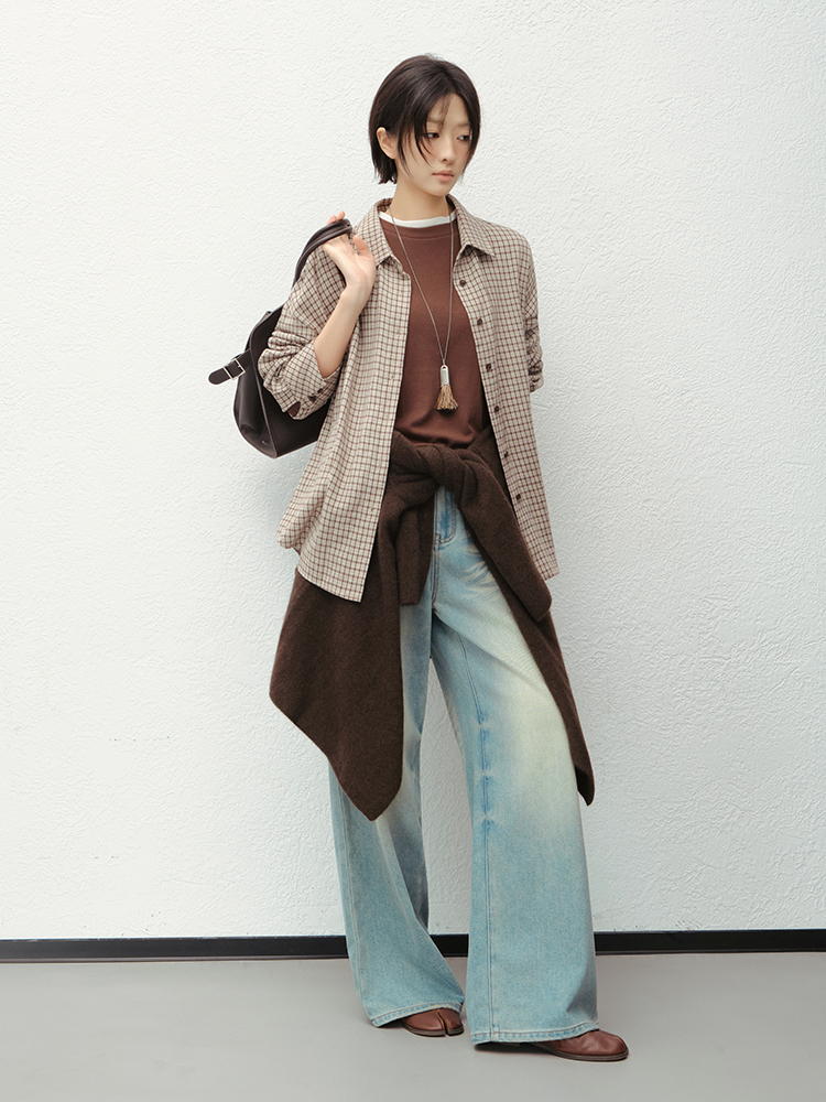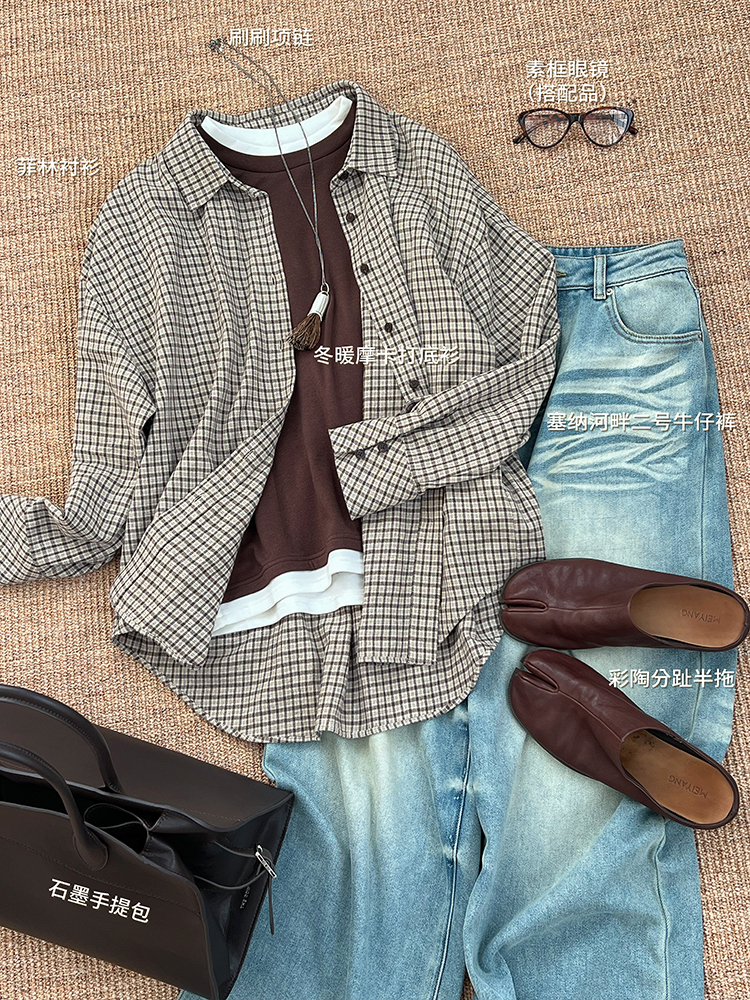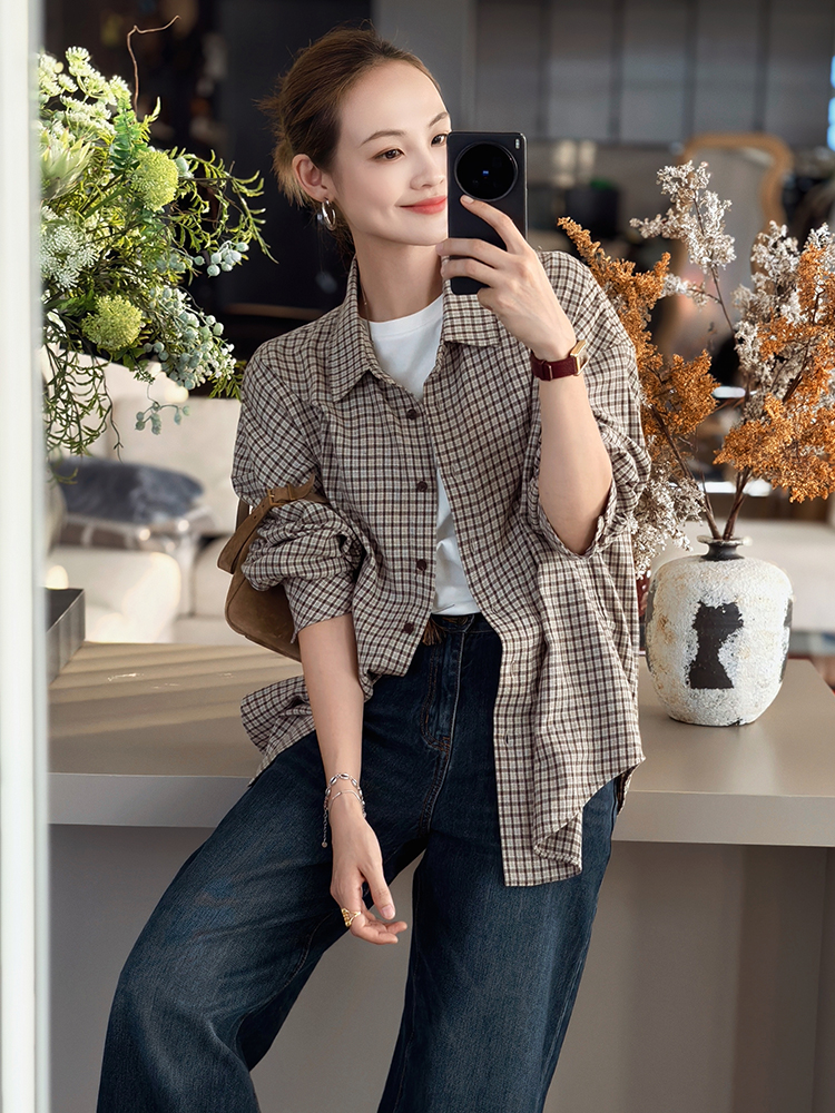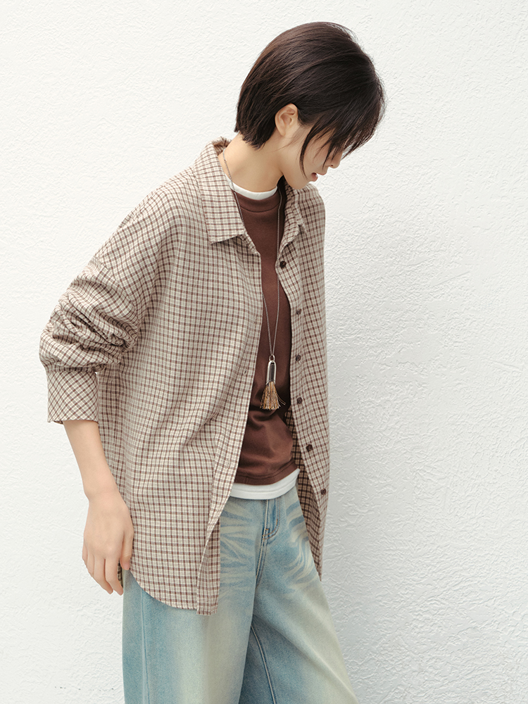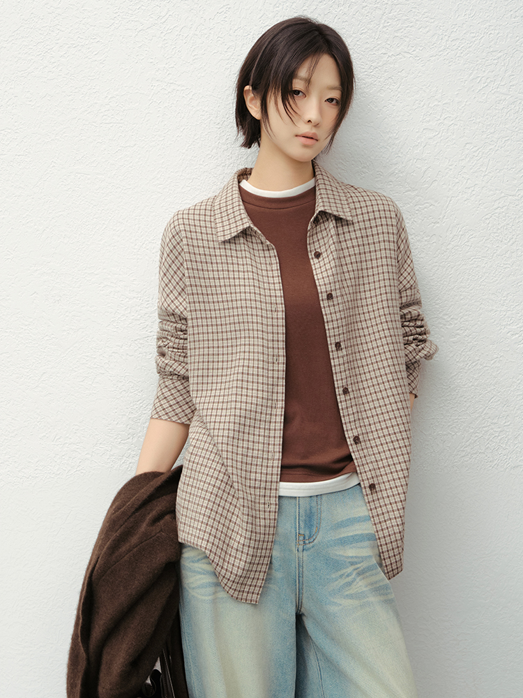 MEIYANG MEIYANG Filin Shirt Artsy Bookish! Cotton Scrub Heattech Lapel Long sleeves-Monday