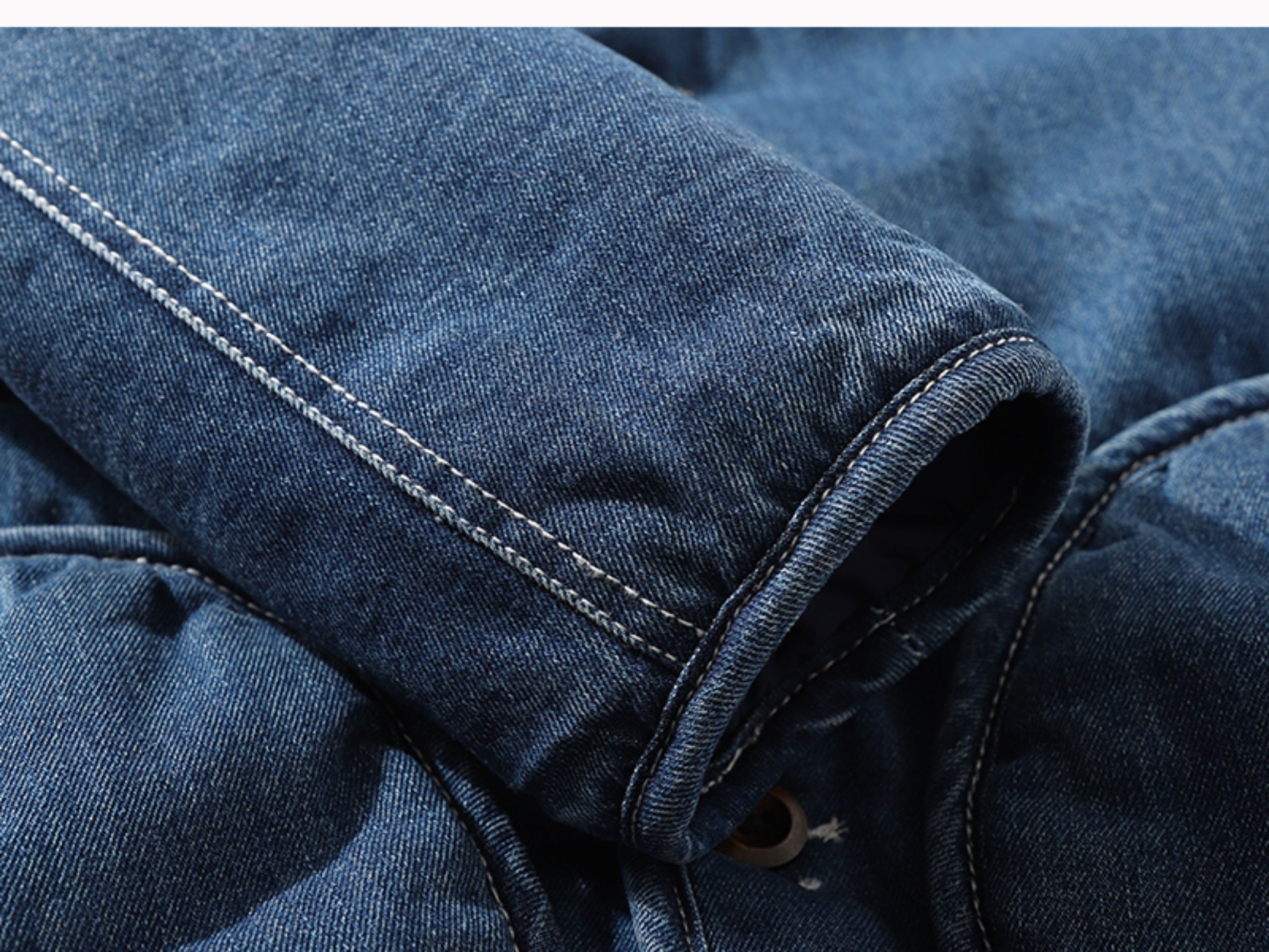 Japanese Style Niche! Autumn and Winter Pure Cotton Washed Denim Cotton Jacket for Men, Quilted, Warm, Hemmed, Collarless Cotton Coat