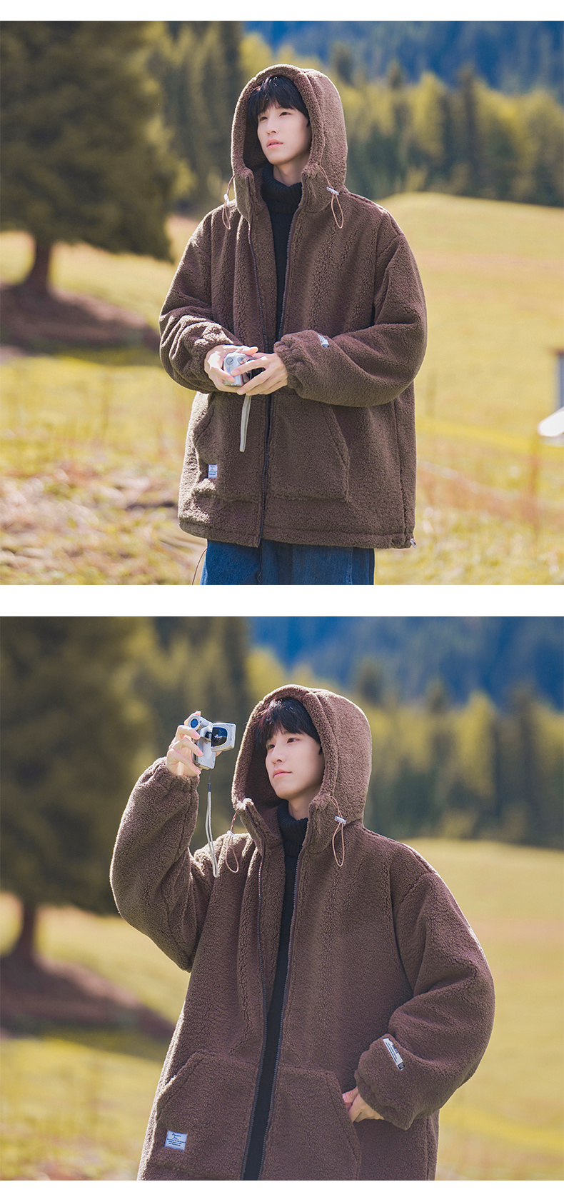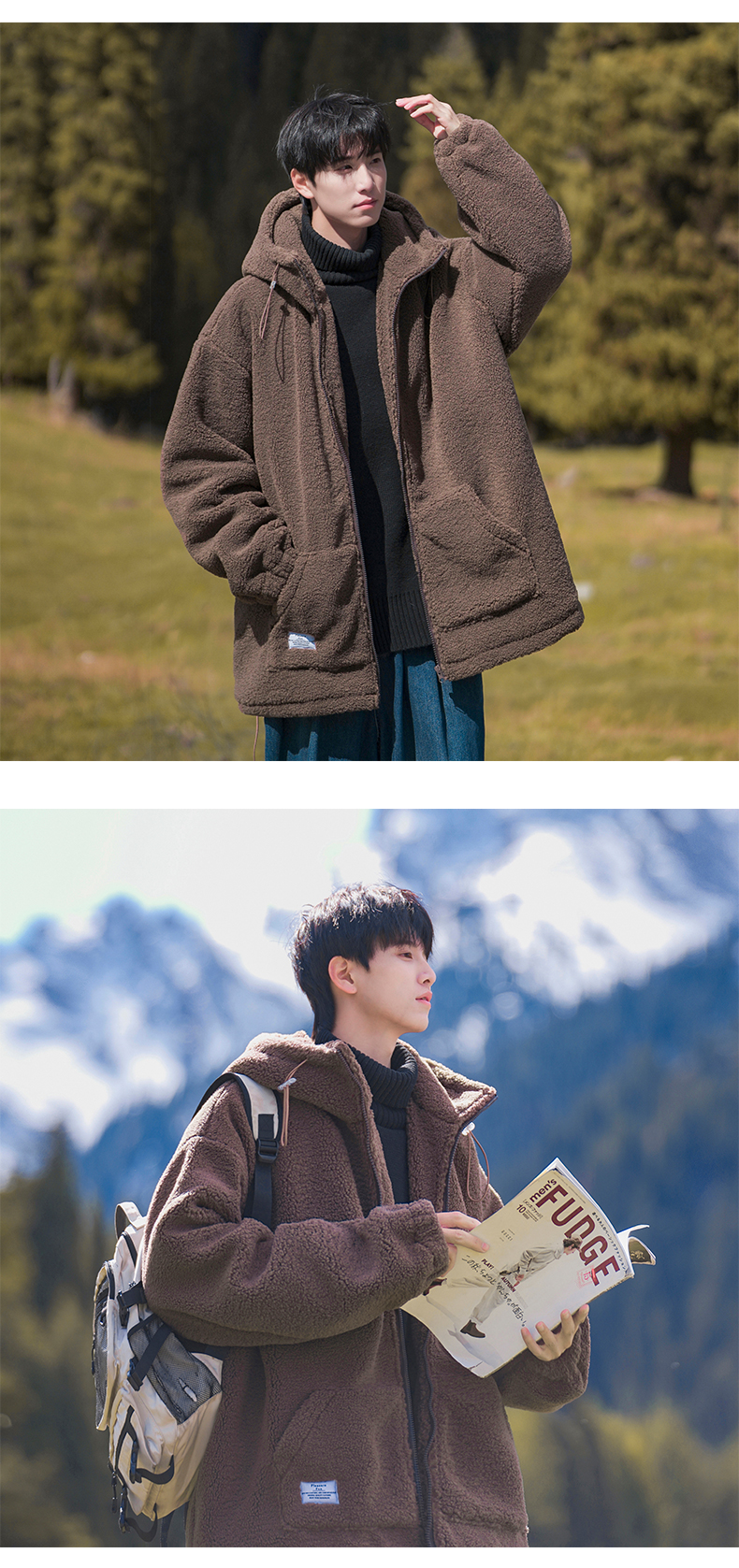 Lamb Wool Cotton Coat for Men, Thickened and Warm for Winter, Hooded Winter Jacket, 2025 New Trendy Casual Cotton-Padded Jacket
