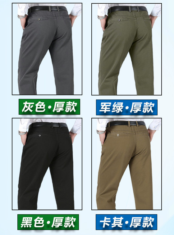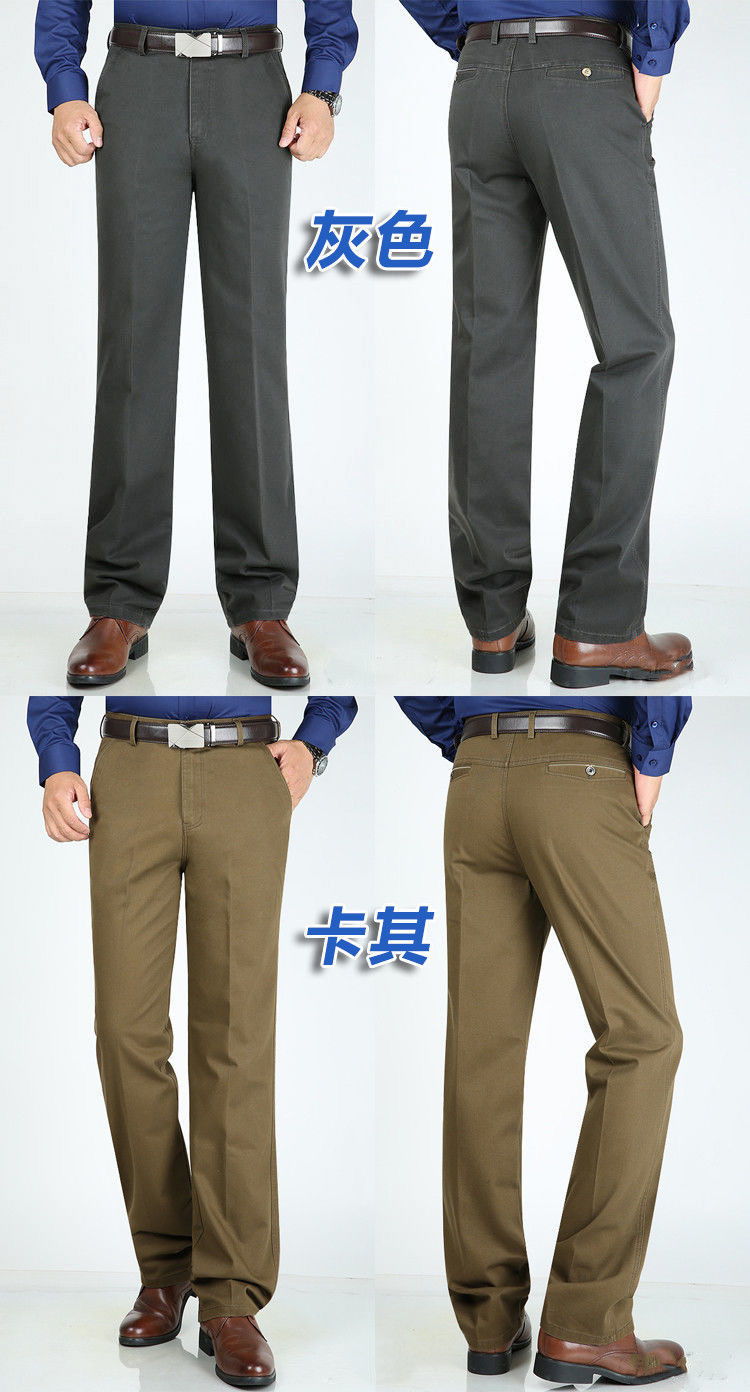 2-Pack Autumn Deep-Waist Wrinkle-Resistant Men's Suit Pants, Pure Cotton Straight-Leg Dad Pants, Loose-Fitting Casual Long Pants for Middle-Aged and Elderly Men