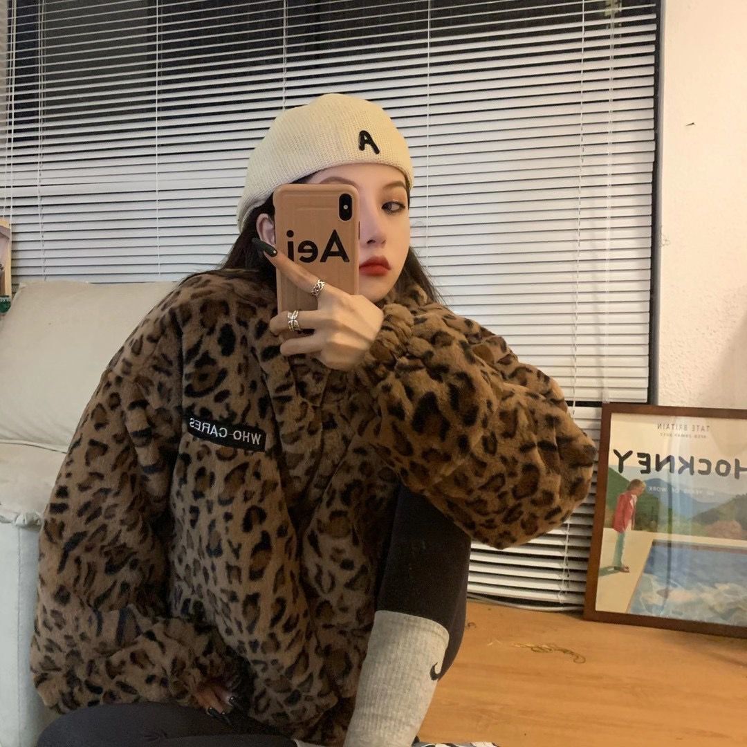 Leopard Print Faux Mink Couple's Jacket, New Autumn Style, Men's Stand Collar Cotton Coat, Trendy Brand Loose Jacket, Women's Thickened Cotton Clothing