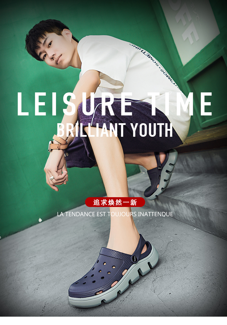 Cross Hole Shoes for Men, Summer Outdoor Wear, Hollow Dual-Purpose Soft Sole soft sole Closed-Toe Slippers, Beach Shoes for Men