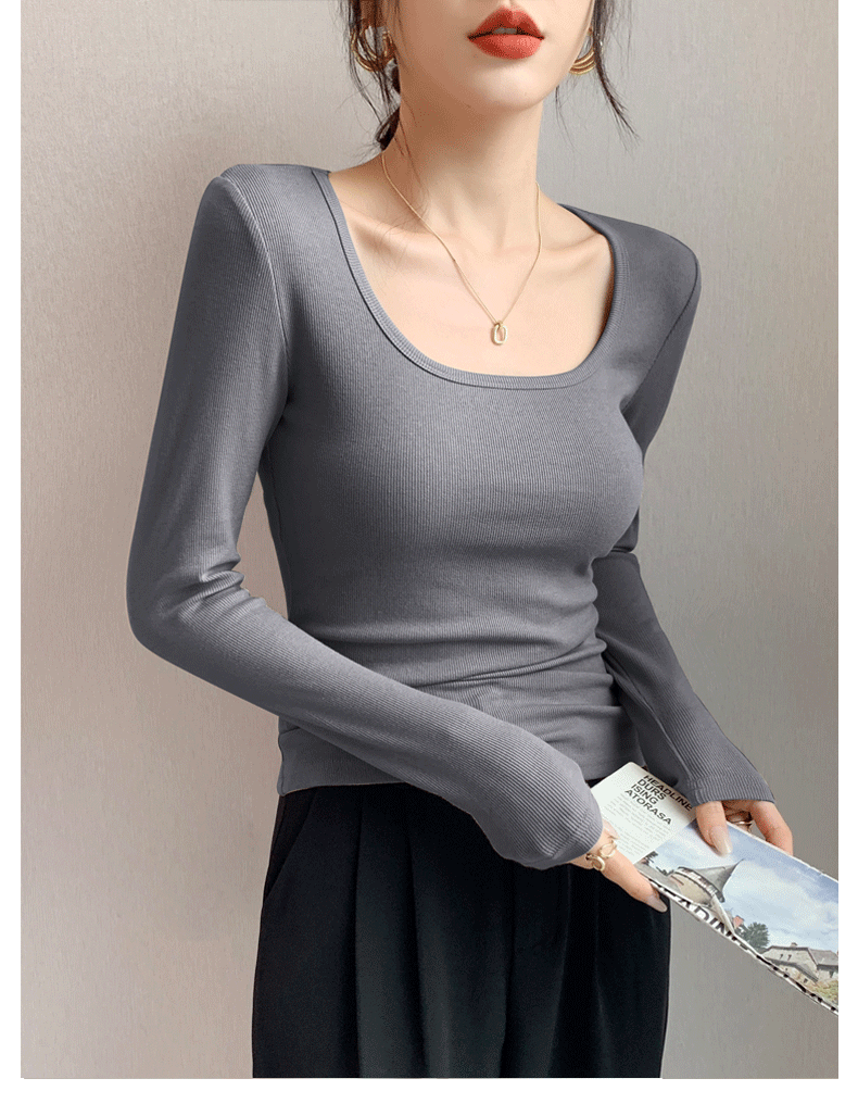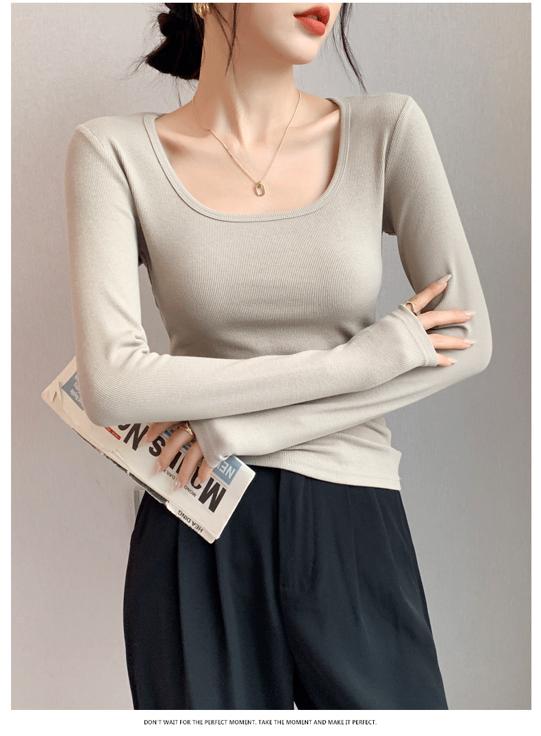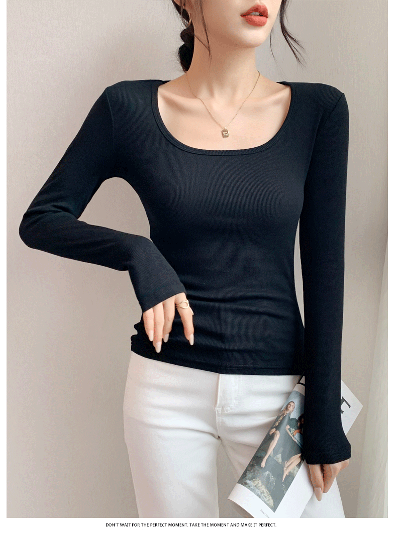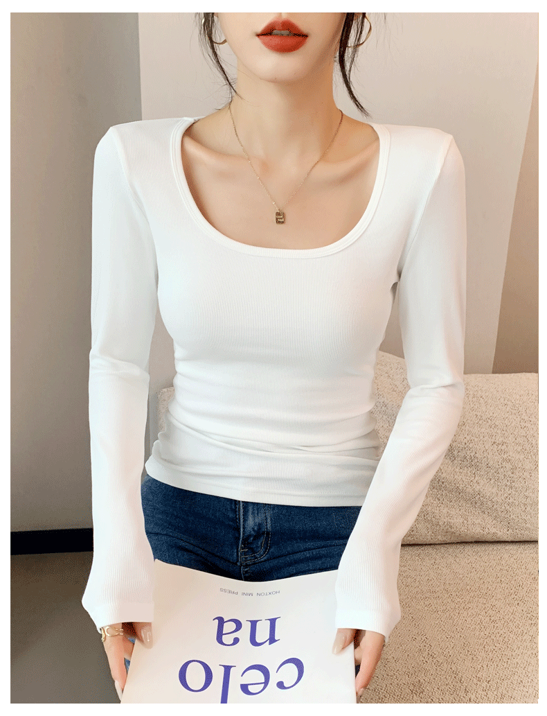Women's Base Layer Shirt 2025 Autumn and Winter Stylish U-Neck Long-Sleeve T-Shirt Slim Fit Coat Inner Layer Large Neckline Square Collar White Top