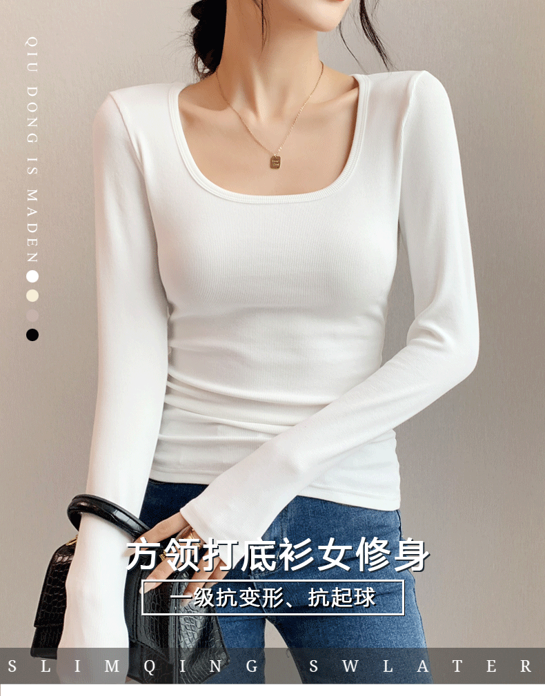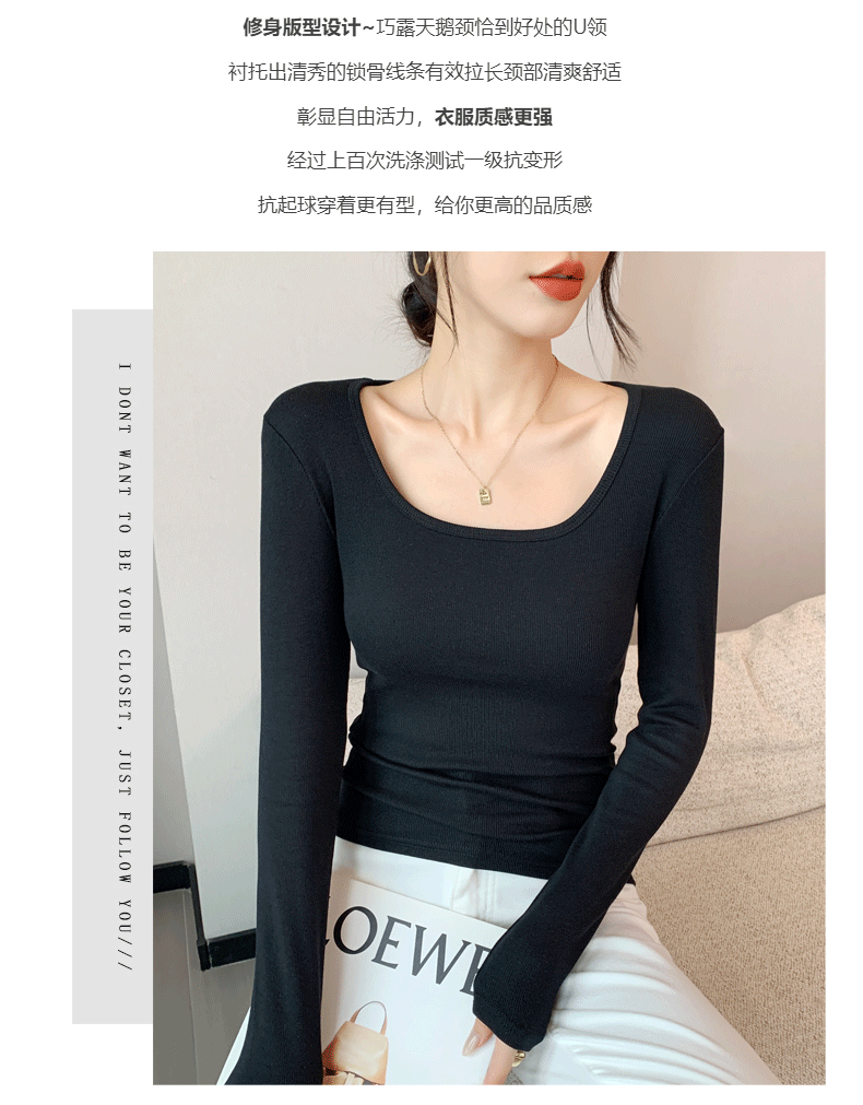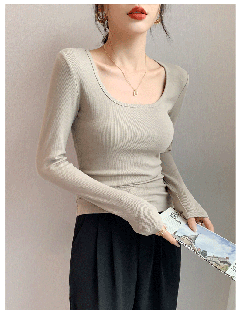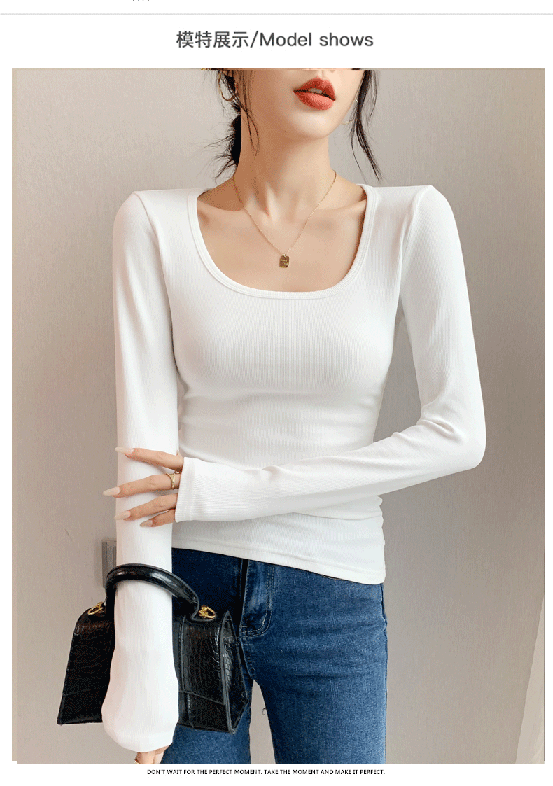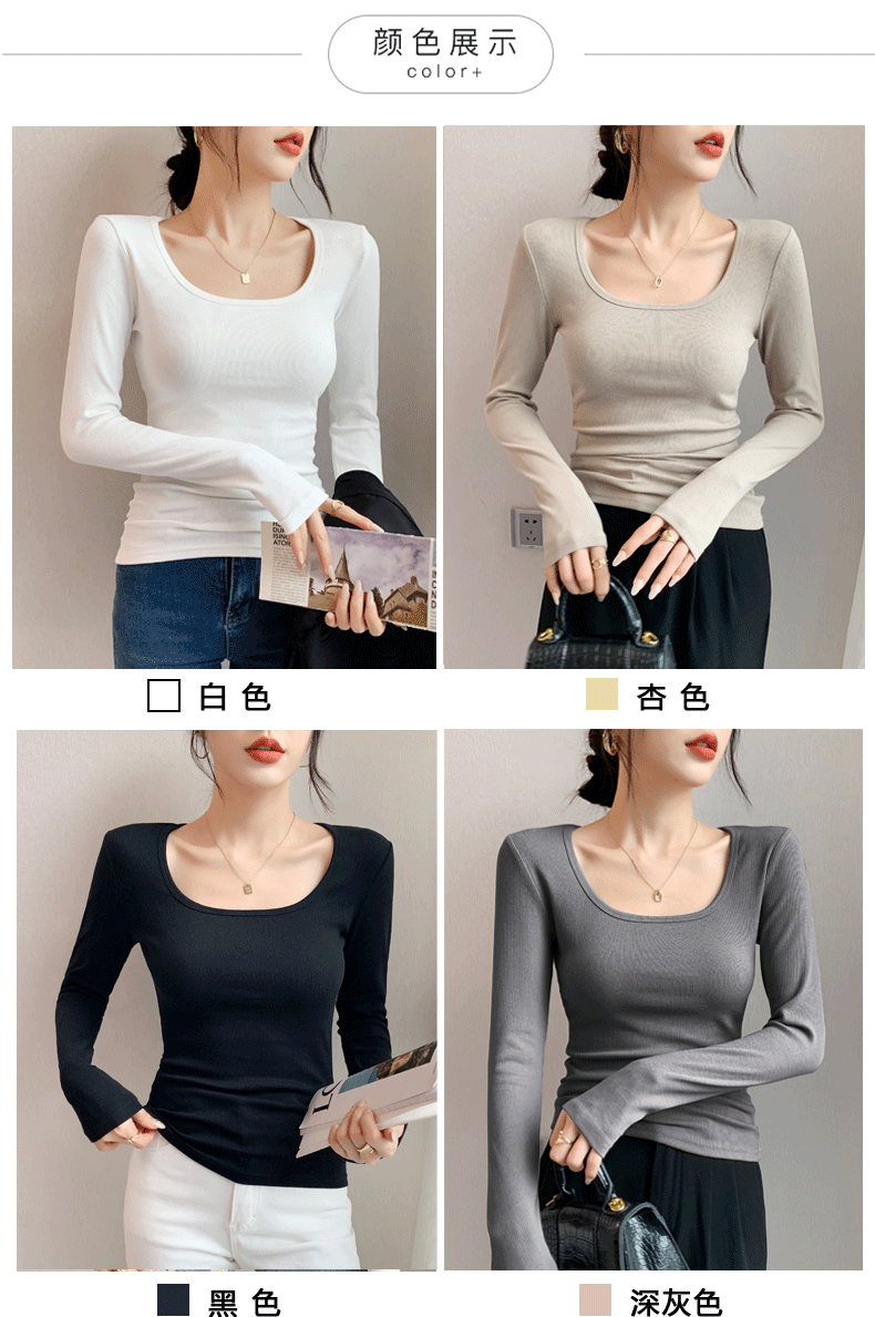 Women's Base Layer Shirt 2025 Autumn and Winter Stylish U-Neck Long-Sleeve T-Shirt Slim Fit Coat Inner Layer Large Neckline Square Collar White Top