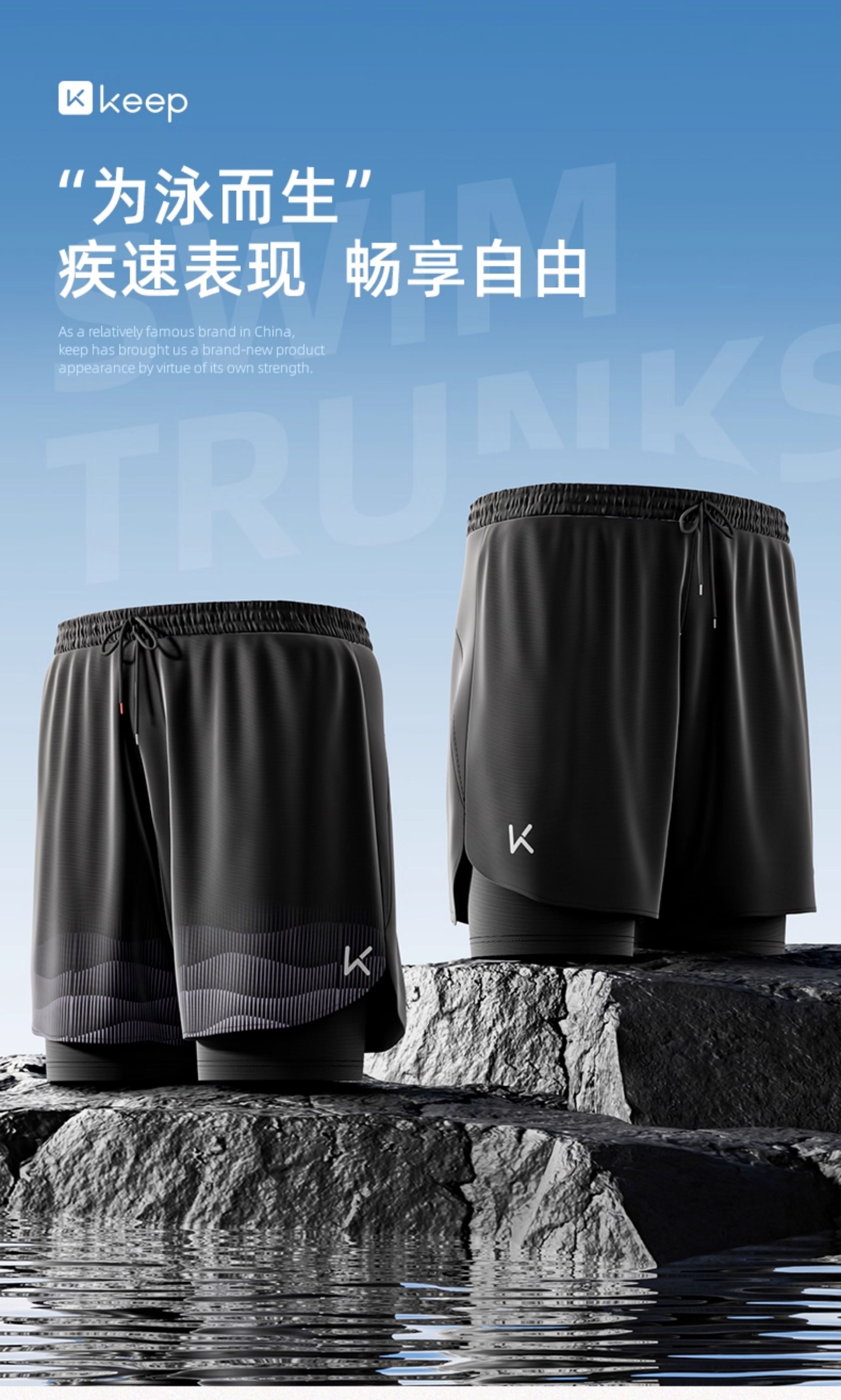 Keep Swimming Trunks for Men, New Double-Layer Anti-Embarrassment Adult Large Size Professional Swimming Trunks, Swimming Goggles, Swimming Cap, Hot Spring Set