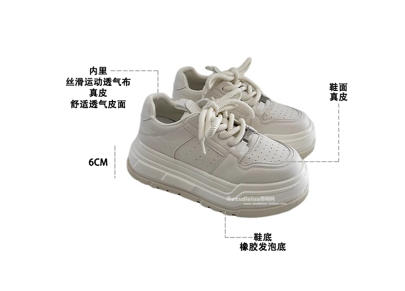 Hong Kong Genuine Leather Casual Breathable White Sneakers for Women 2025 Spring and Autumn Trendy Dirty Shoes Popular Thick-Soled Versatile Sneakers for Petite Individuals