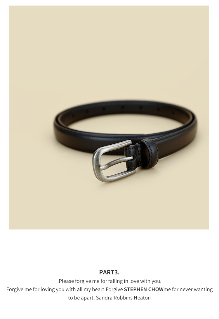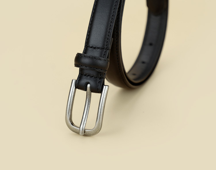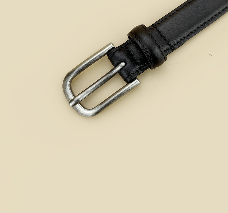Women's Genuine Leather Belt, Top Layer Cowhide, Black Belt, Thin and Narrow, Pin Buckle Decoration, Suitable for Skirts, Simple and Versatile, Jeans Belt