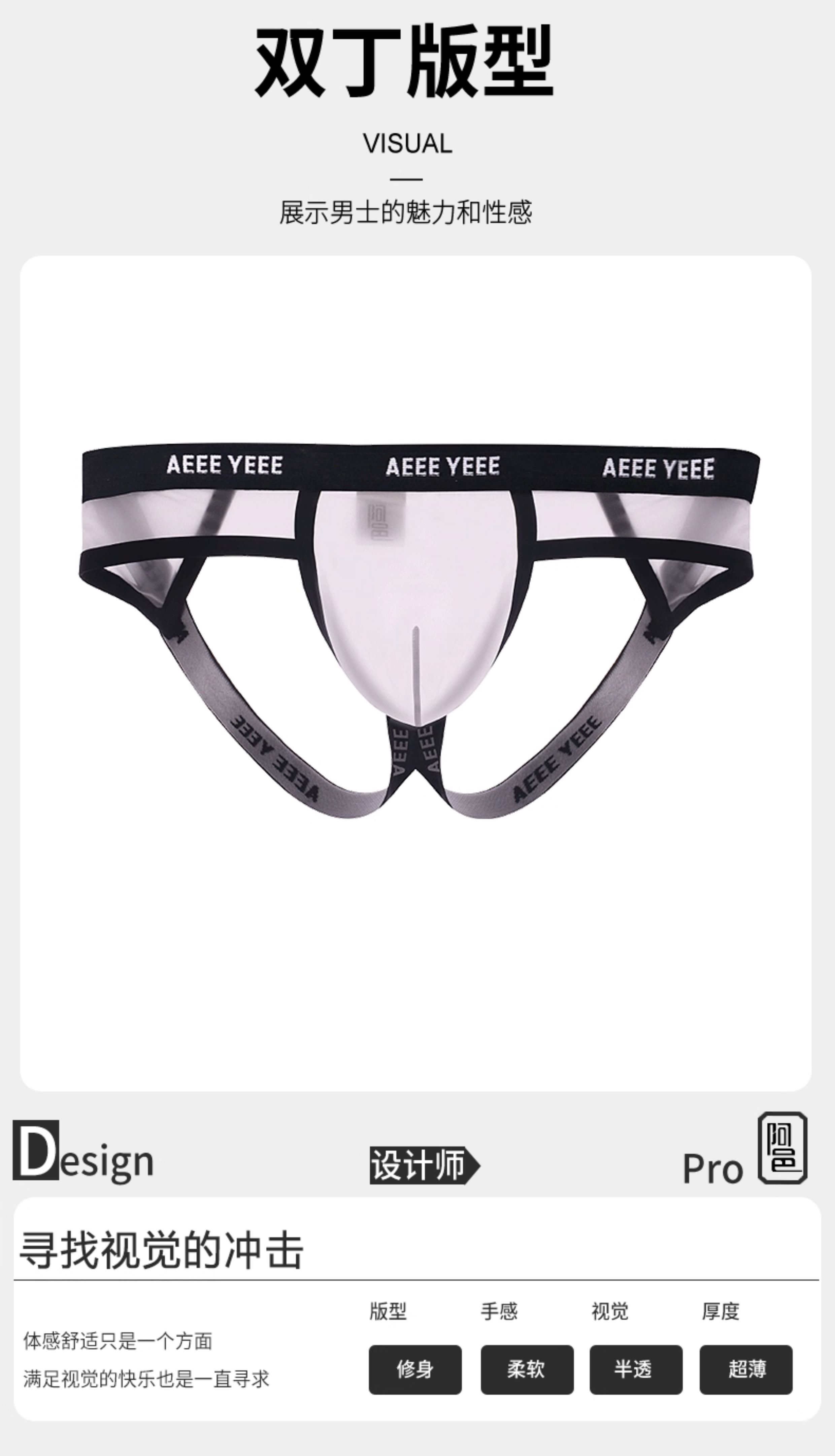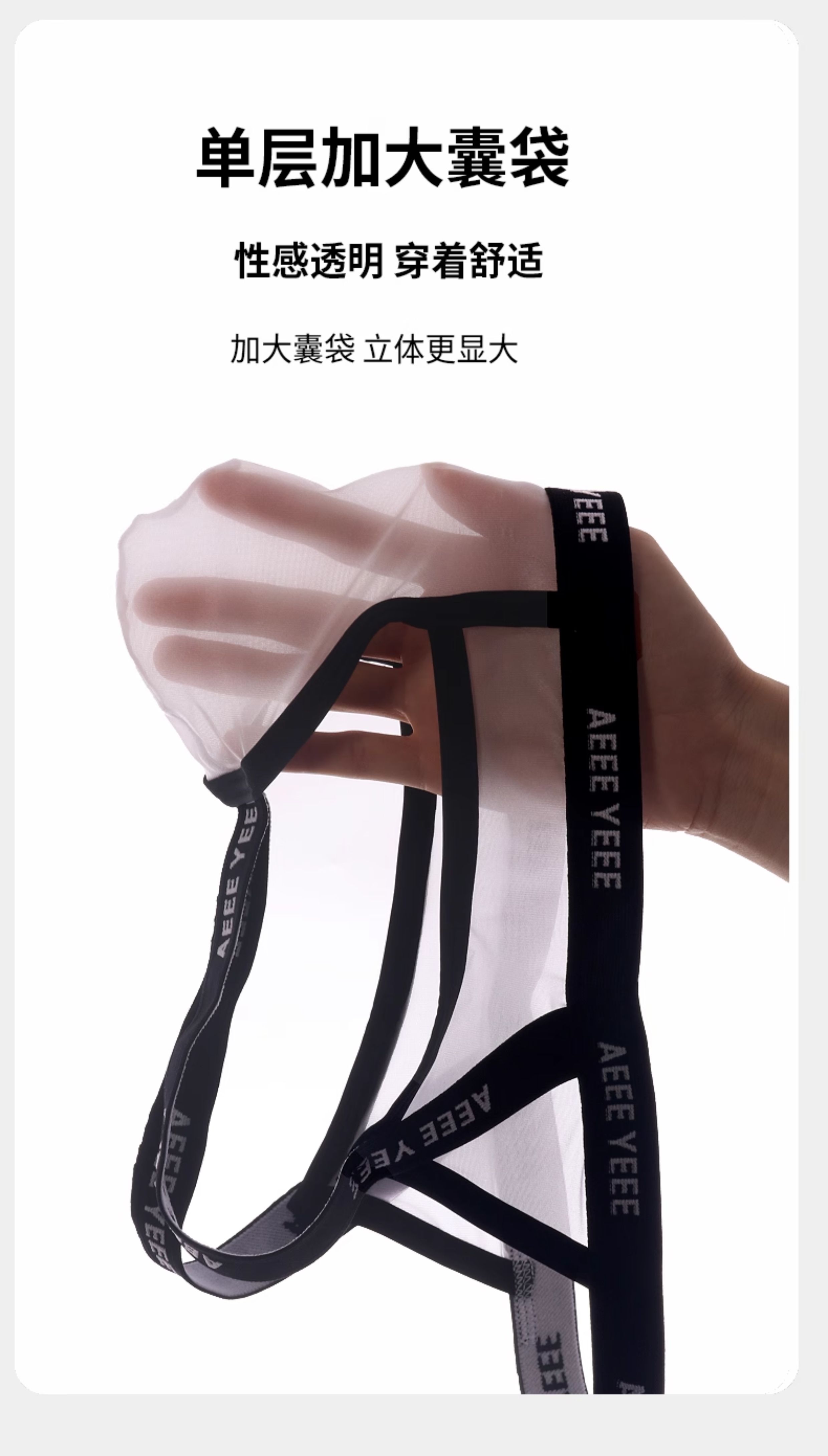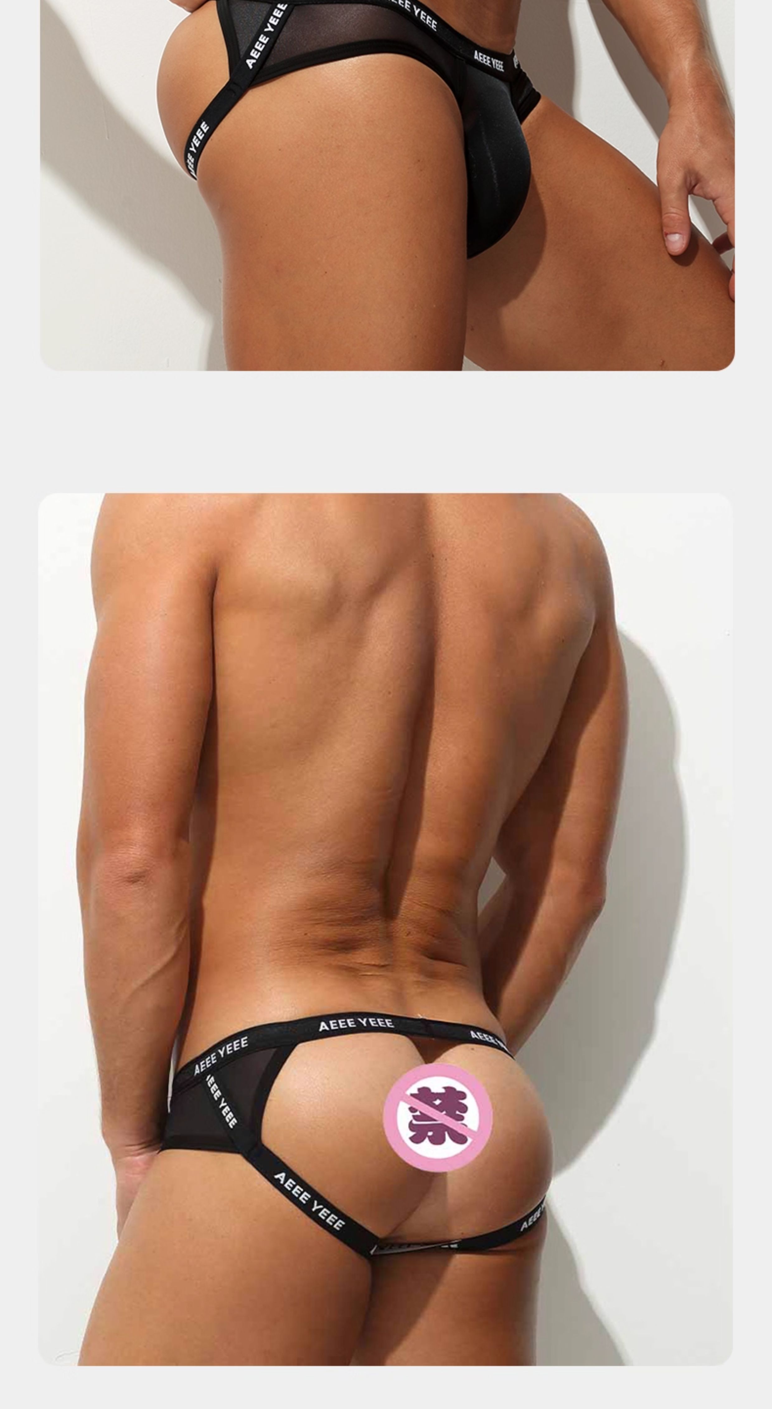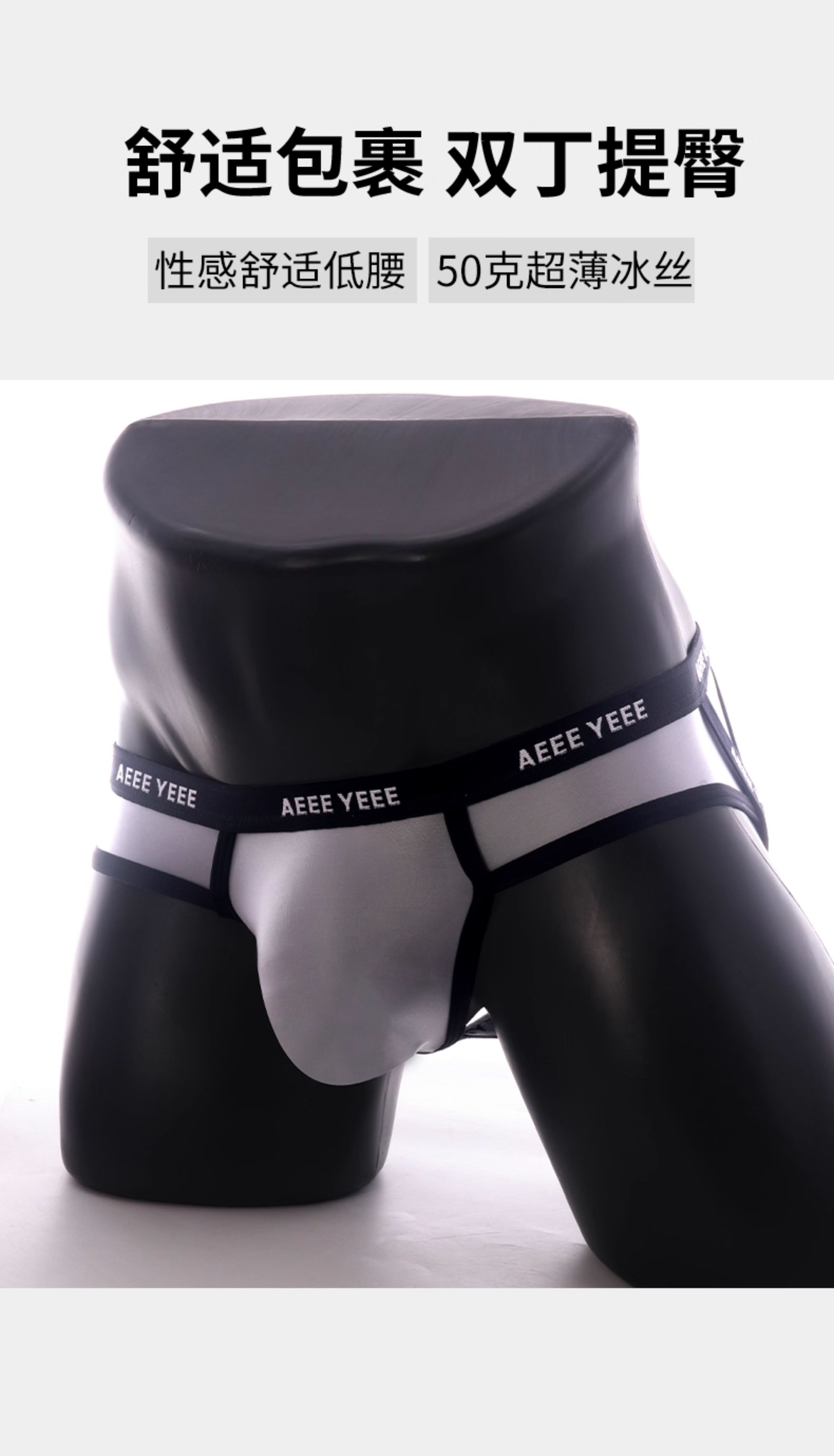 Ayi Men's Thong Underwear, Low-Waist, Sexy Ice Silk U-Convex T-Pants, High-Cut Hollow Double Thong Underwear with Large Pouch, Ultra-Thin