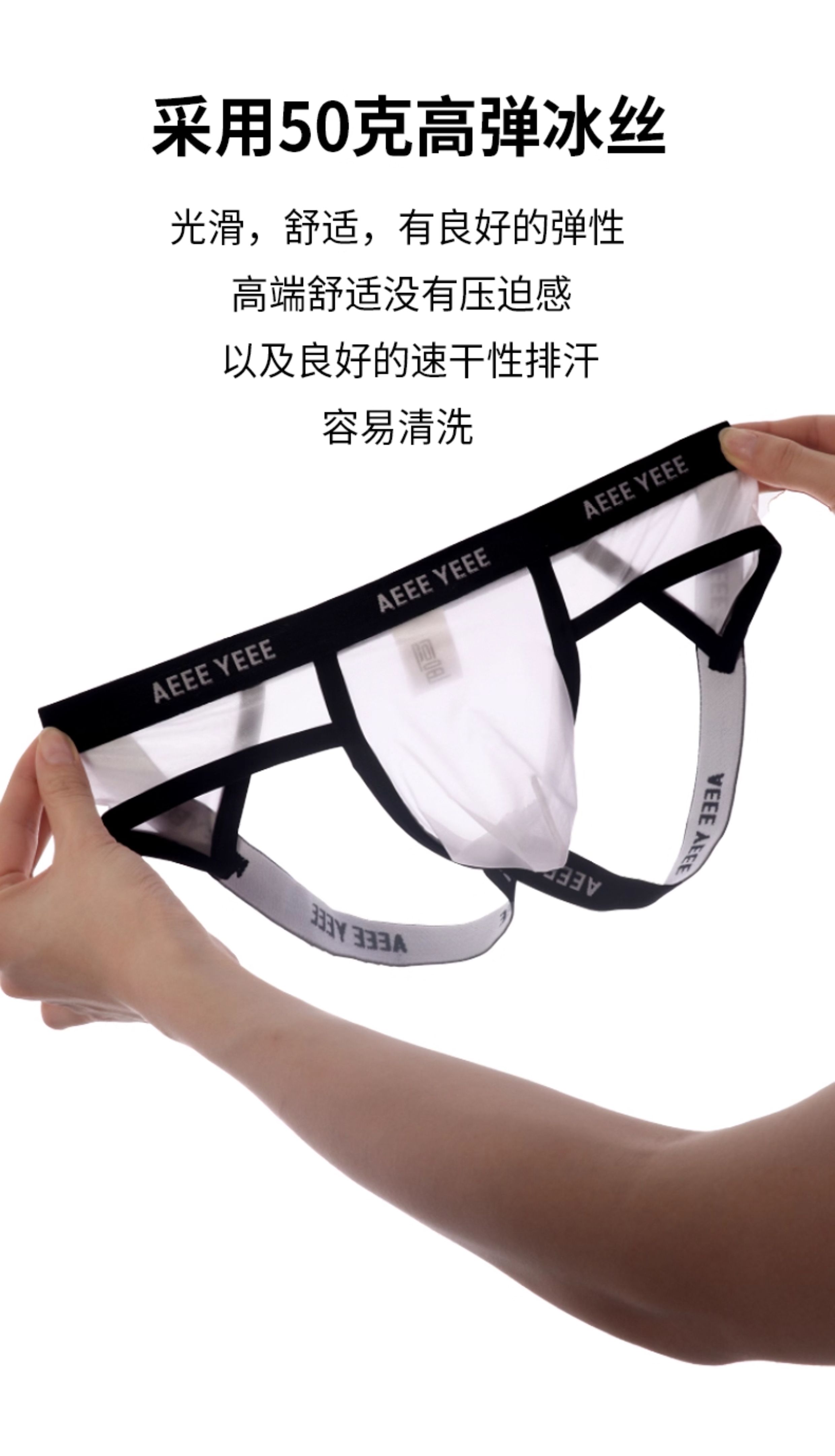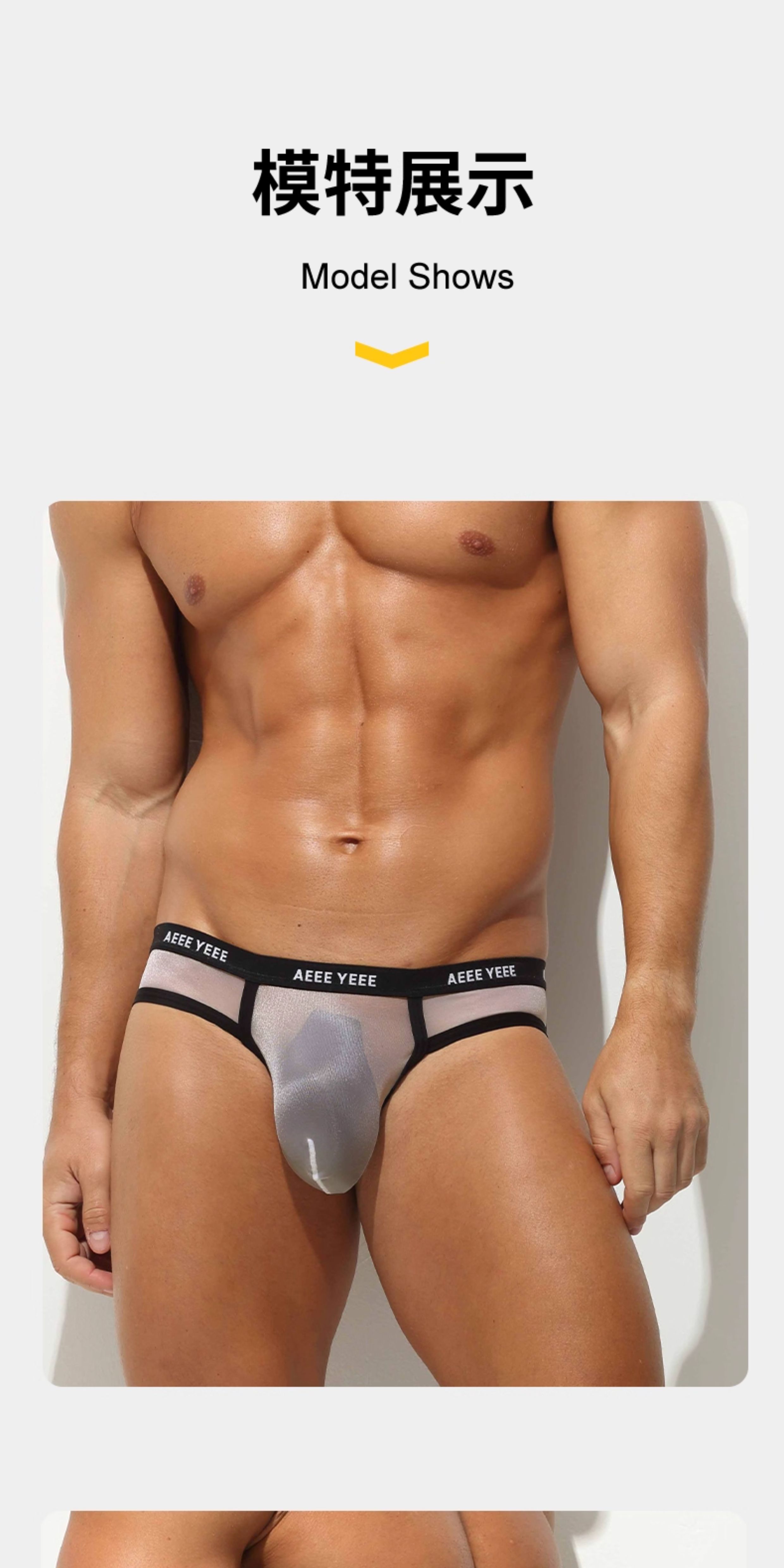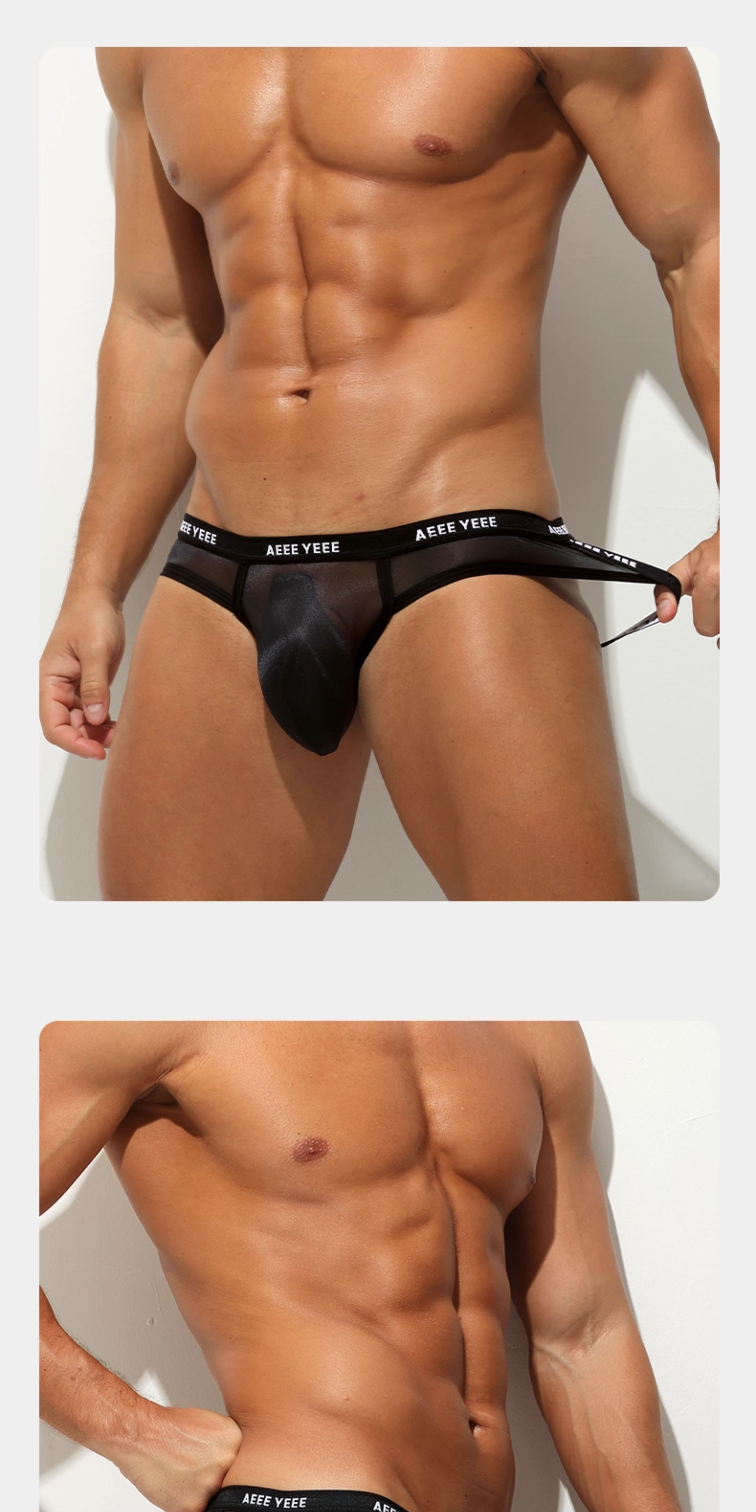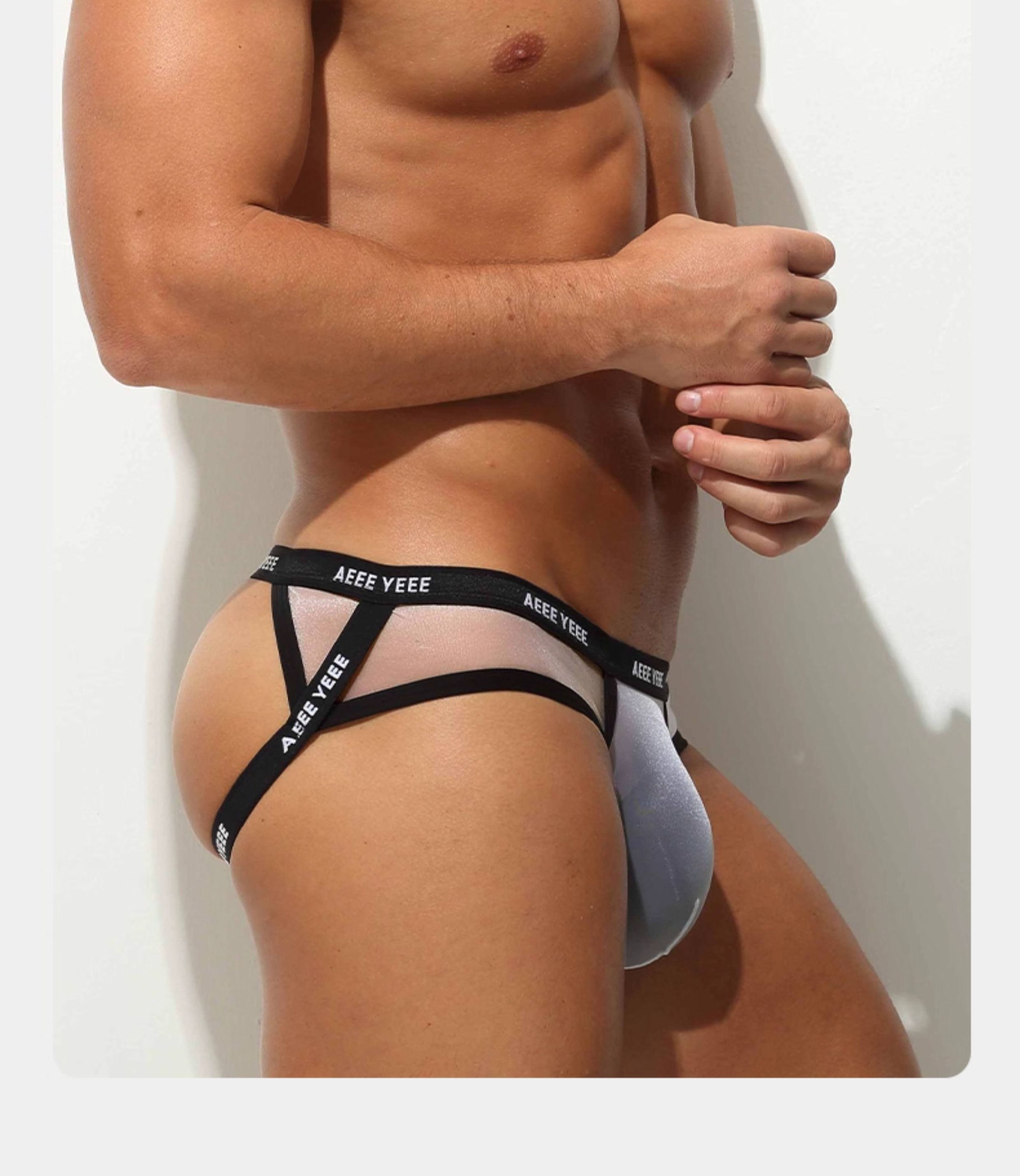 Ayi Men's Thong Underwear, Low-Waist, Sexy Ice Silk U-Convex T-Pants, High-Cut Hollow Double Thong Underwear with Large Pouch, Ultra-Thin
