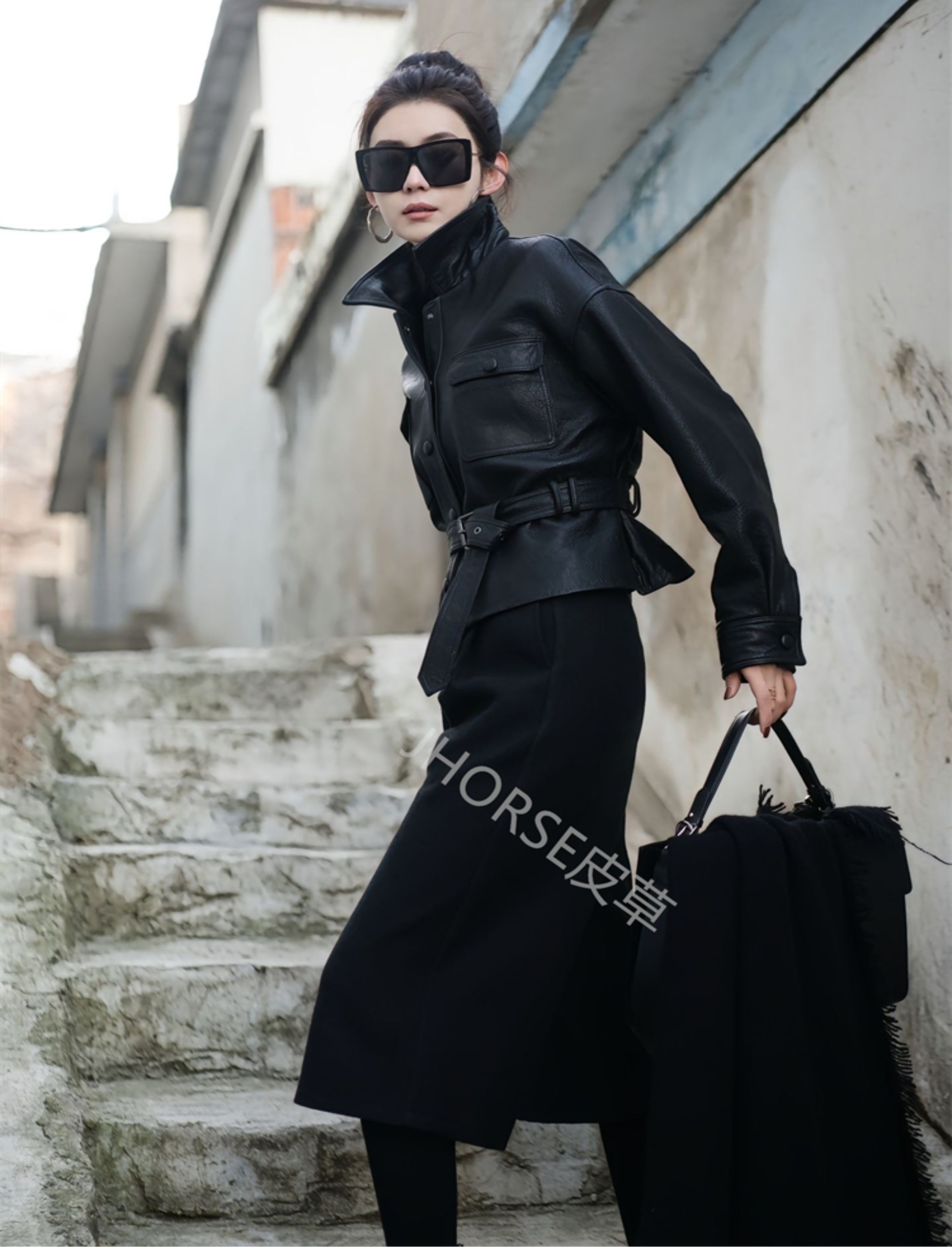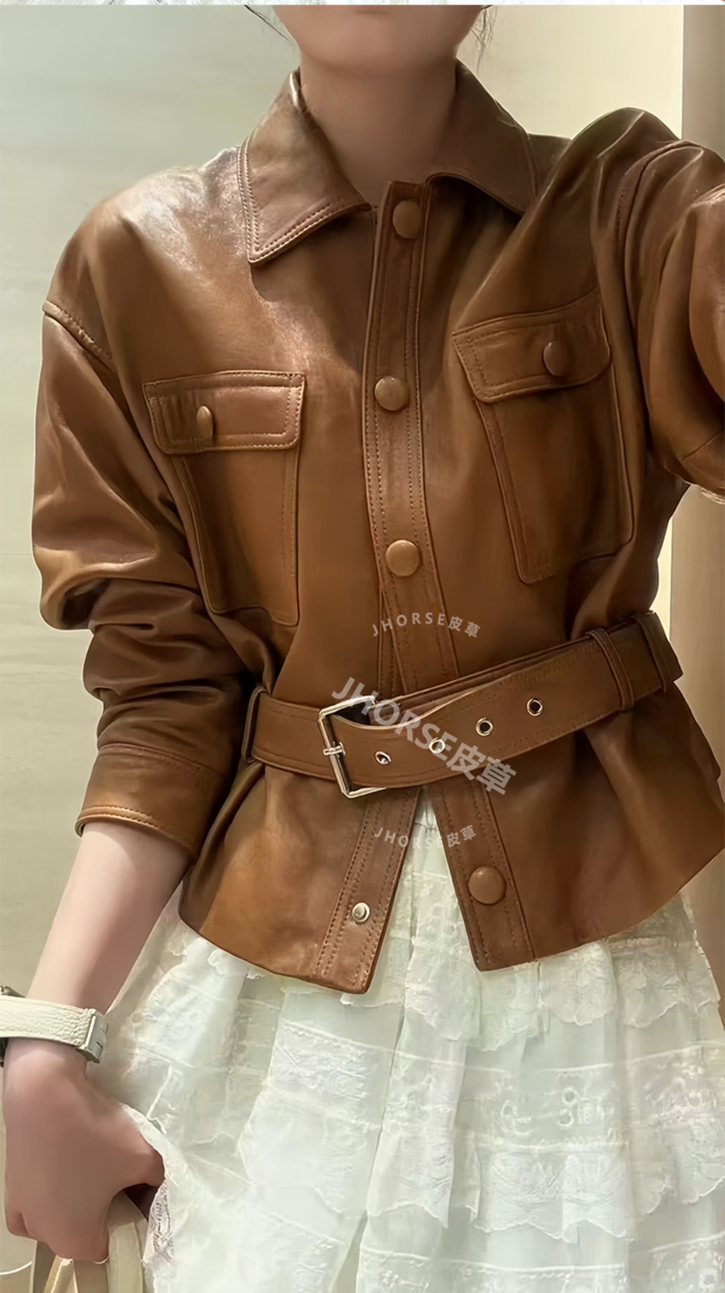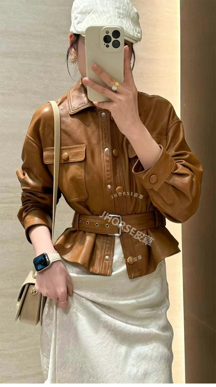 Imported Bubble Leather Sheepskin Short Jacket for Women, Same Style as Song Jia, 2025 Autumn New Model, Waist-Cinching, Slimming, Genuine Leather Jacket