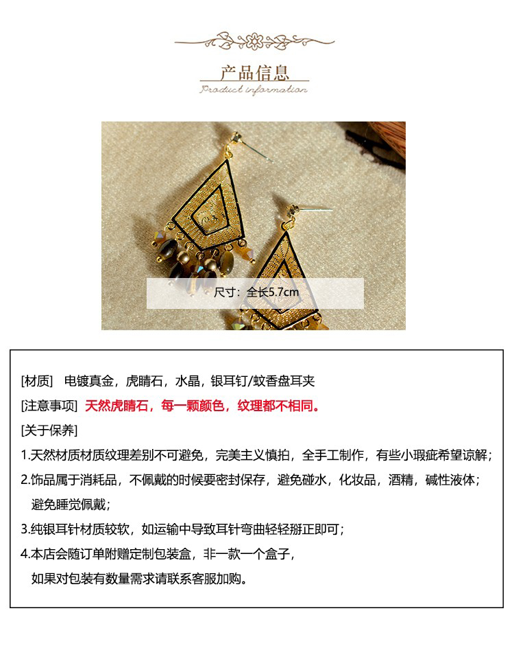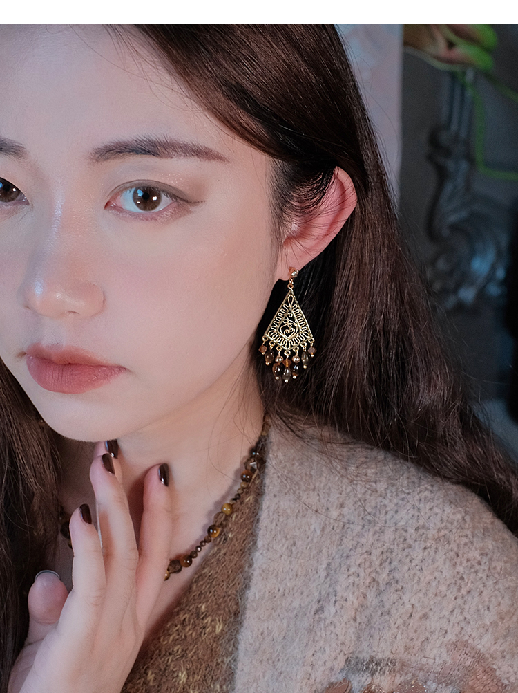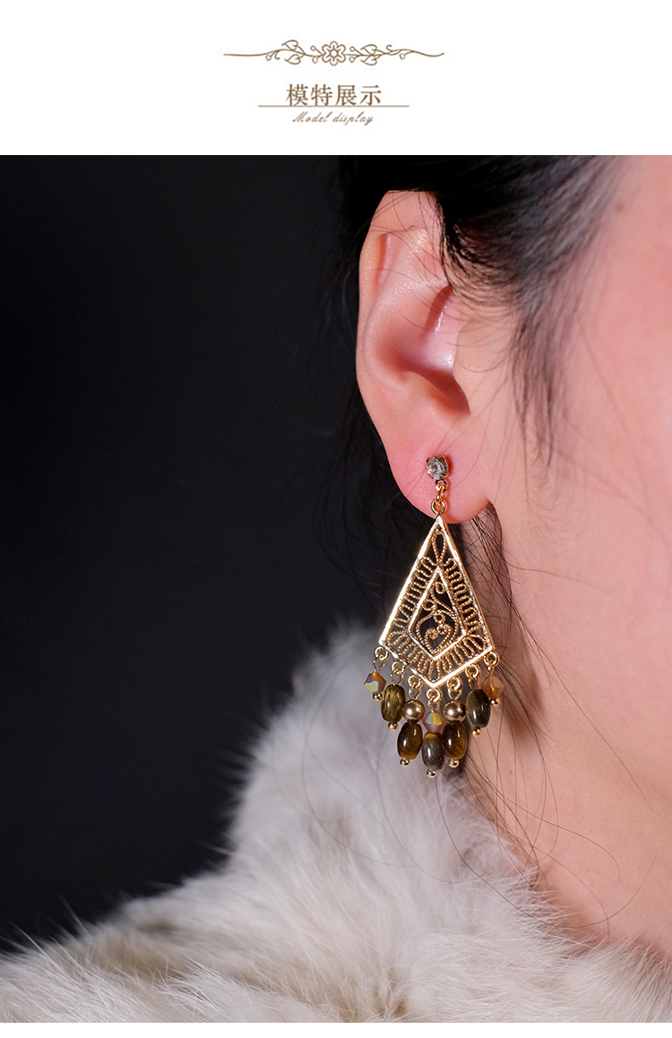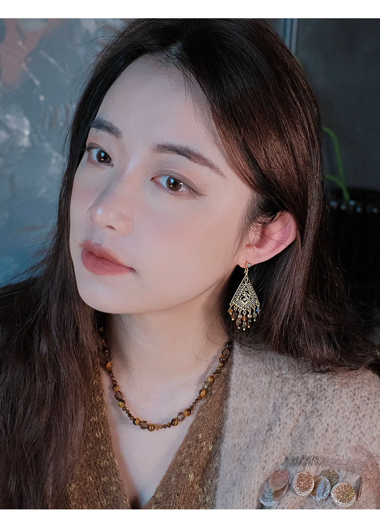 Gypsy Original Vintage Summer Melard Bohemian Style Tiger Eye Stone Tassel Earrings Ear Clips Ear Accessories