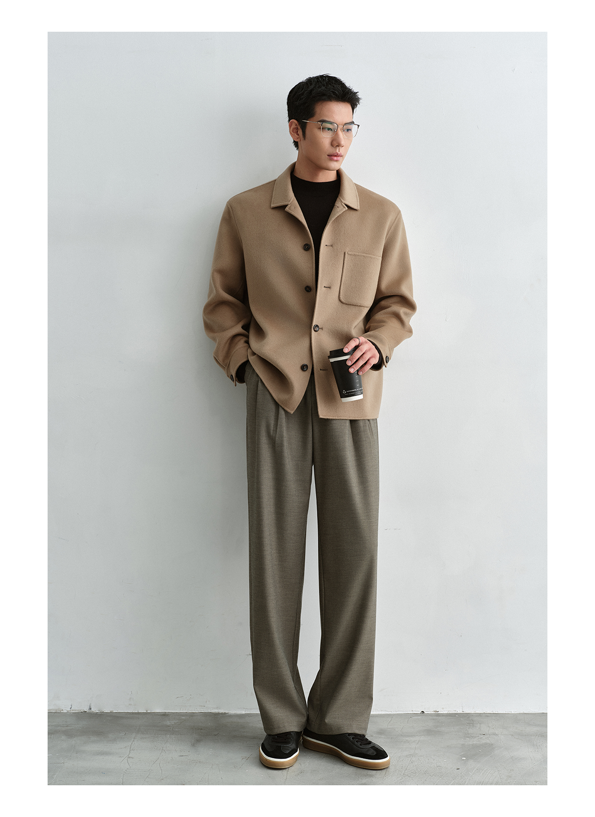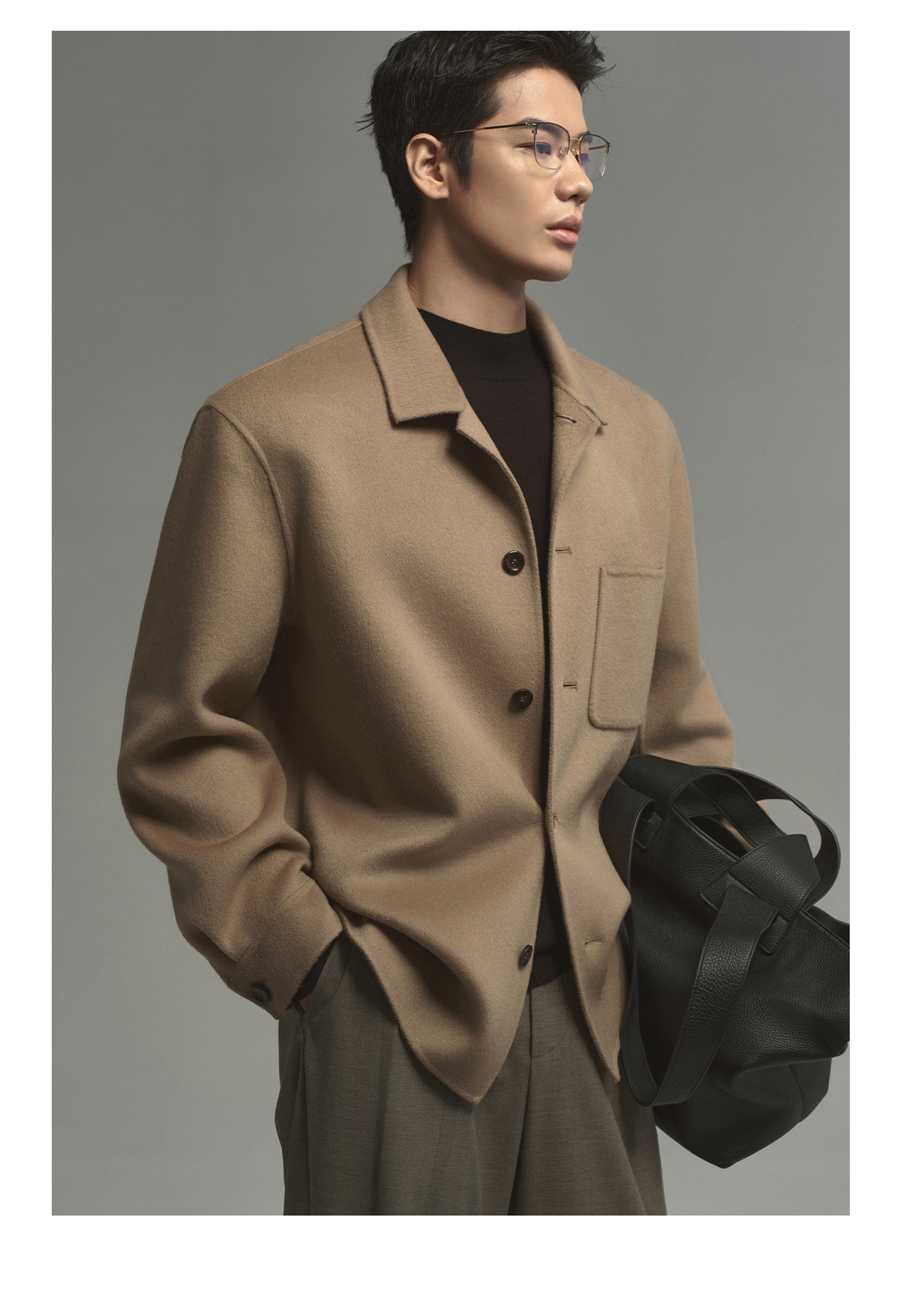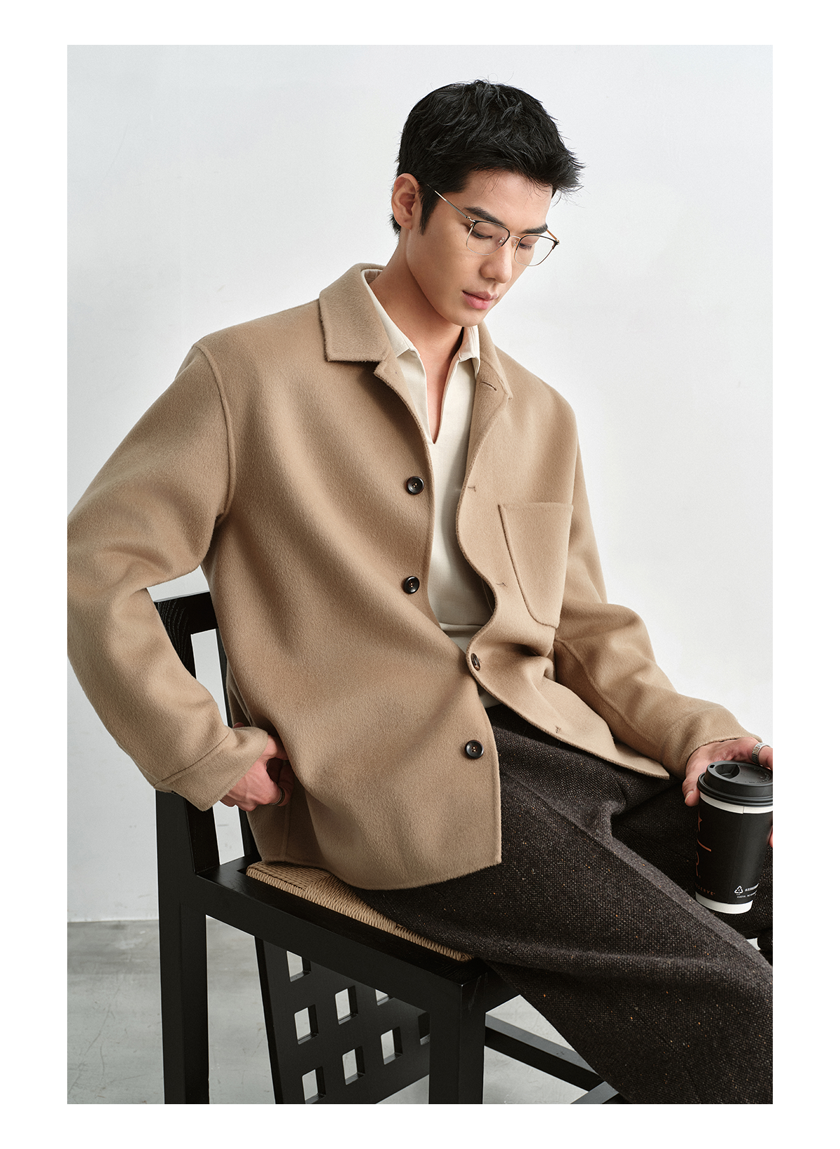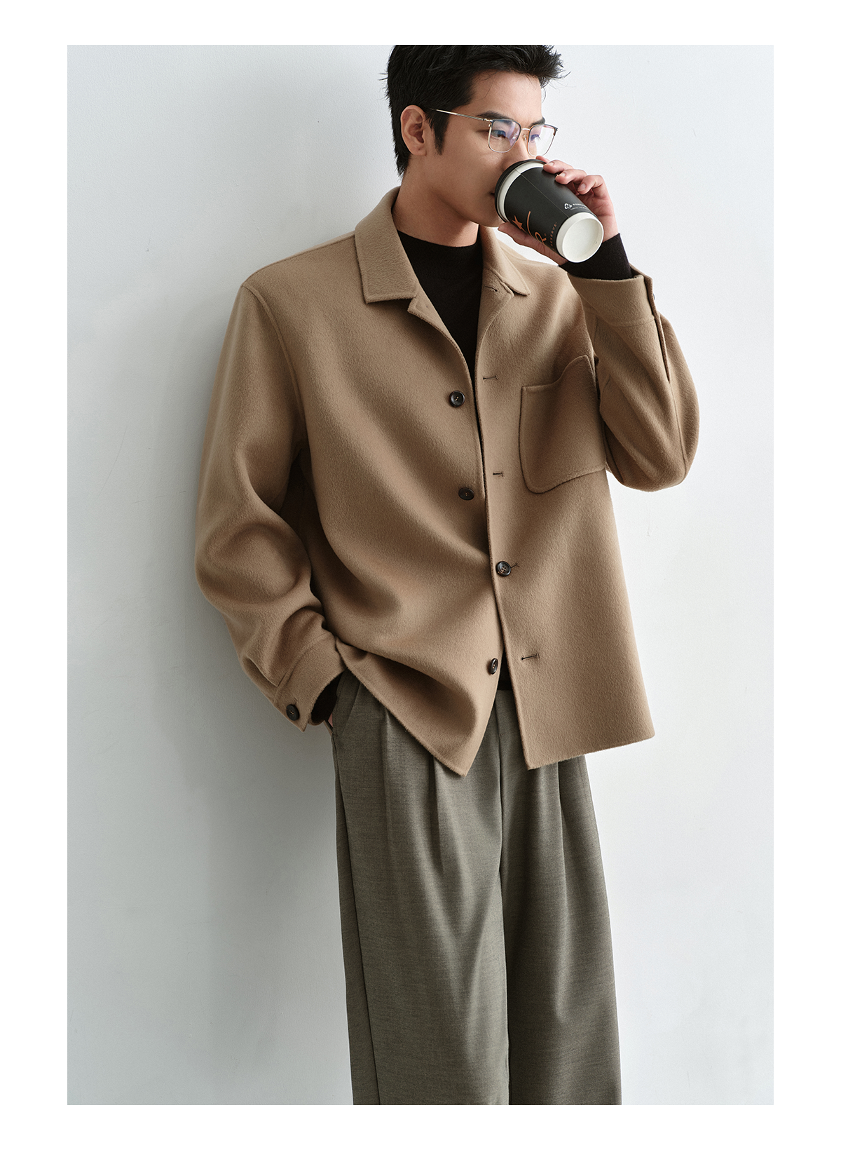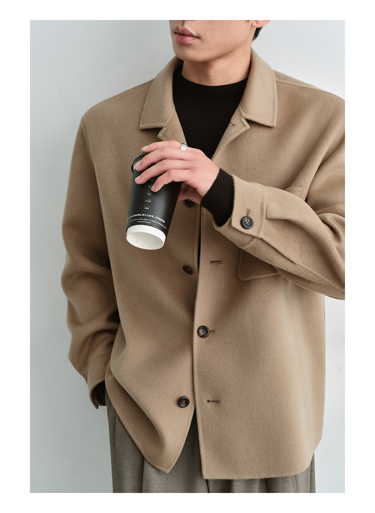 OSENS Men's Heavy weight Import High Support Australian Wool Cashmere Lasel Shoulder Straight-leg Short Double-sided Outwear Men's Winter