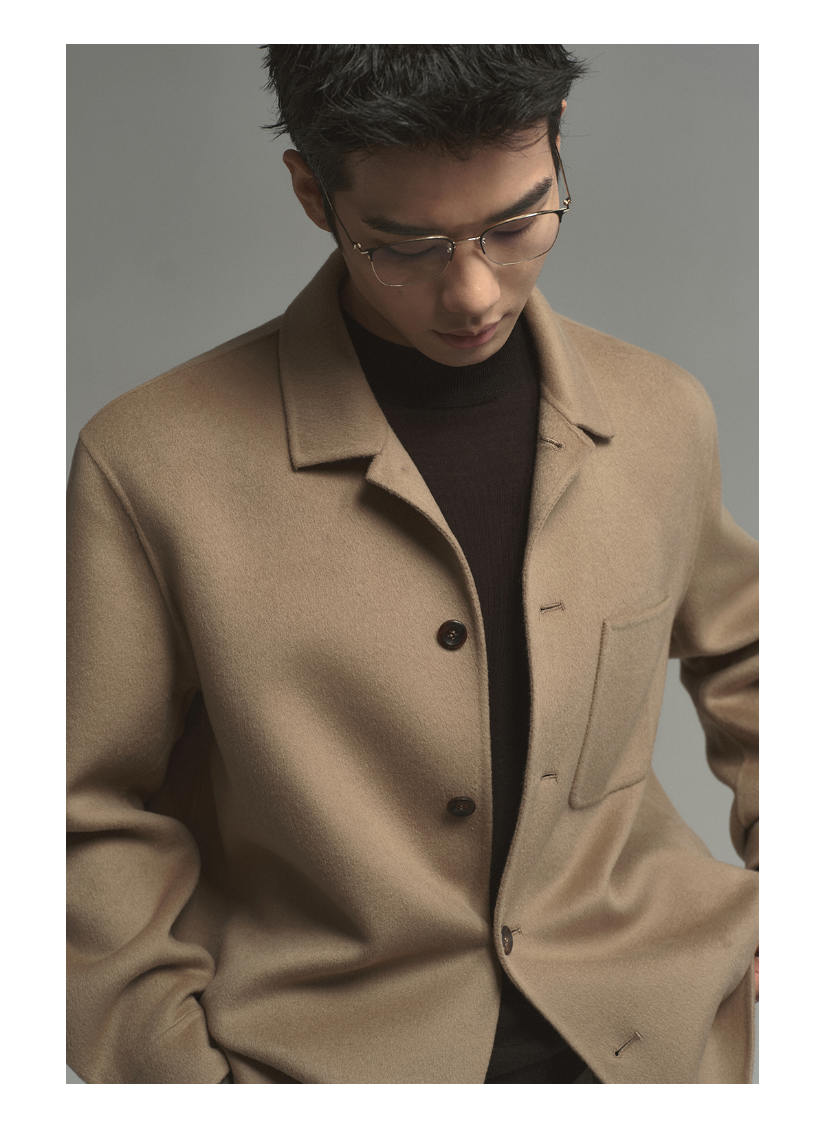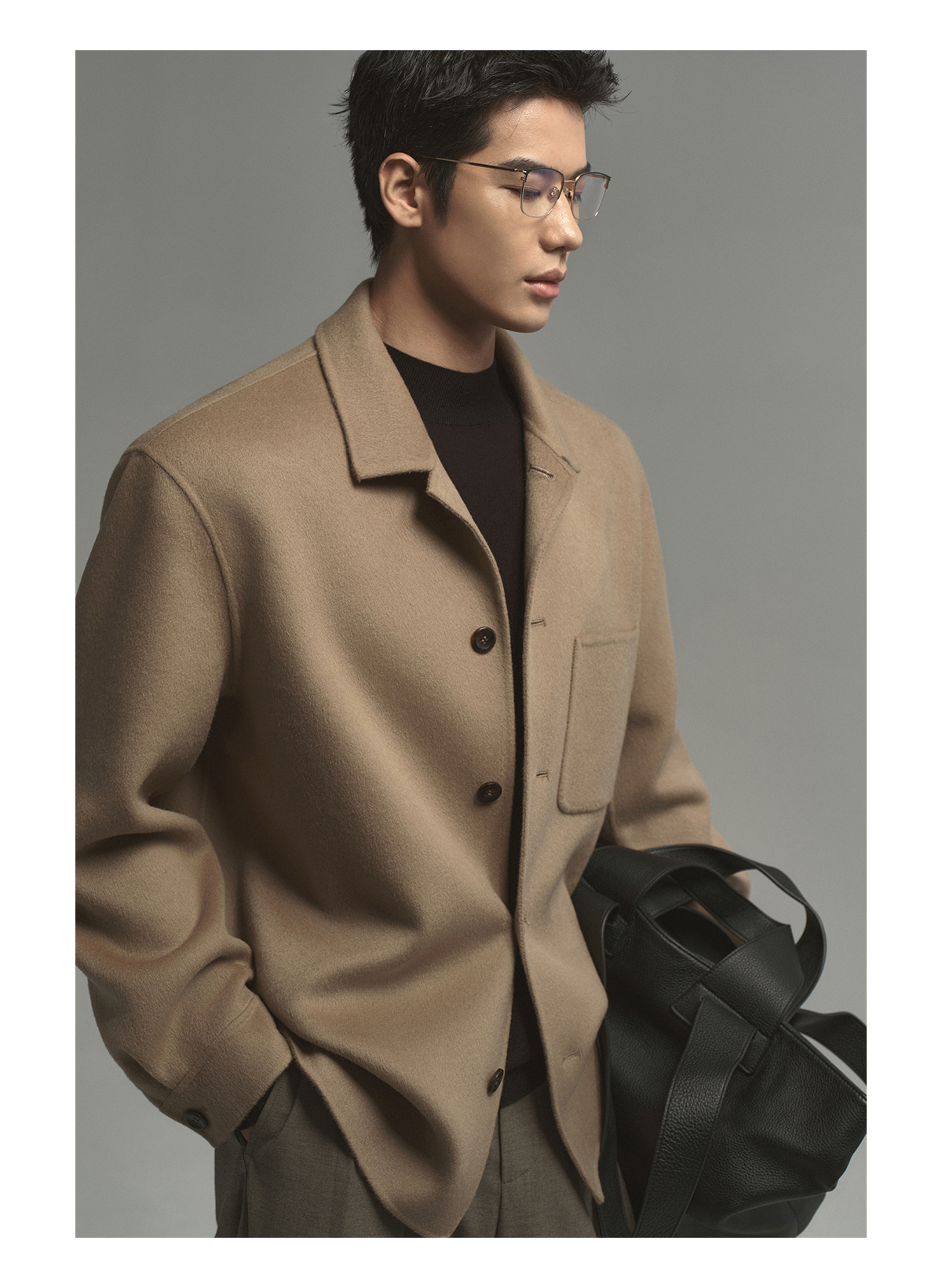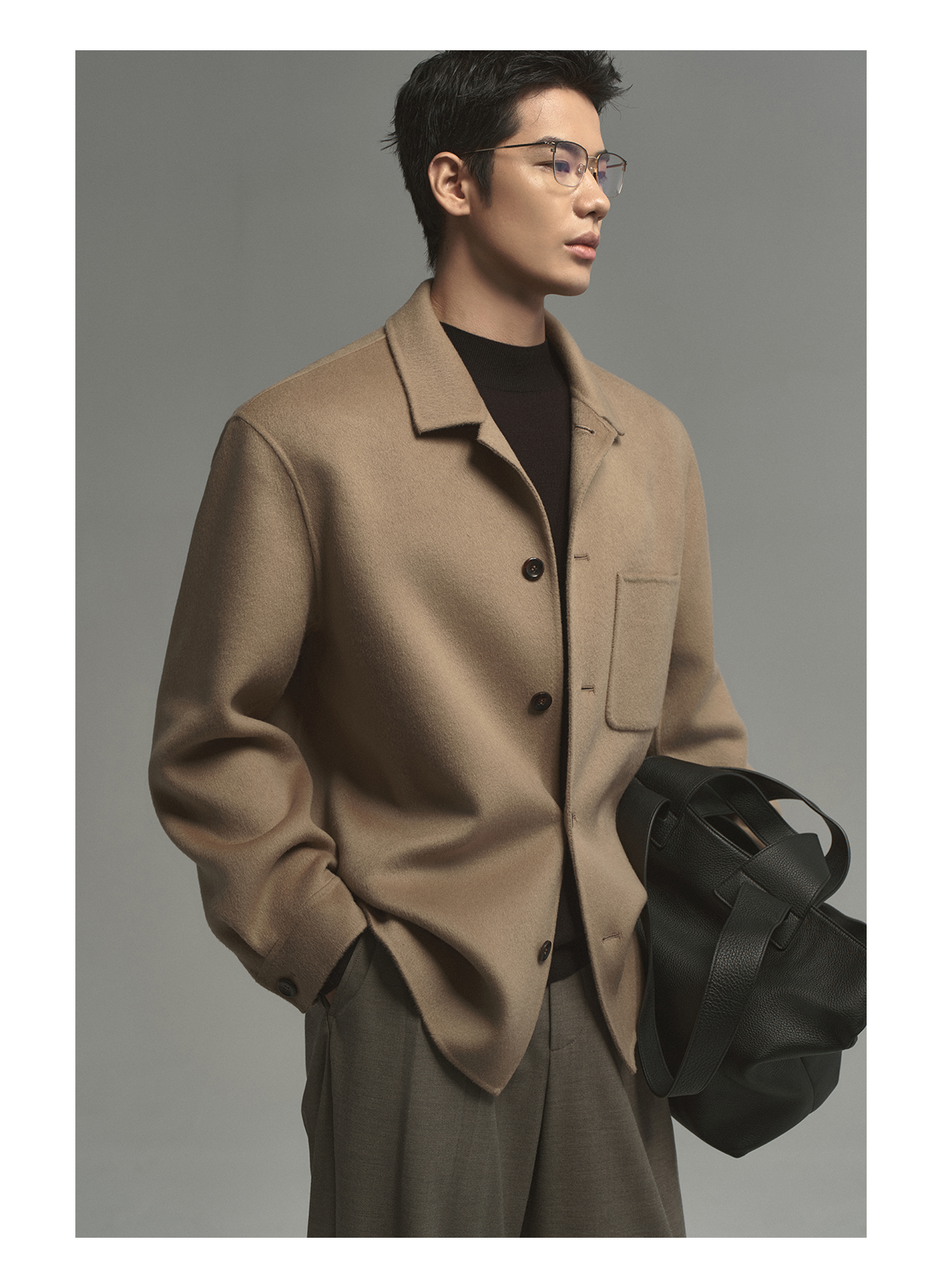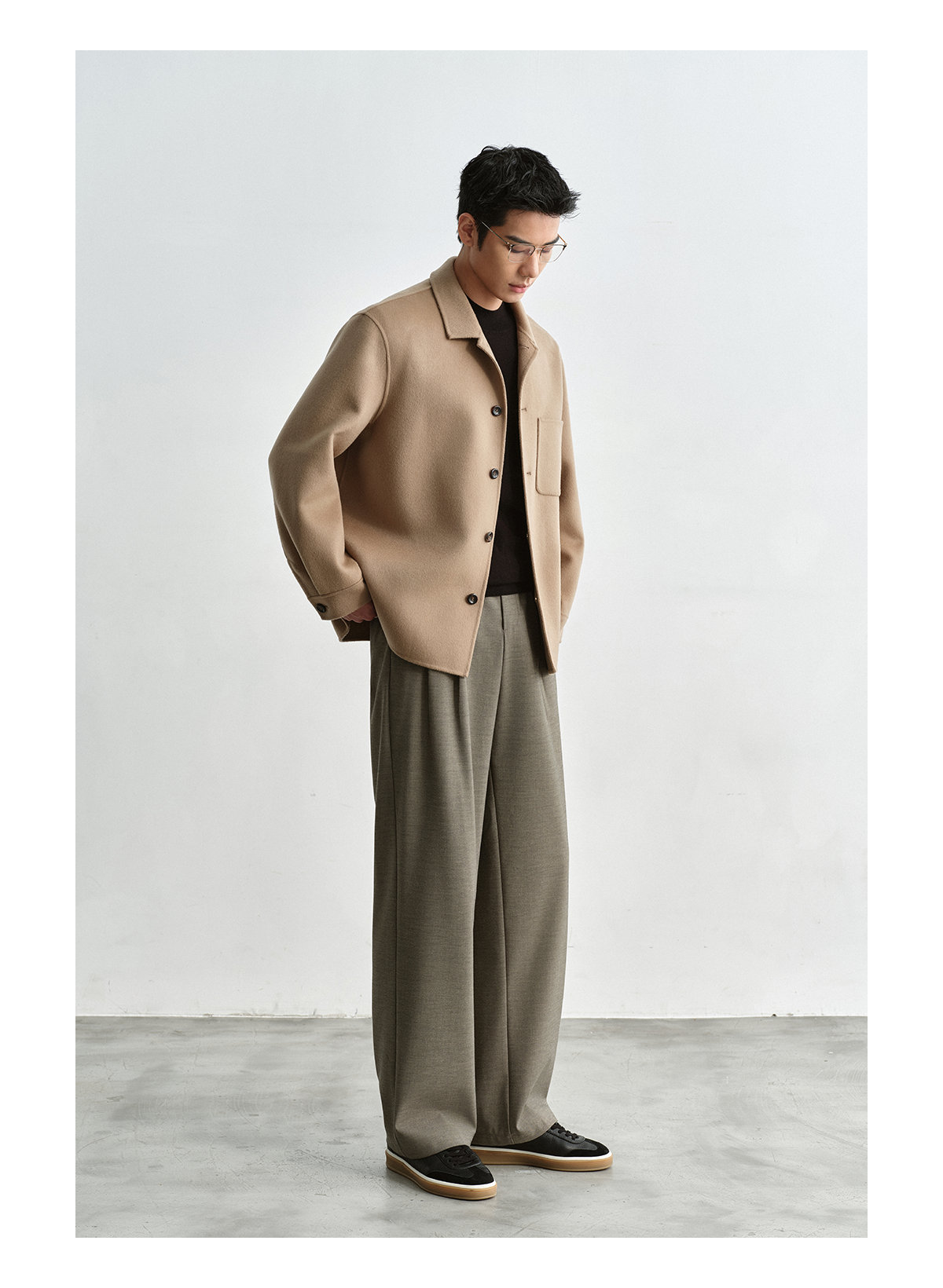 OSENS Men's Heavy weight Import High Support Australian Wool Cashmere Lasel Shoulder Straight-leg Short Double-sided Outwear Men's Winter