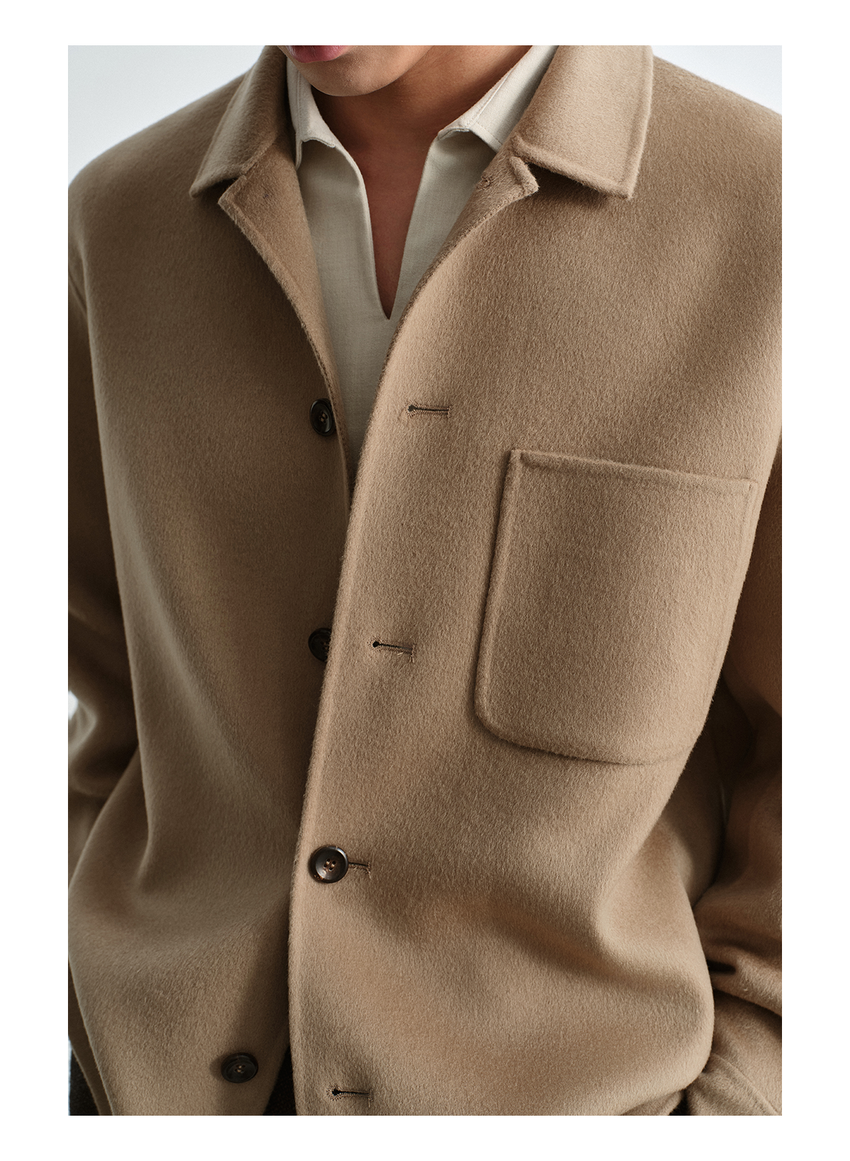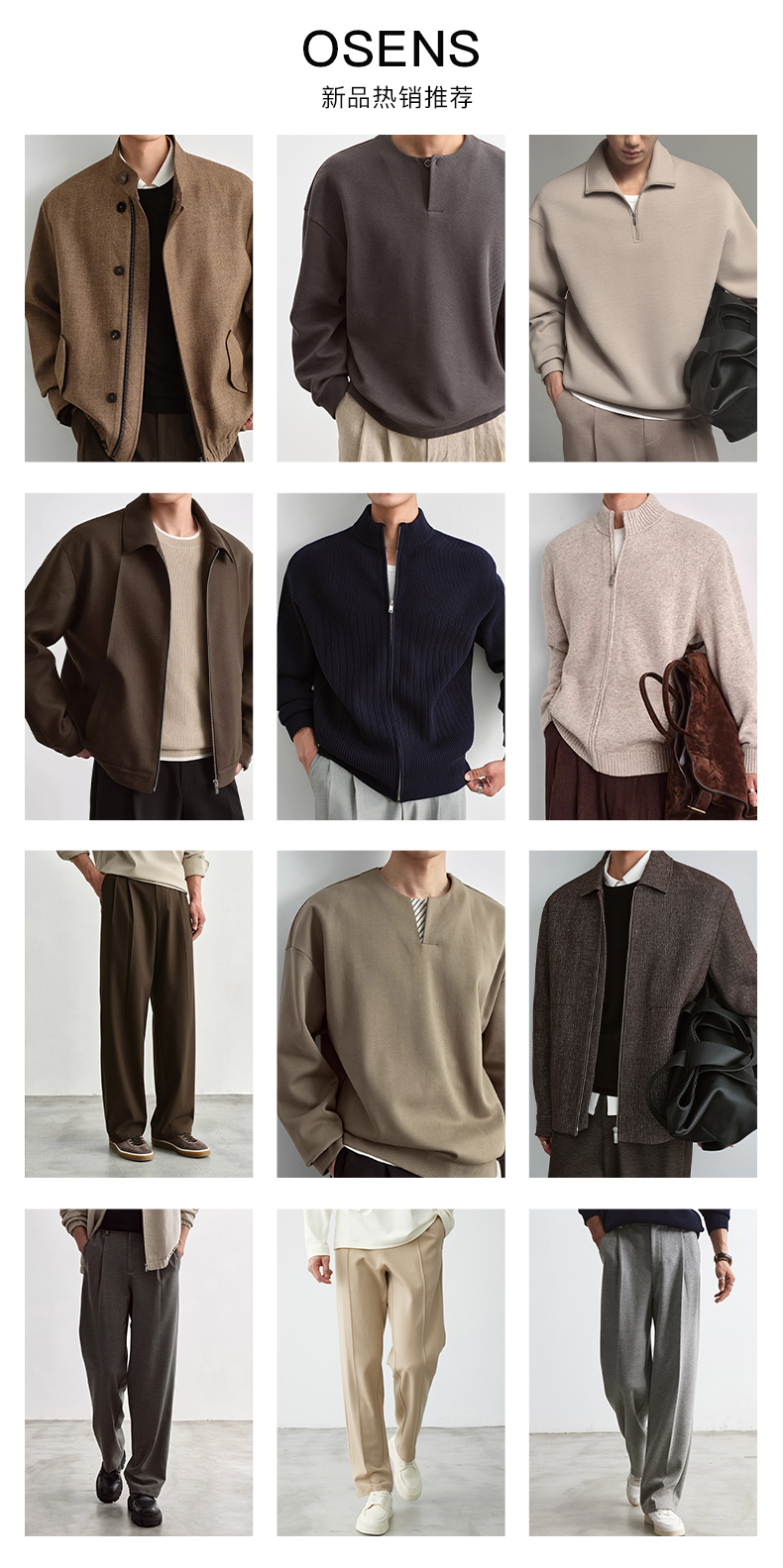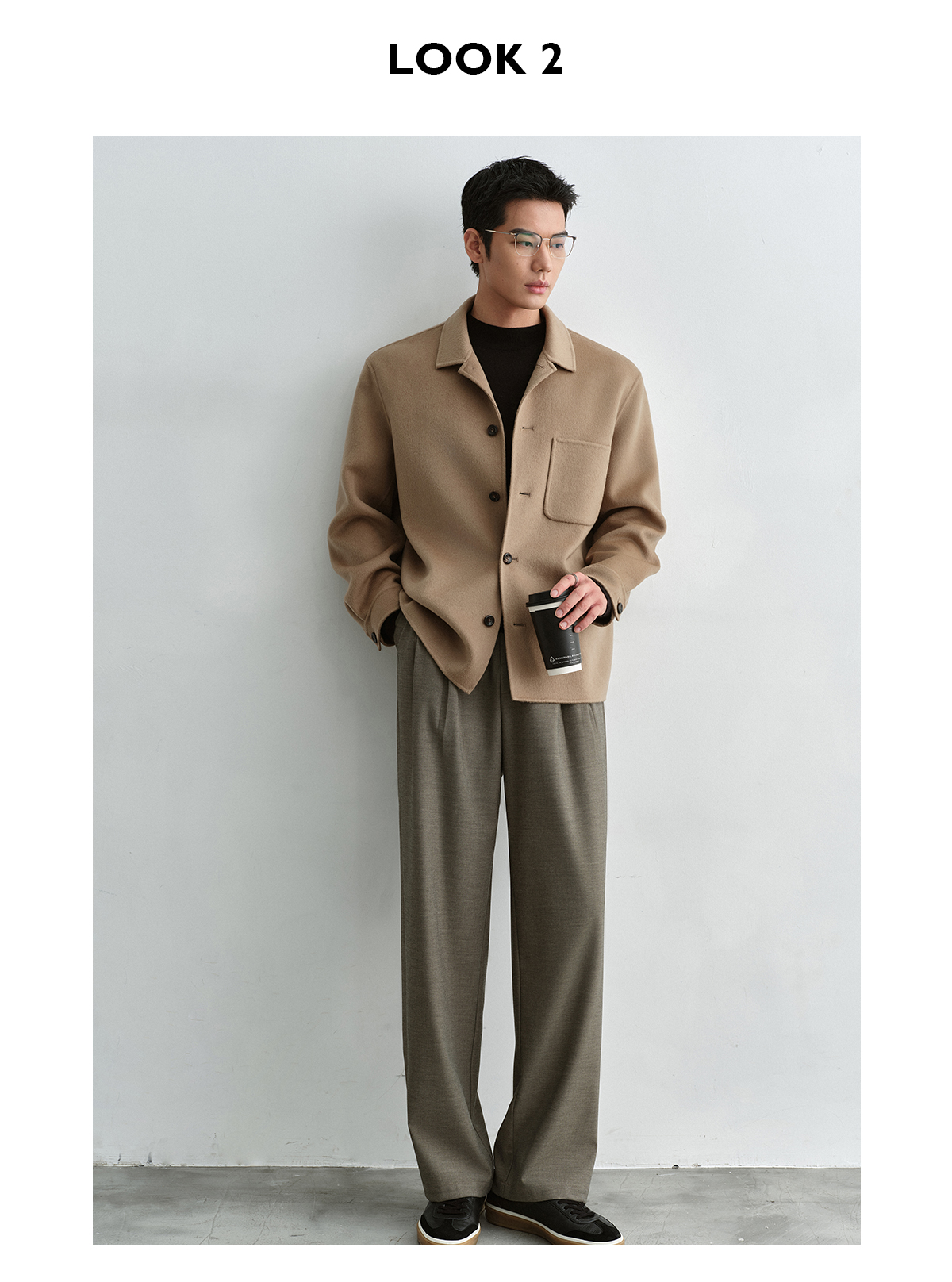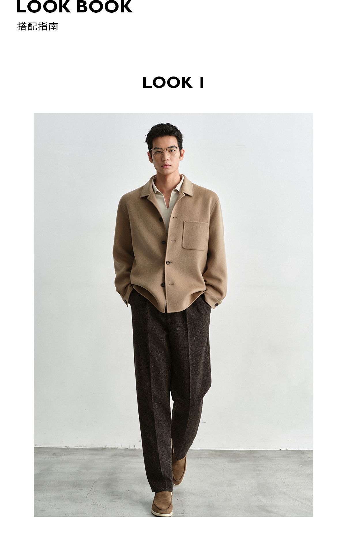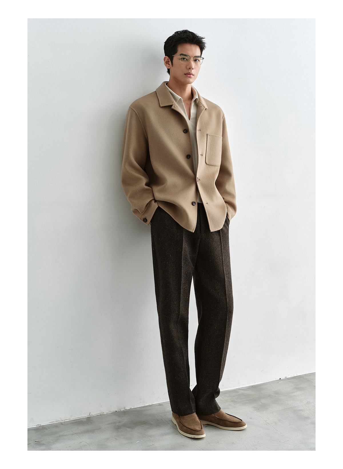 OSENS Men's Heavy weight Import High Support Australian Wool Cashmere Lasel Shoulder Straight-leg Short Double-sided Outwear Men's Winter