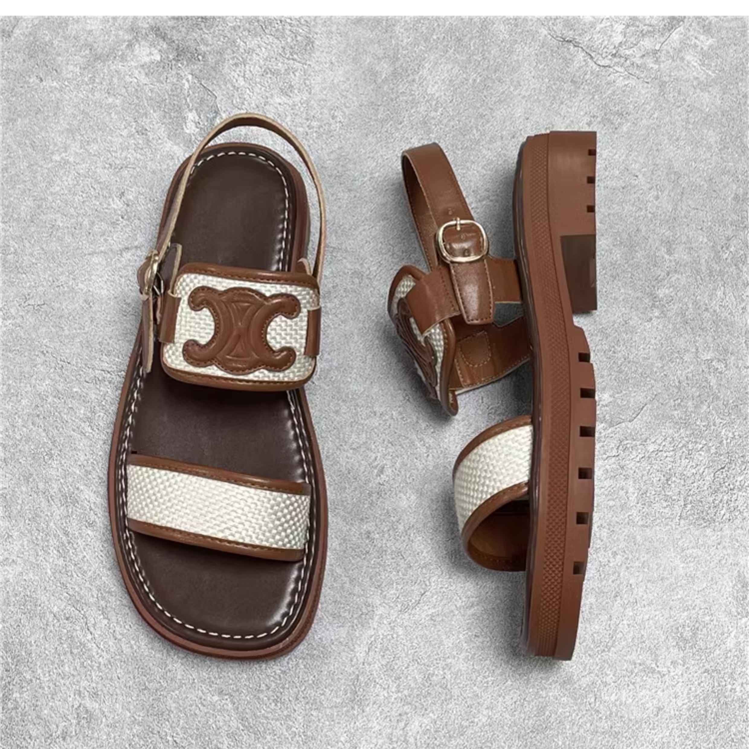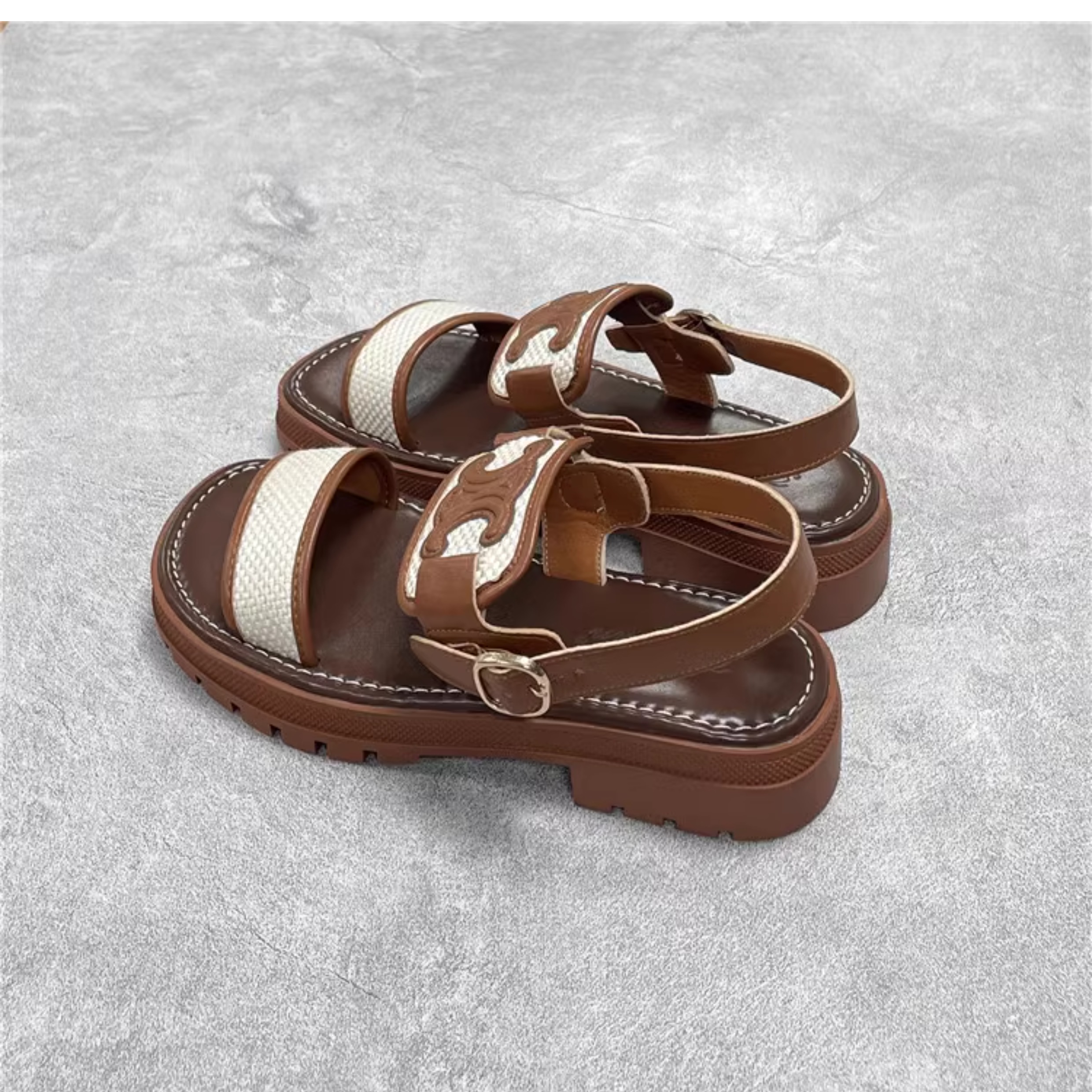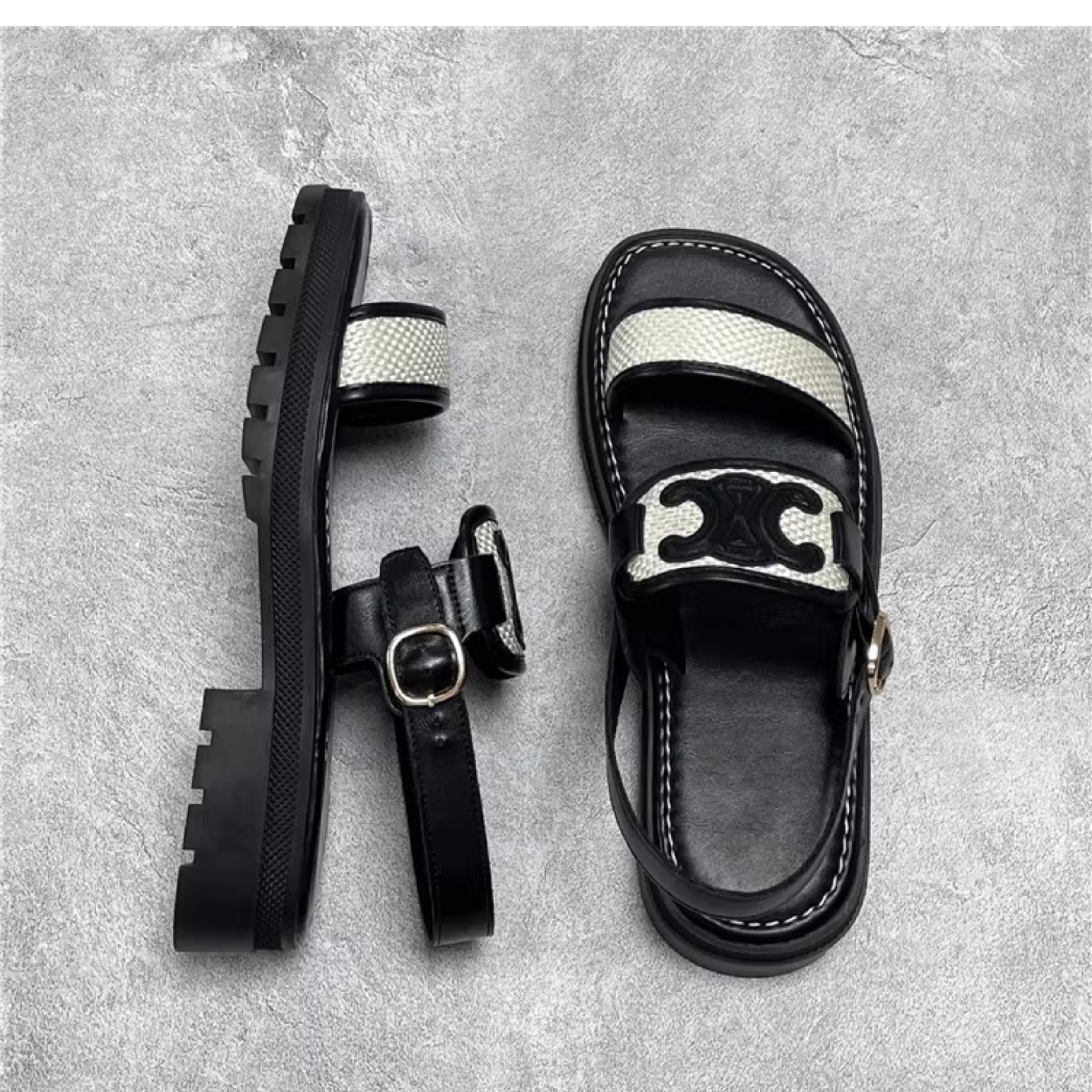 Genuine Leather Sandals for Women 2025 Summer New Style Arc De Triomphe Retro Thick-Soled Single Strap Beach Shoes with Ladylike Temperament