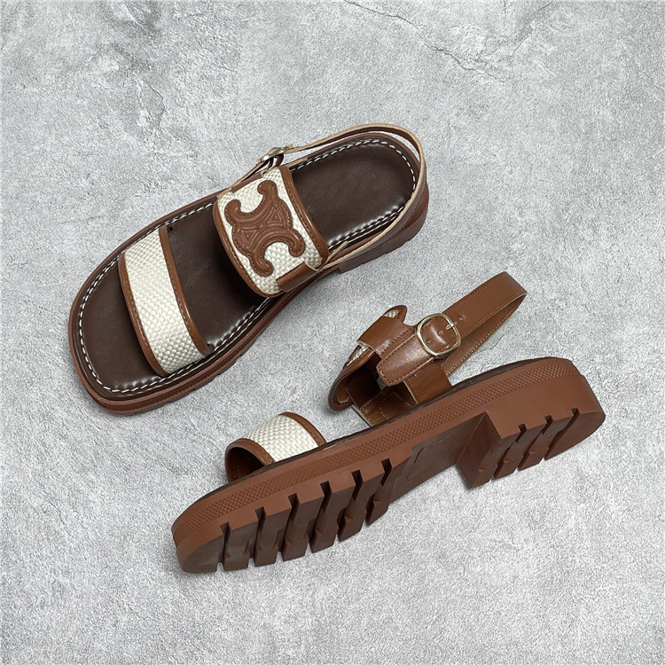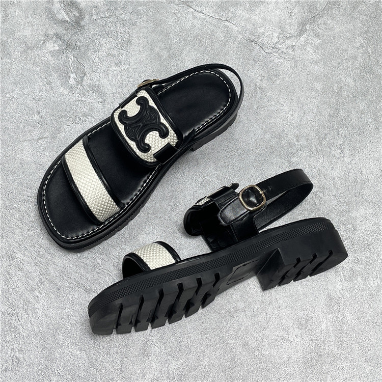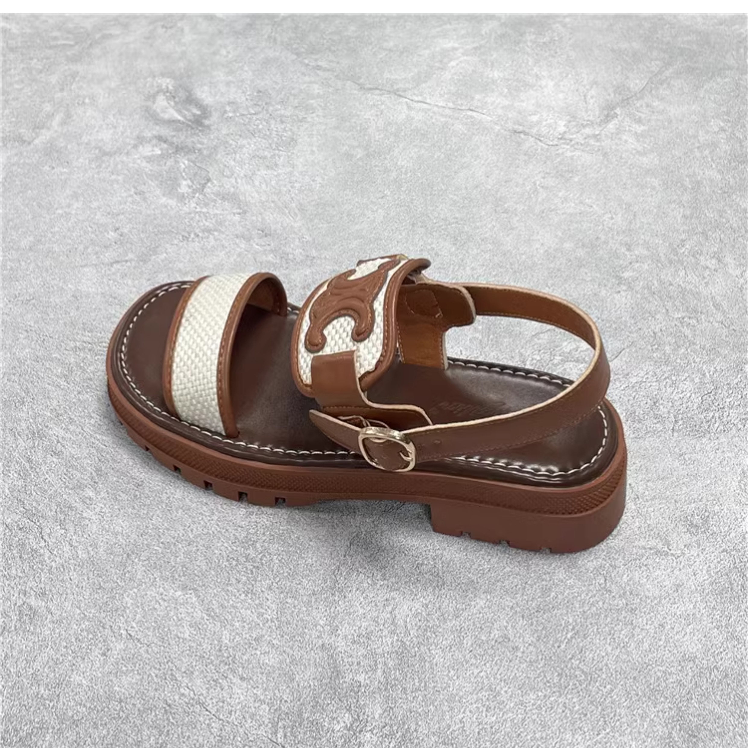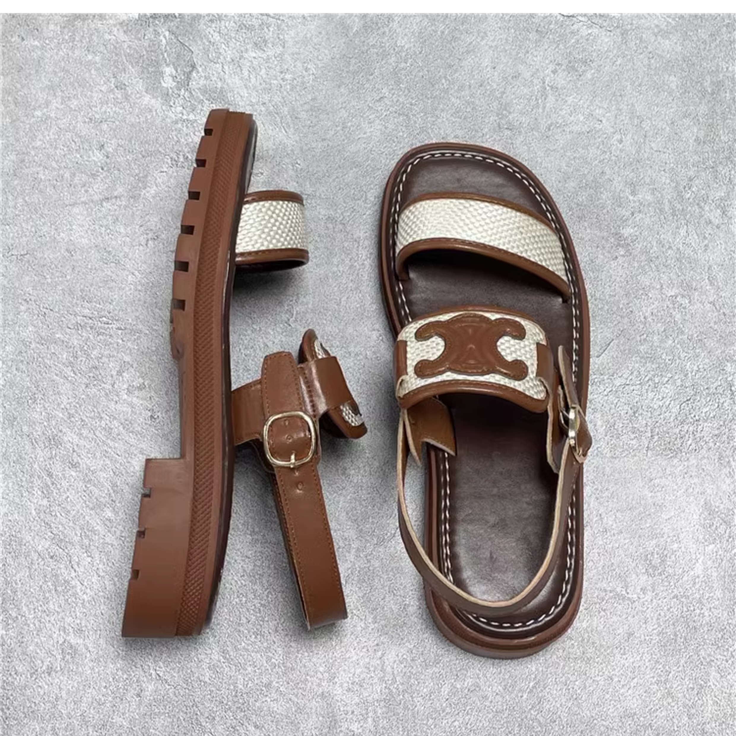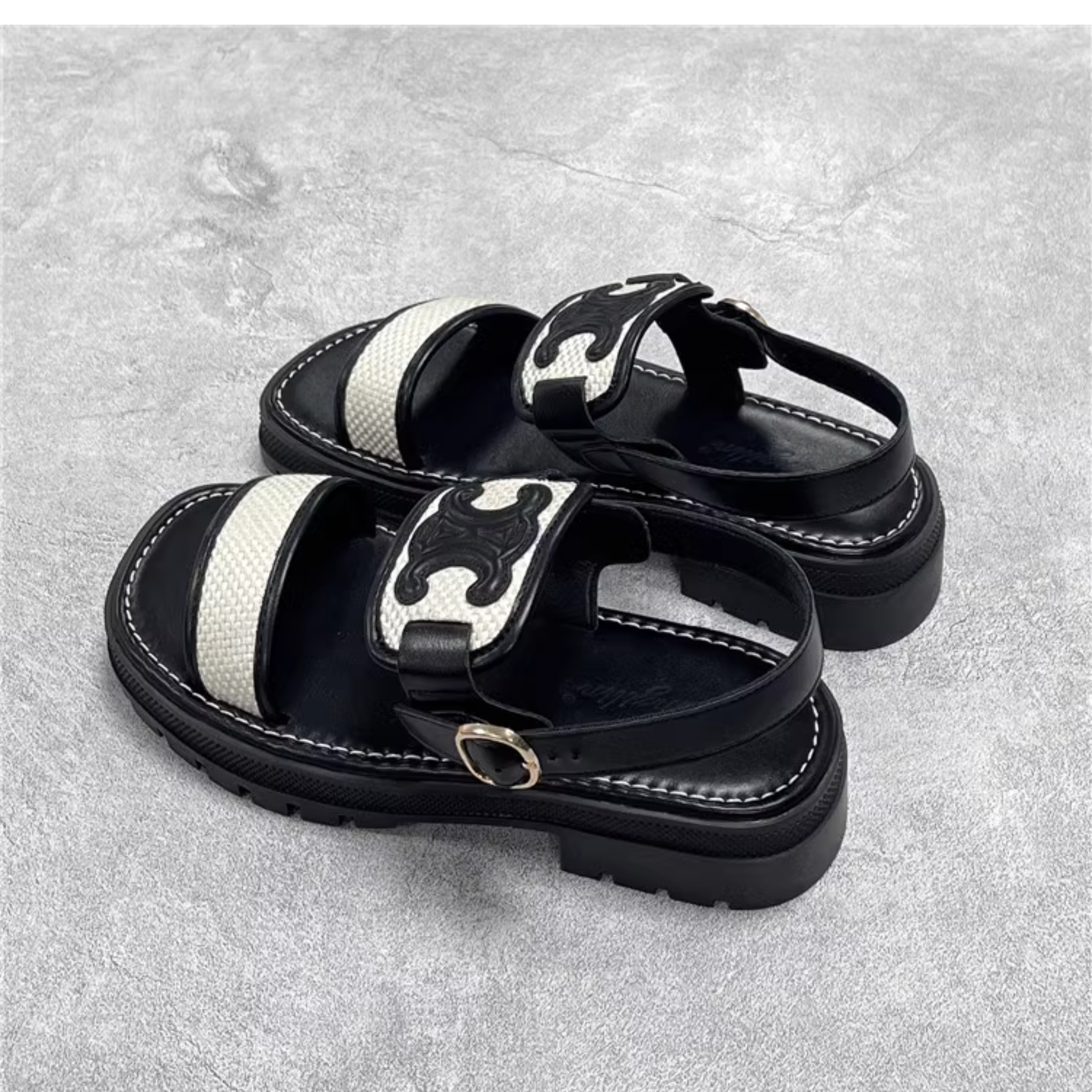 Genuine Leather Sandals for Women 2025 Summer New Style Arc De Triomphe Retro Thick-Soled Single Strap Beach Shoes with Ladylike Temperament