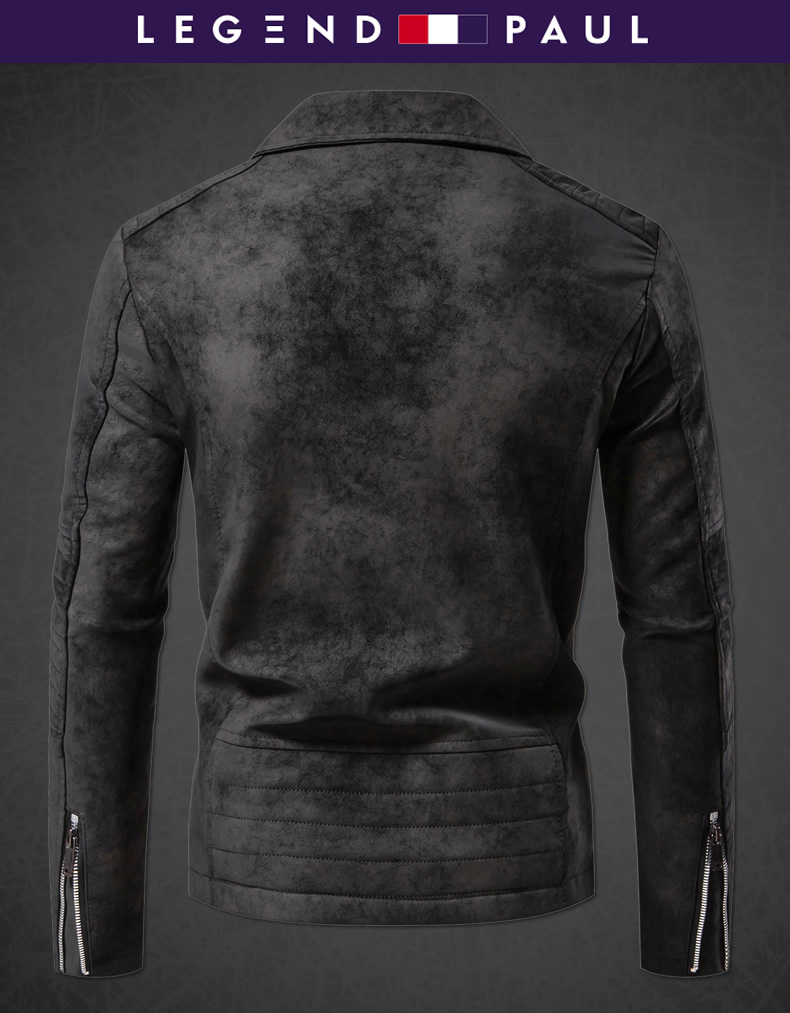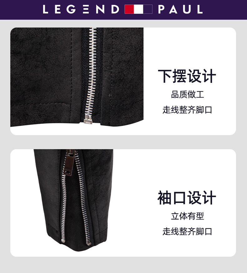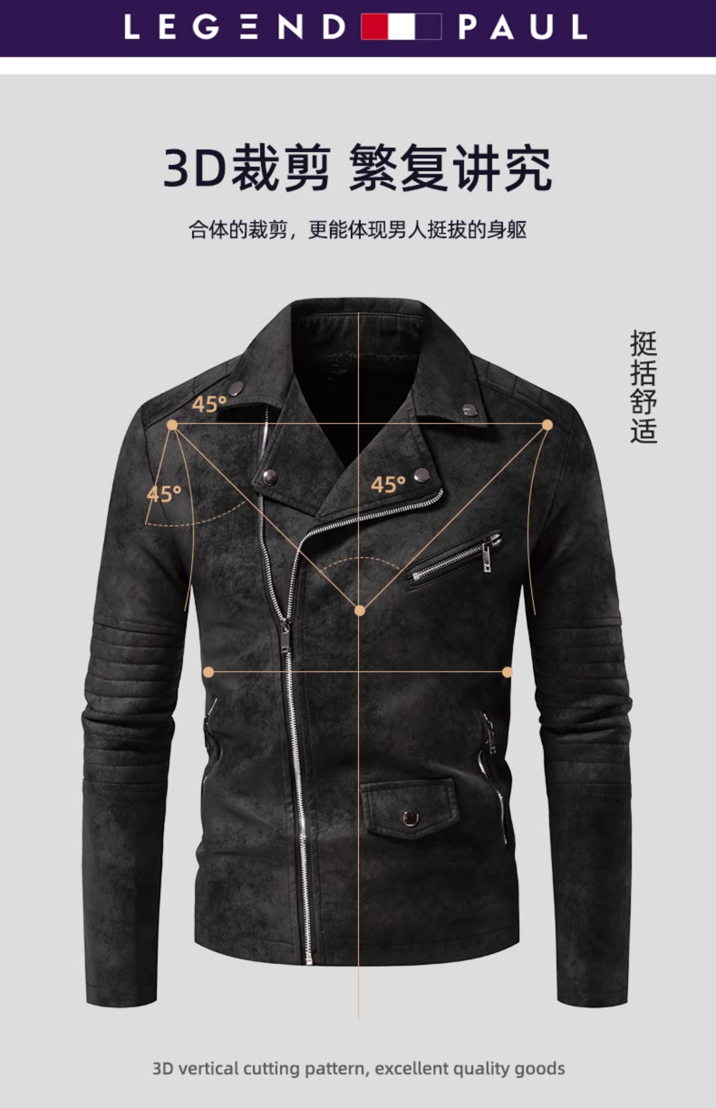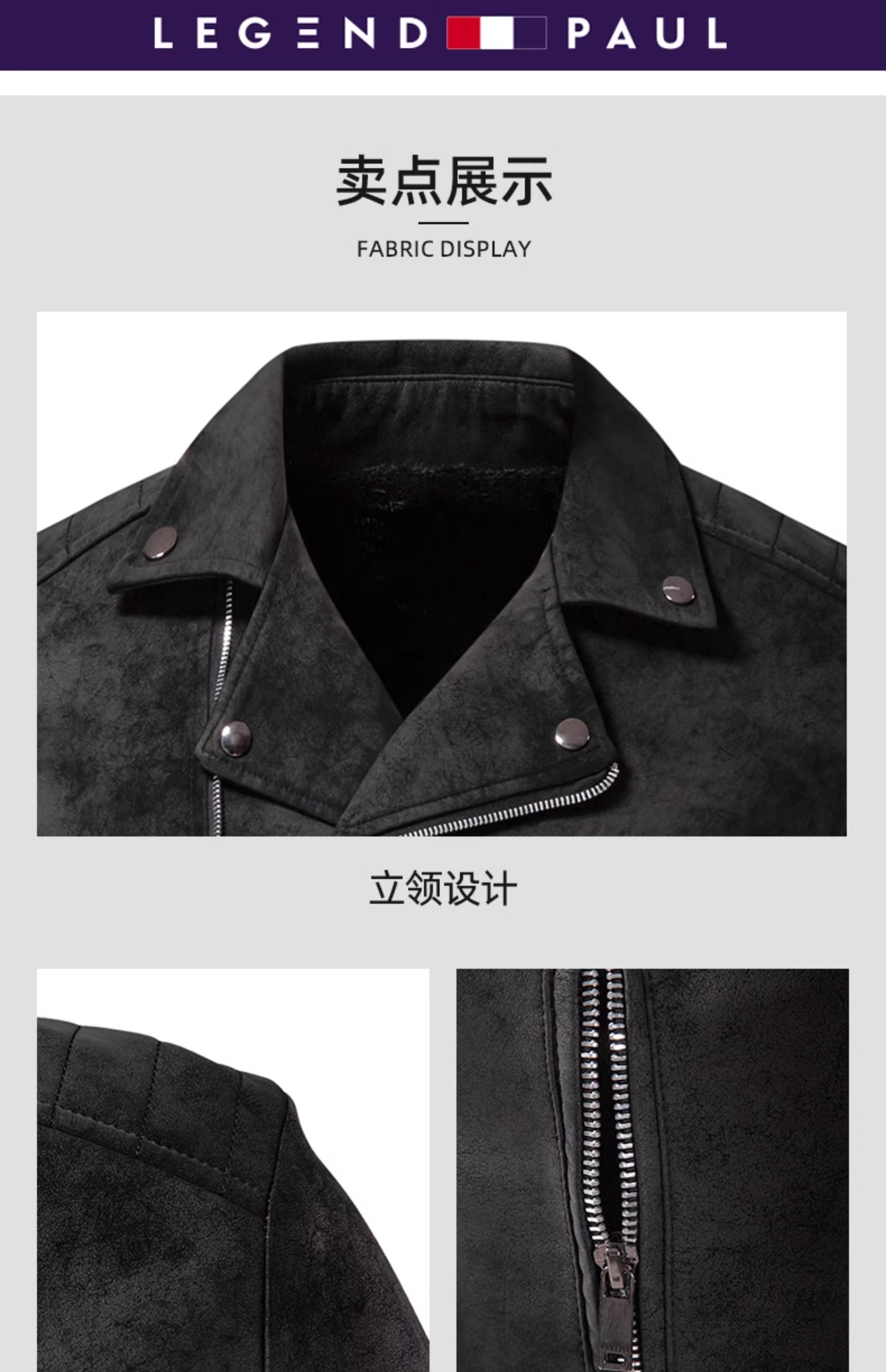 Autumn and Winter Fleece-Lined Diagonal Zipper Leather Jacket for Men, Suede Lapel Leather Jacket, Warm and Windproof Motorcycle Riding Jacket