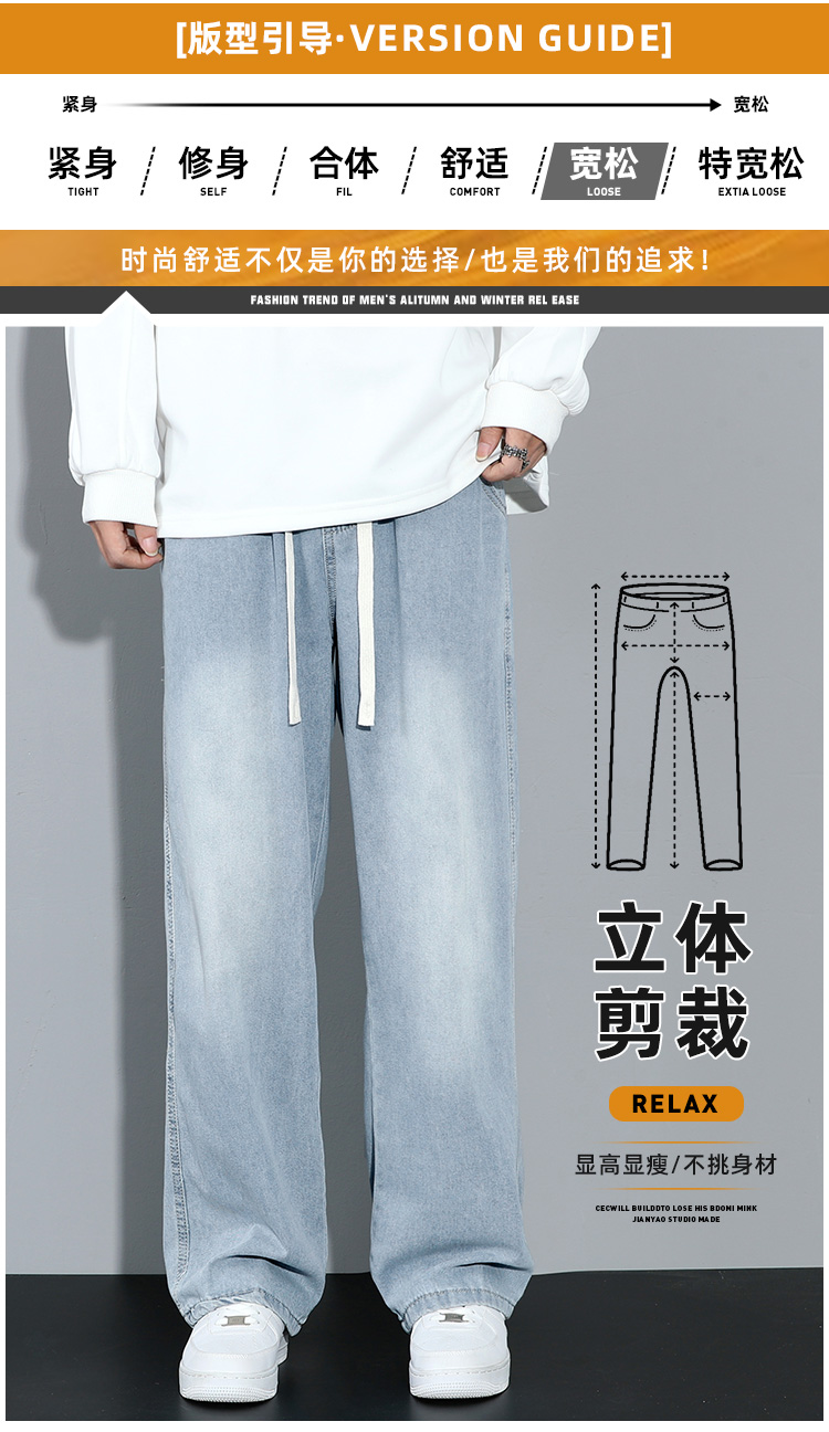 Jeanswest Denim Men's Spring & Fall 2025 Trendy Loose Straight-leg Loose pants Casual Long Pants Boys Fall and winter