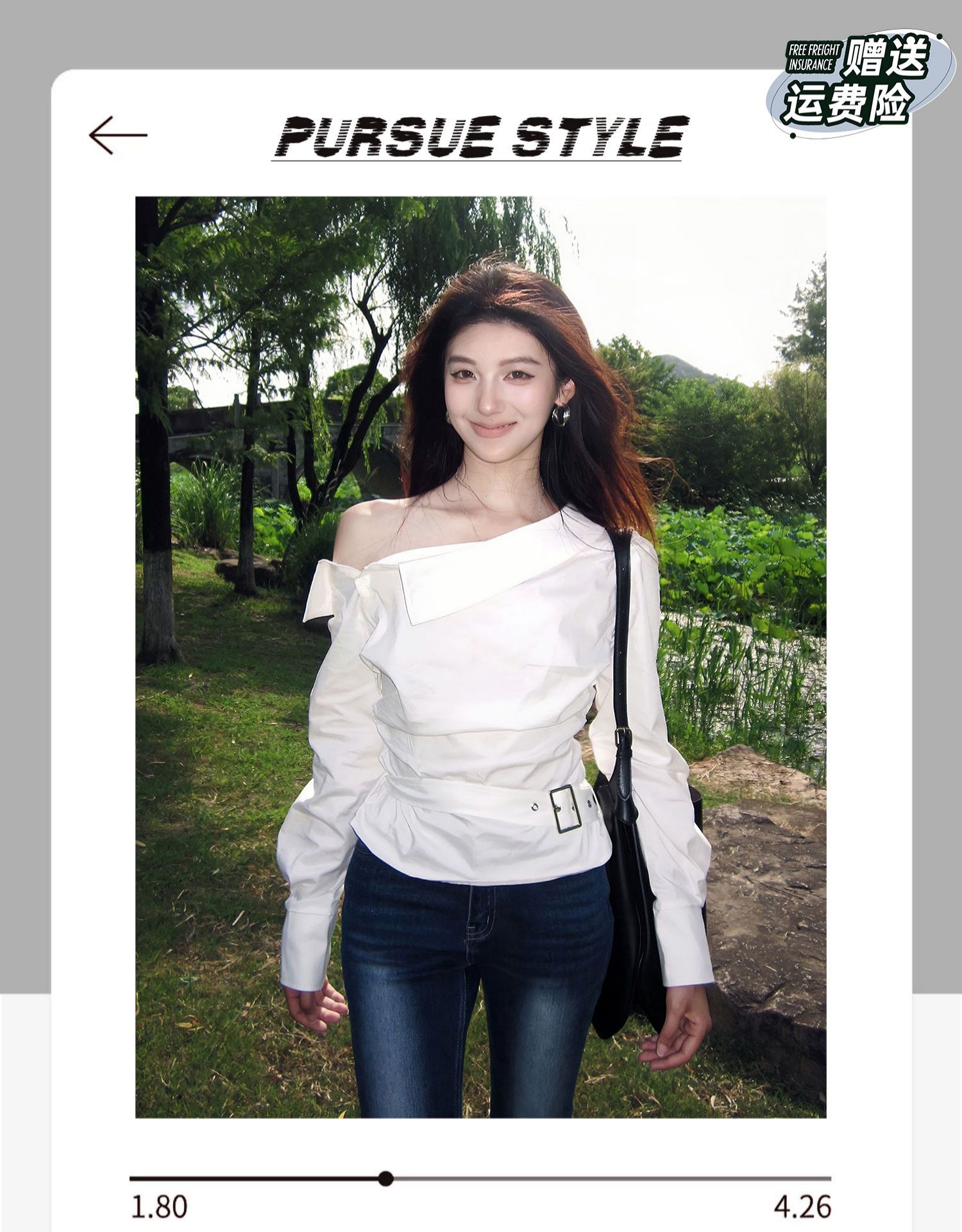 【One-Shoulder Design】Stunning Off-Shoulder Long-Sleeve Shirt for Women, Early Autumn, Slim-Fit, Flattering, Trendy Top for Hot Girls