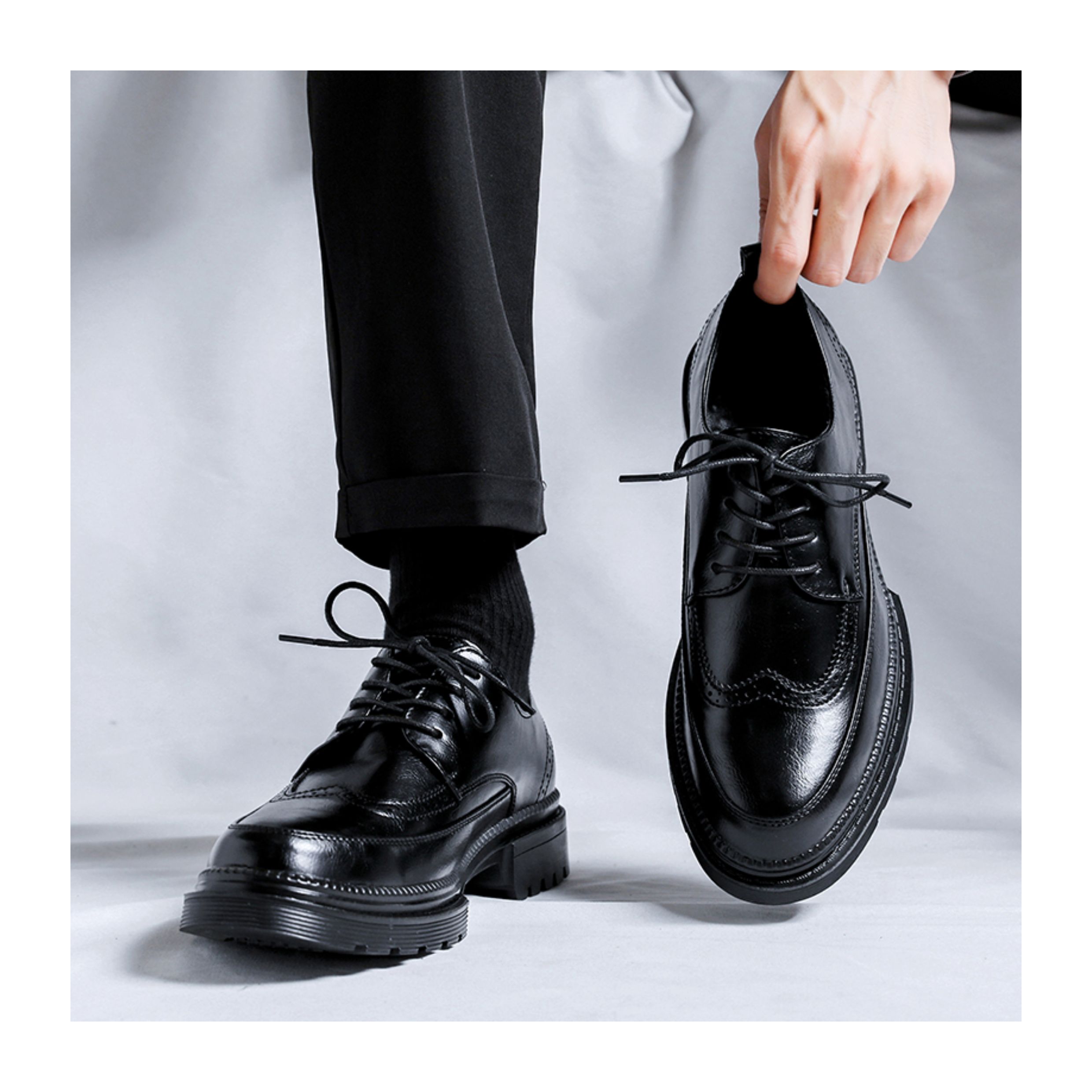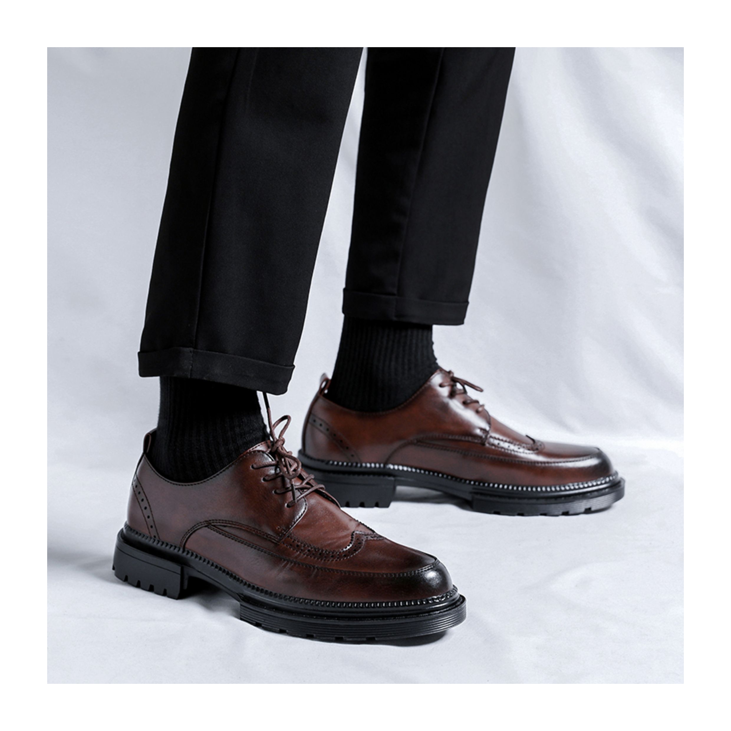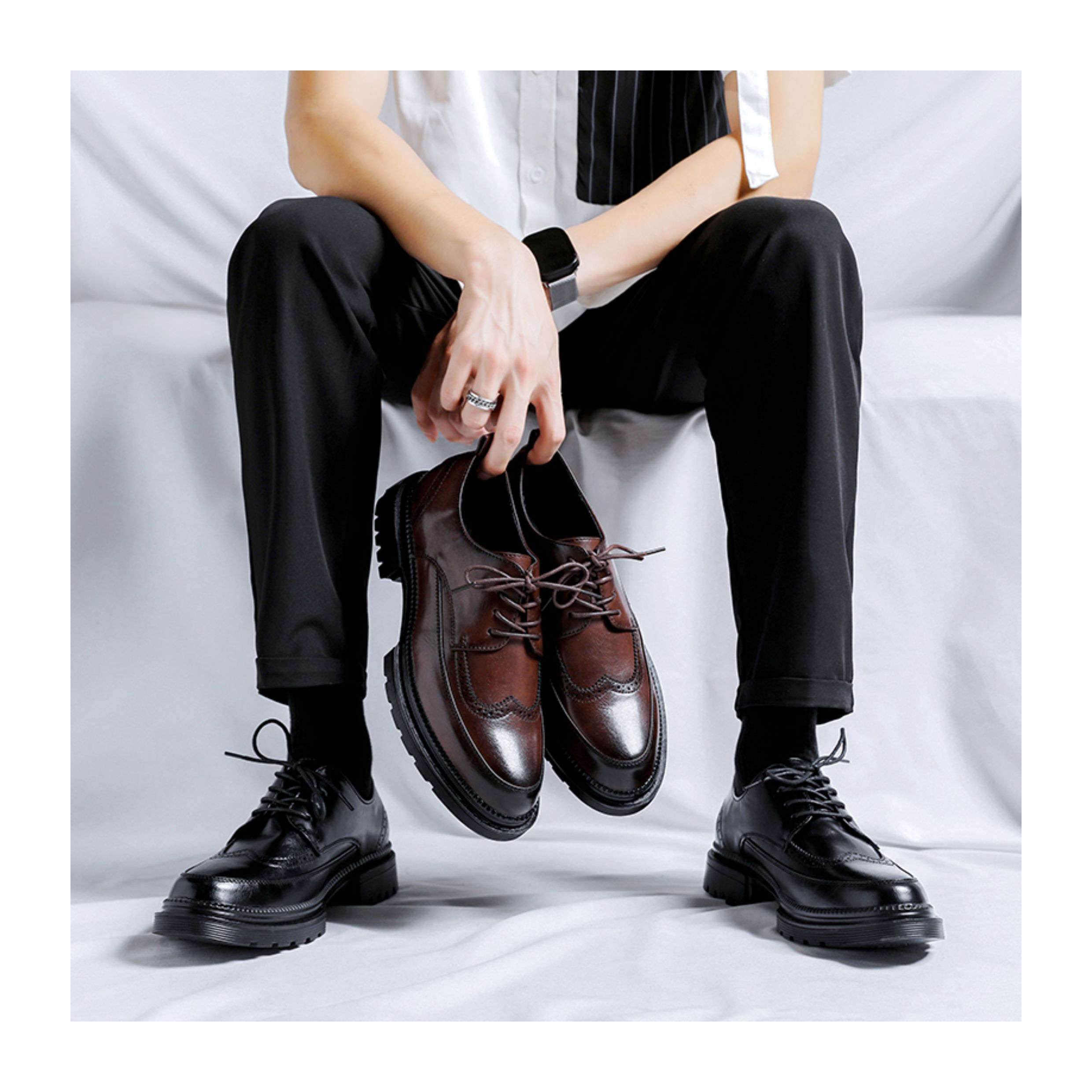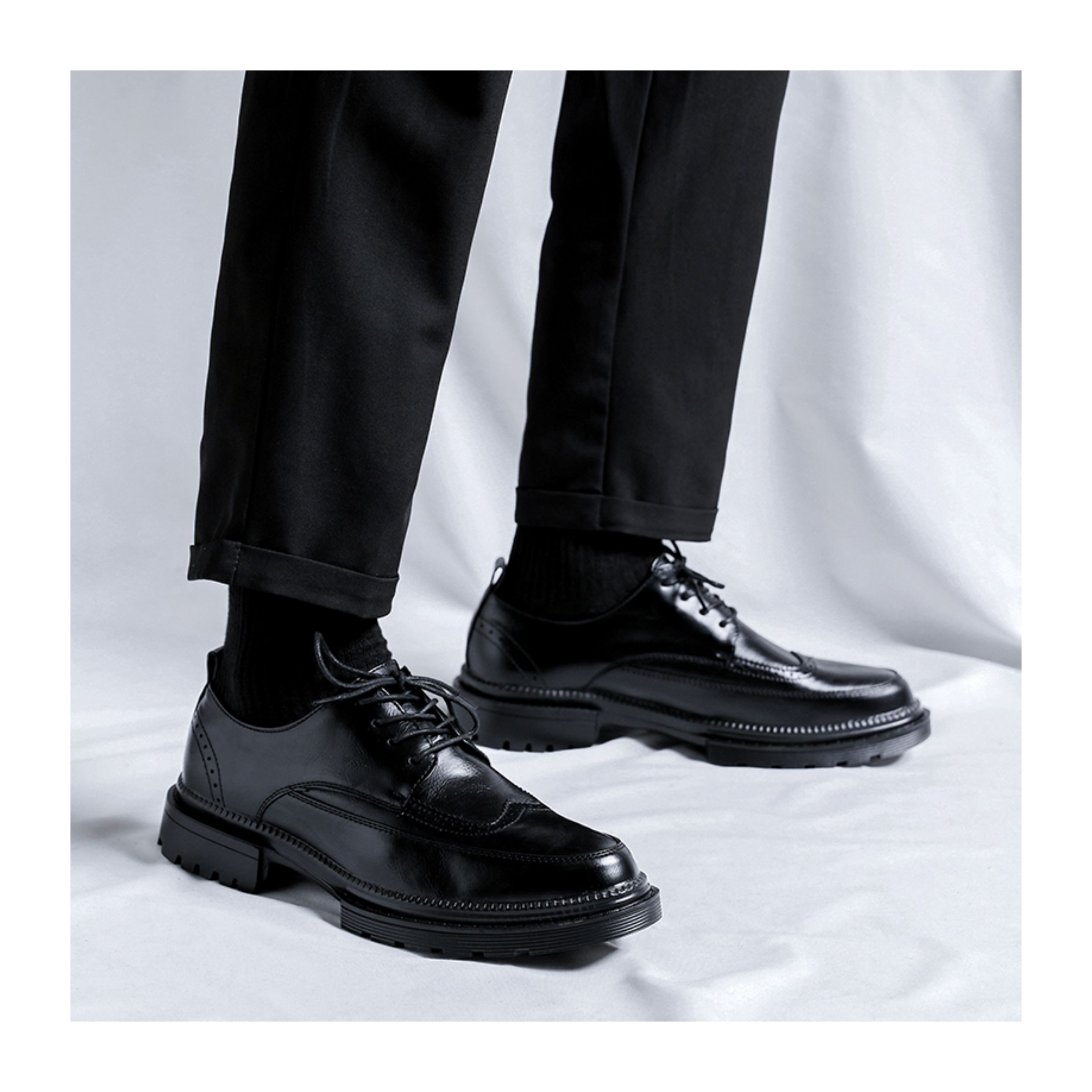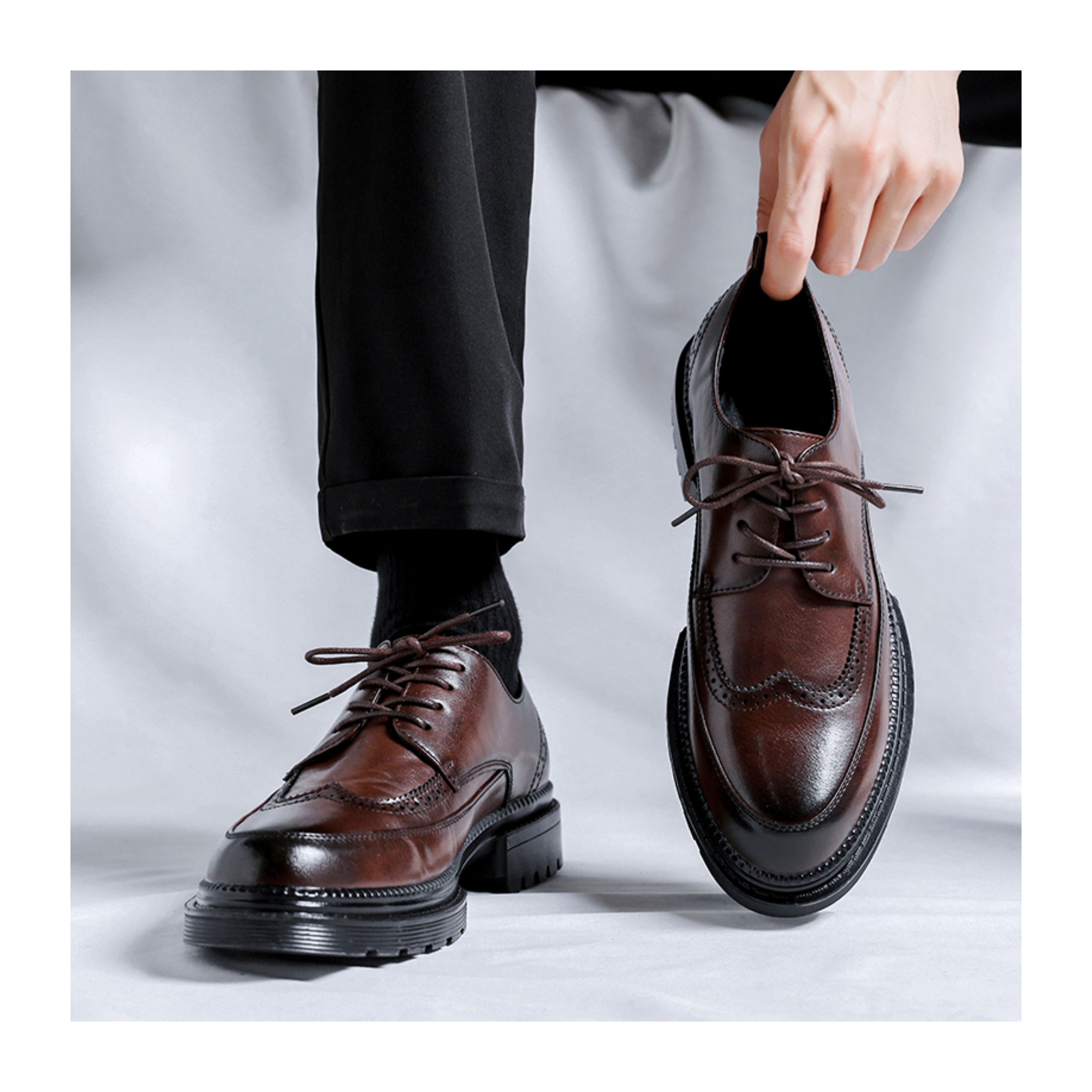 Brogue Leather Shoes for Men, New Spring Business Formal Shoes, Height-Increasing British Style Derby Shoes, Suit Wedding Groom Shoes