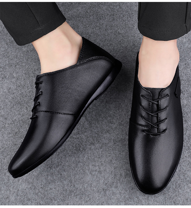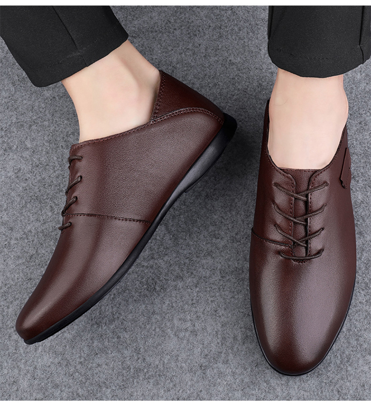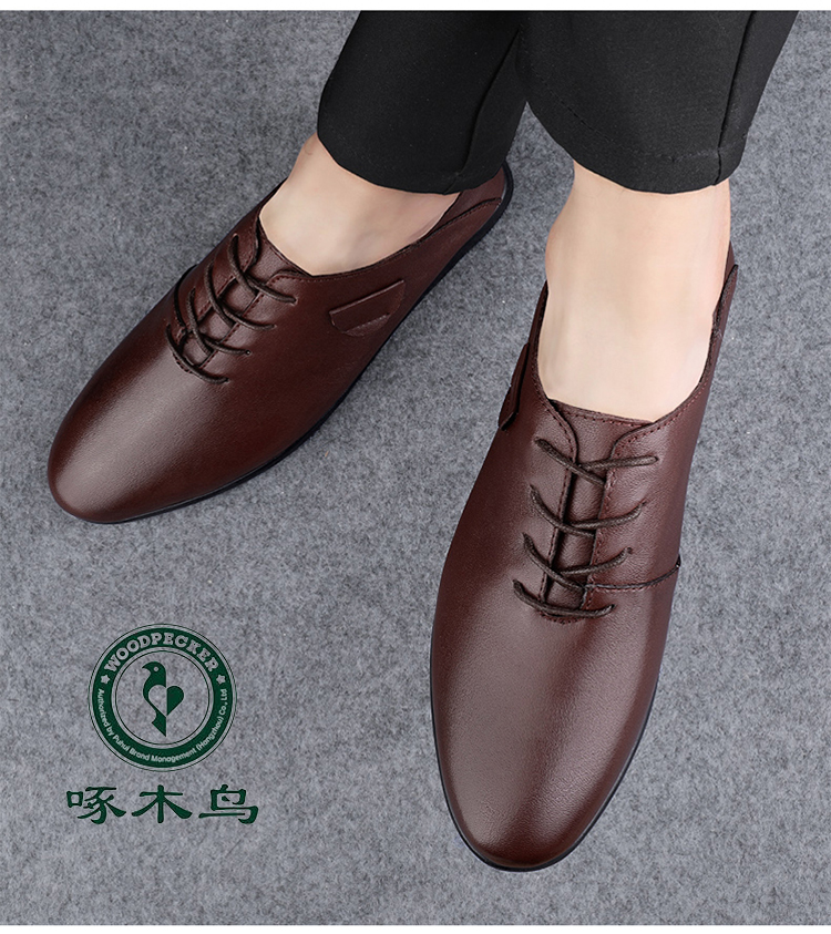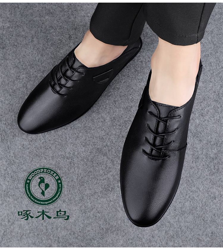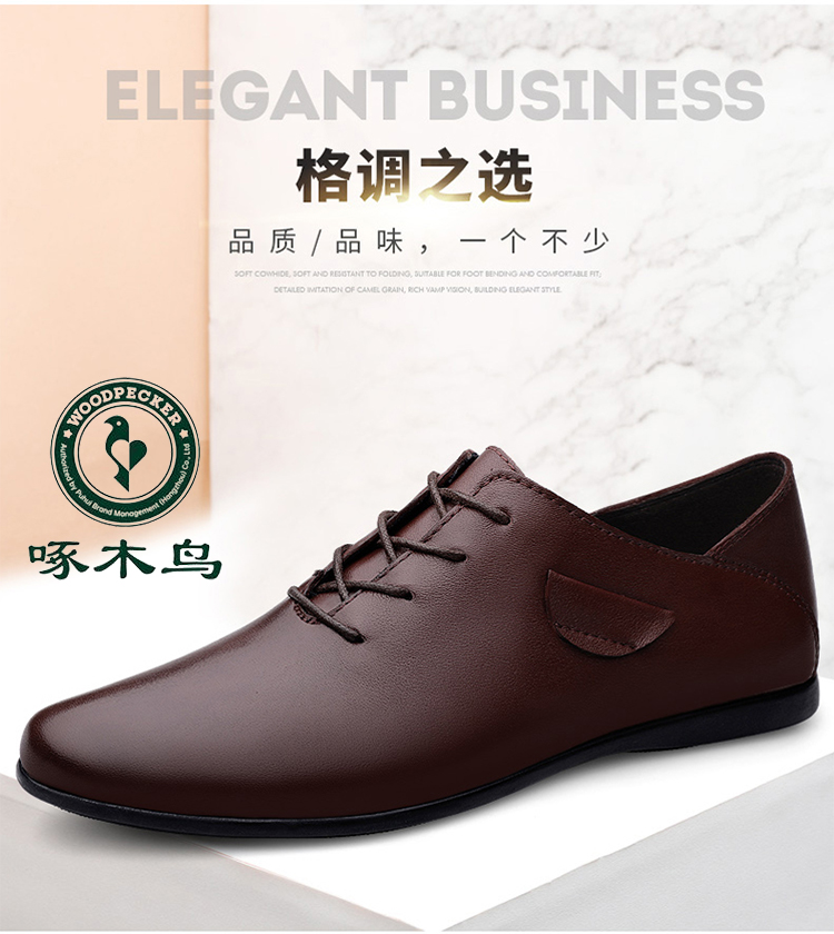 Woodpecker Leather Shoes for Men, Genuine Leather, Breathable, Soft Surface, Soft Sole, Flat Sole, Non-Slip, Middle-Aged and Elderly, Large Size 46, Casual Work Shoes