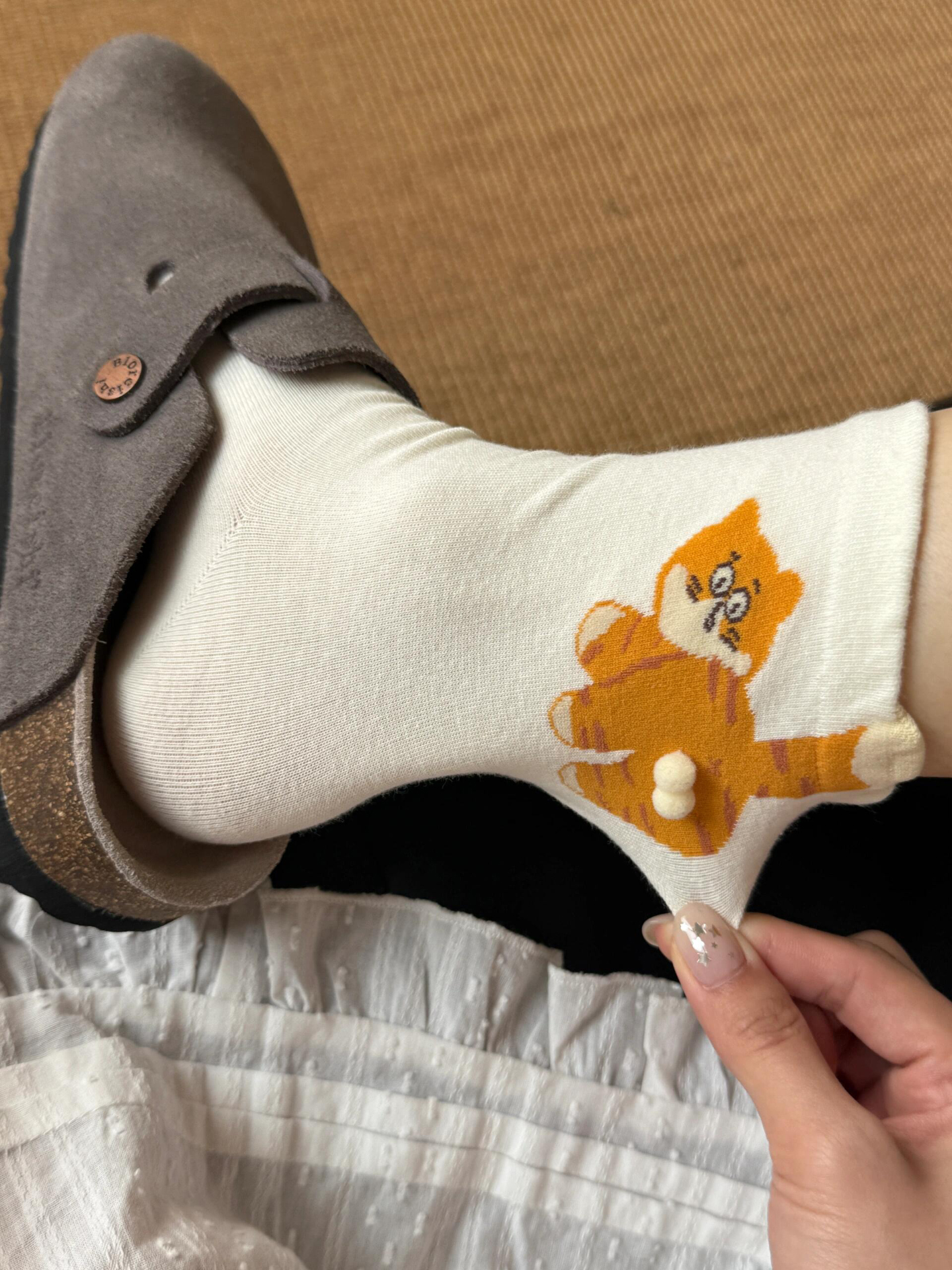 What Cute Cat Socks! Weird, Ugly, but Adorable. Funny Women's Mid-Calf Socks, Cotton, Suitable for All Seasons